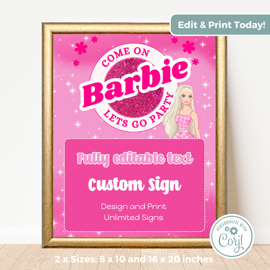 Editable Birthday Invitation and FREE Thank You Tag - Barbie