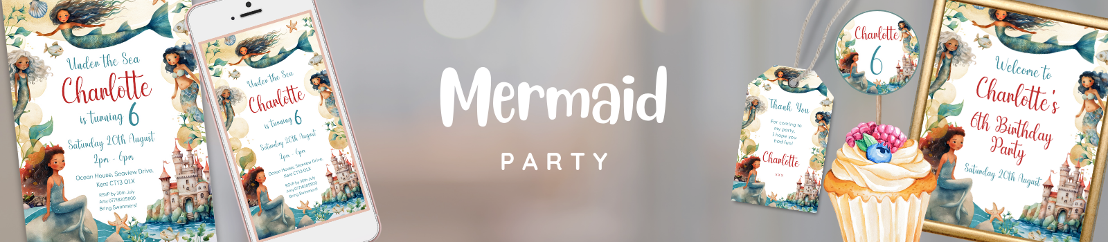 Editable Birthday Invitation and FREE Thank You Tag - Mermaid