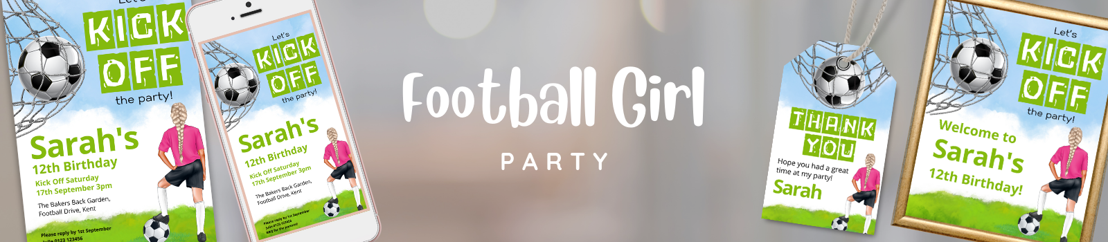 Editable Phone Birthday Invitation and FREE Thank You Tag - Football Girl Pink