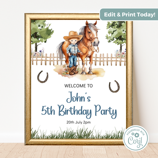 Editable Birthday Welcome Sign - Saddle Up Boy