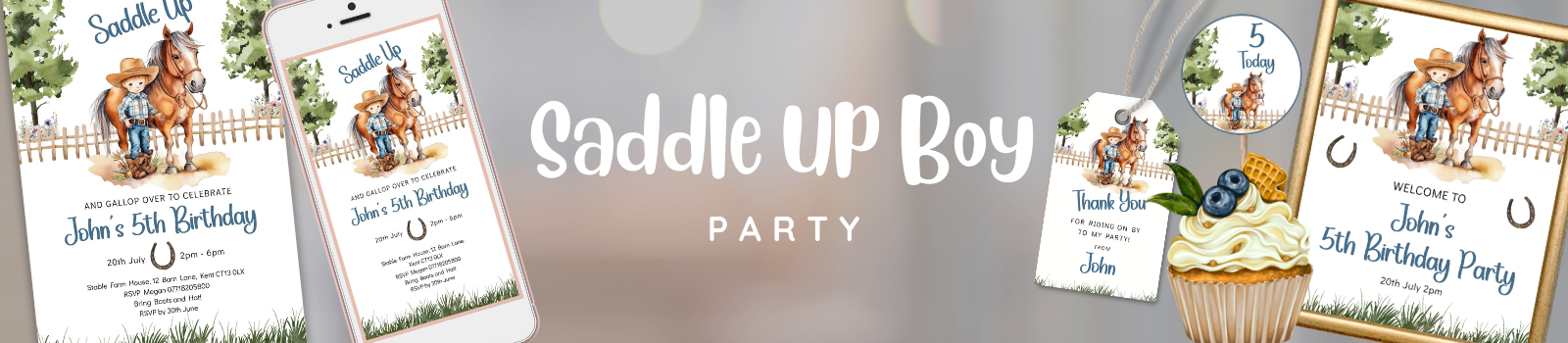 Editable Birthday Invitation and FREE Thank You Tag - Saddle Up Boy