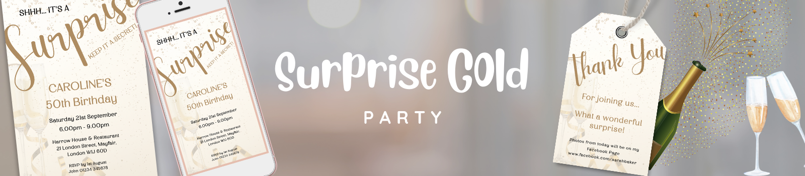 Editable Birthday Invitation and FREE Thank You Tag - Surprise Gold