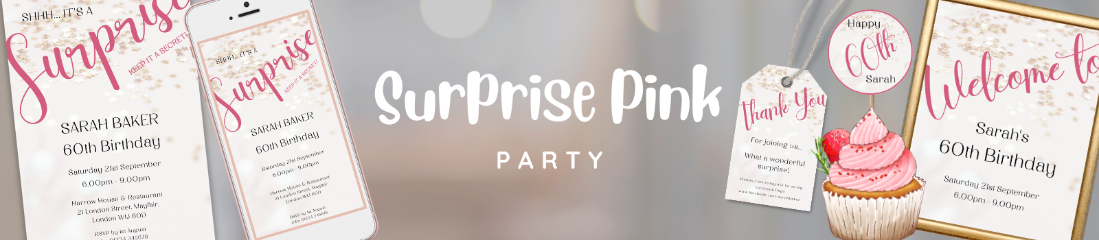 Editable Birthday Invitation and FREE Thank You Tag - Surprise Pink