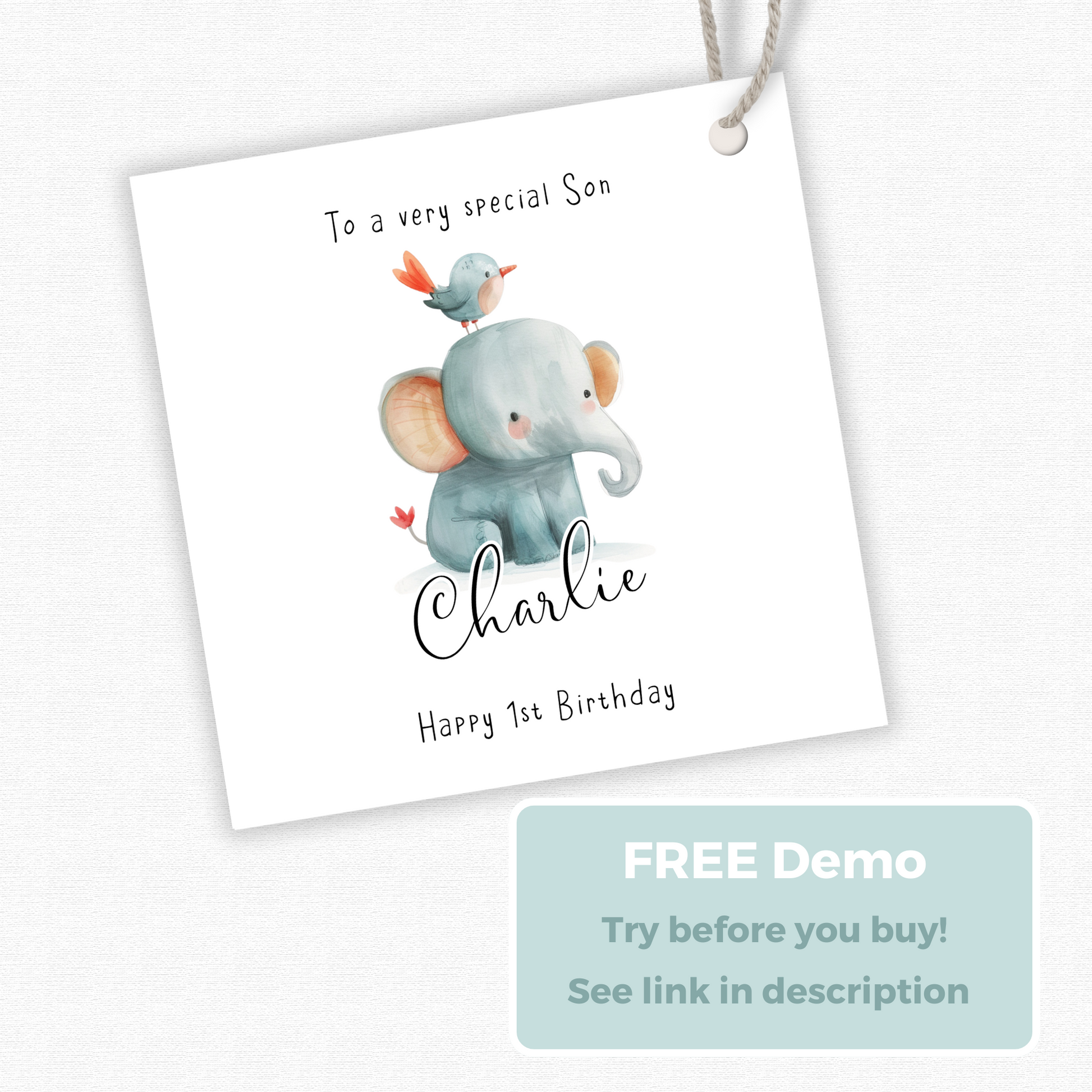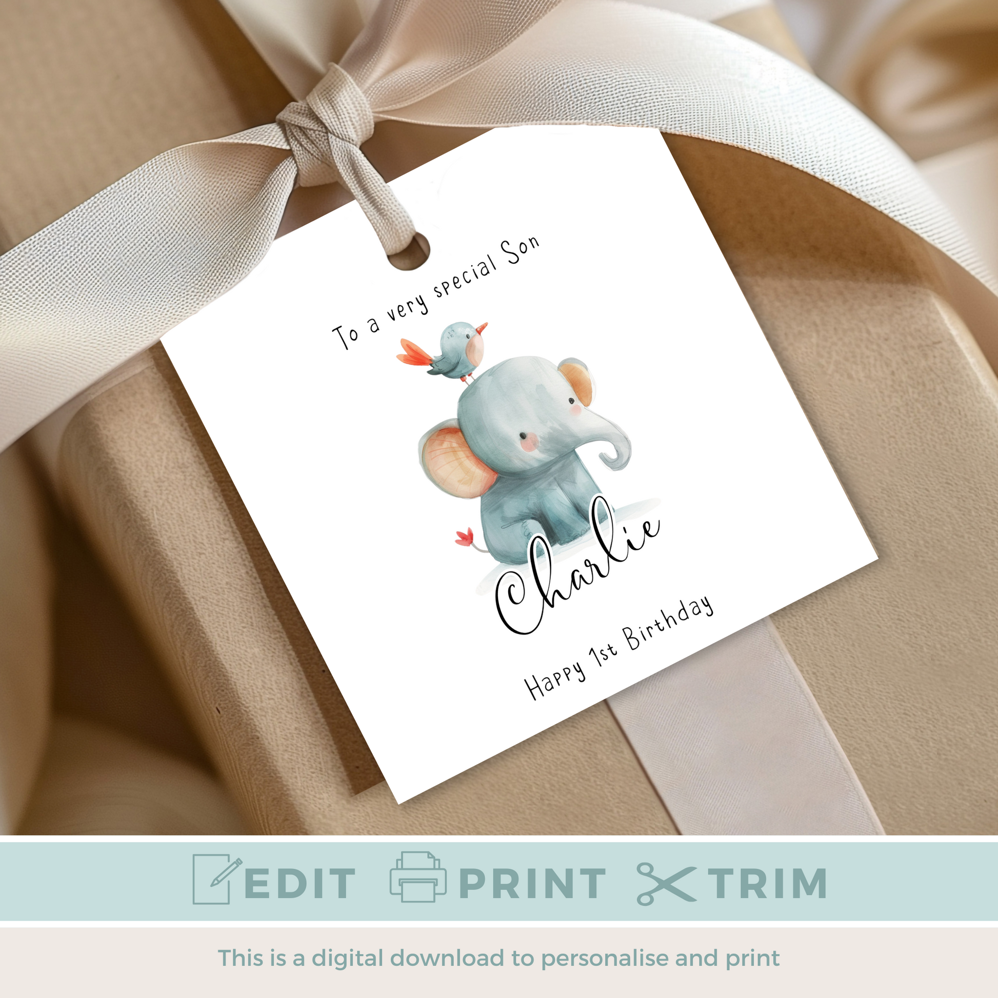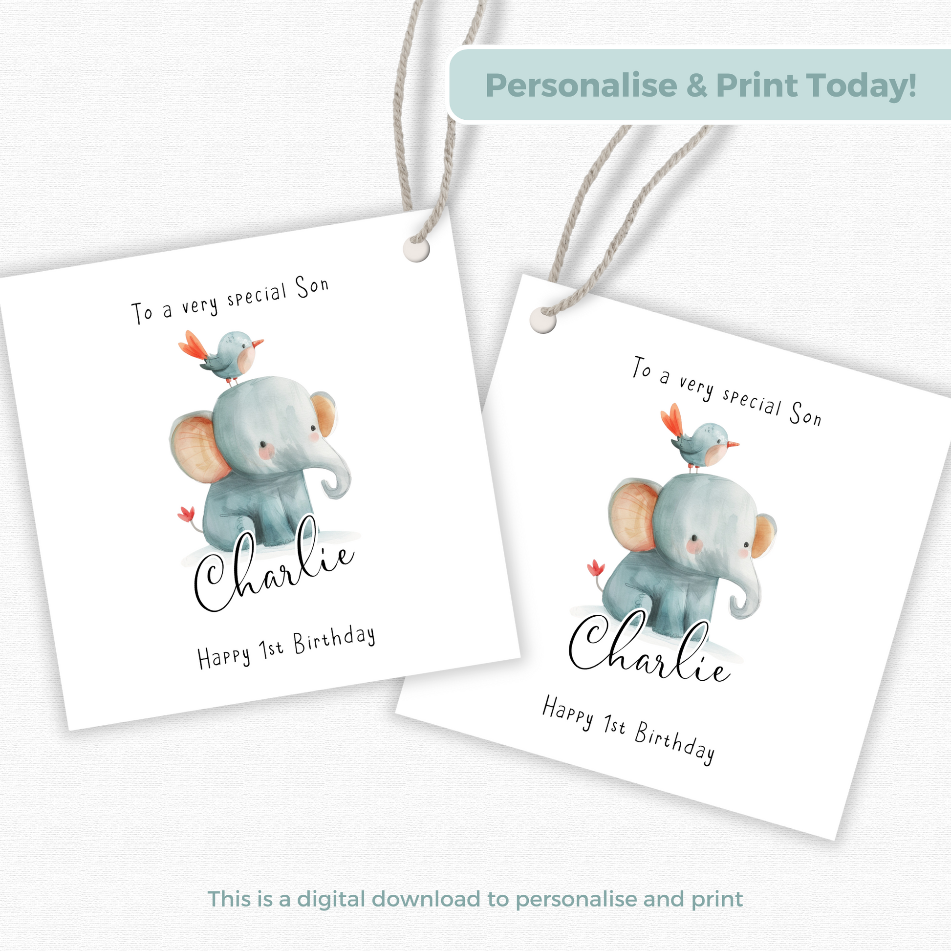 Make your gift extra special with this adorable Editable Elephant Birthday Gift Tag! Perfect for a 1st birthday, this cute watercolour design can be easily personalised with your child's name and a sweet message using Corjl.