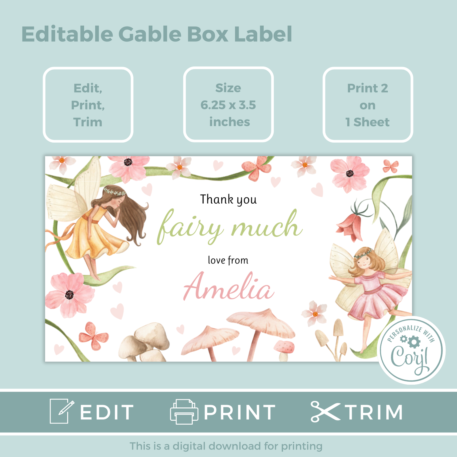 Editable Birthday Gable Box Label - Fairy