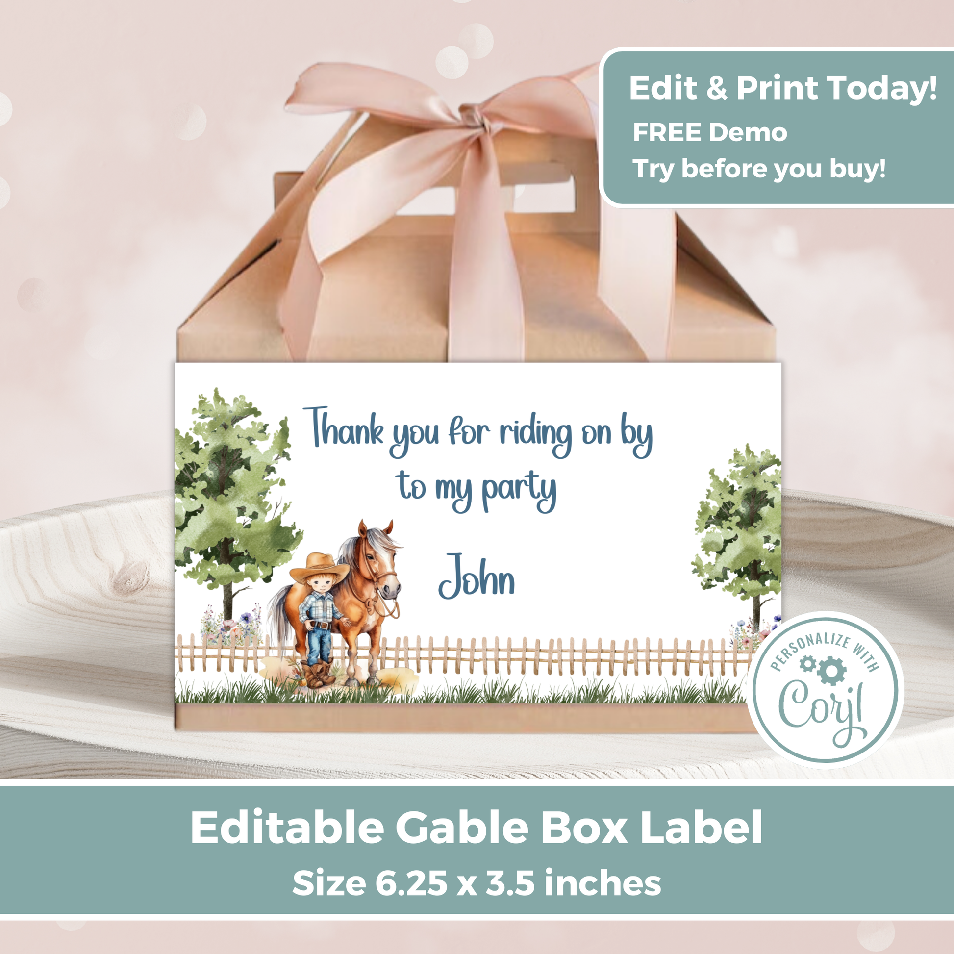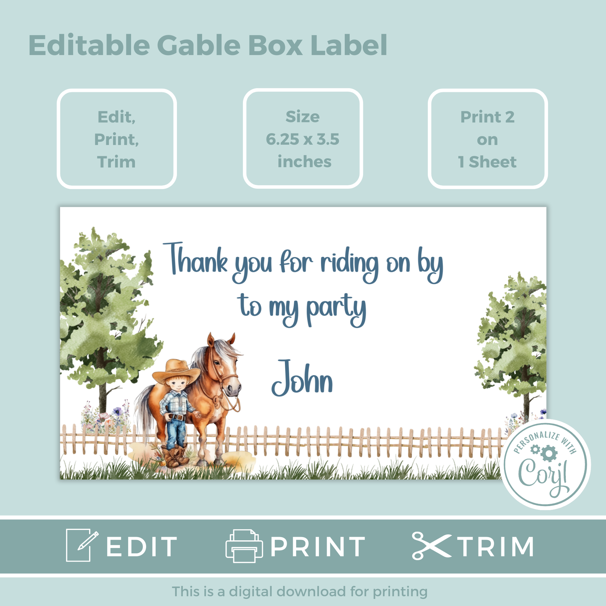 Editable Birthday Gable Box Label - Saddle Up Boy