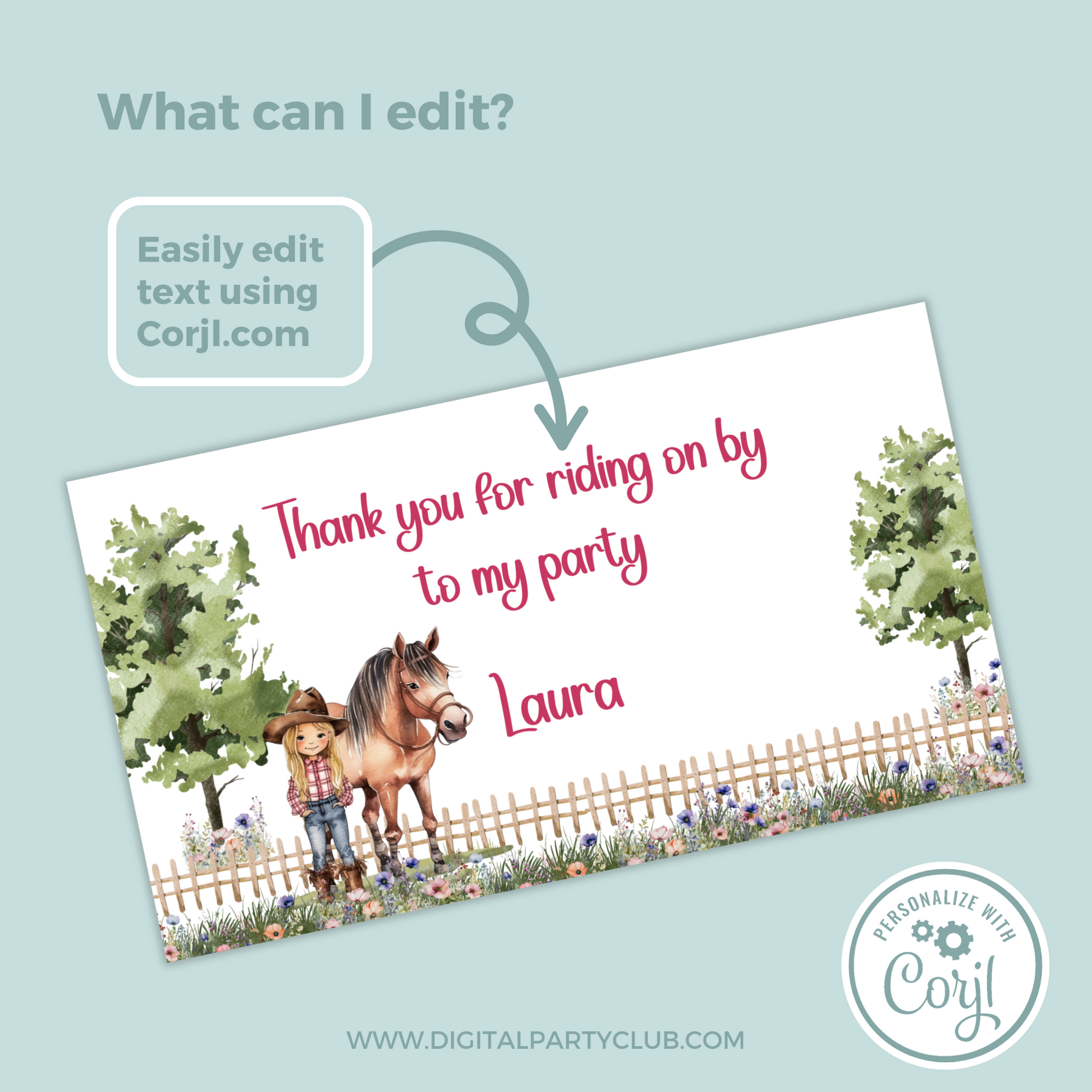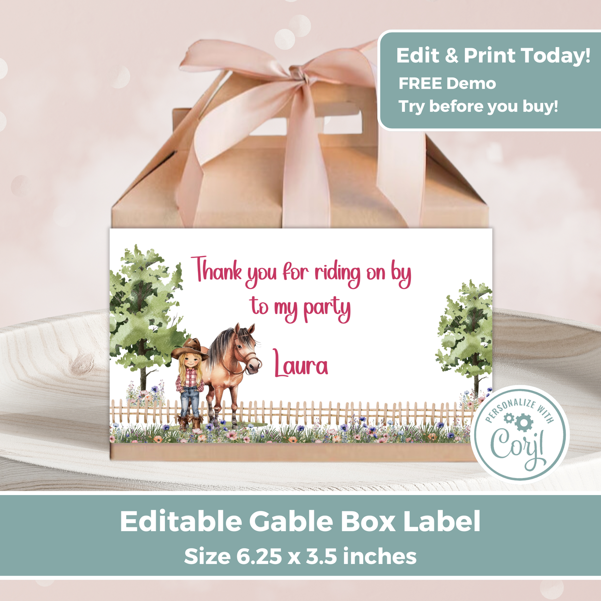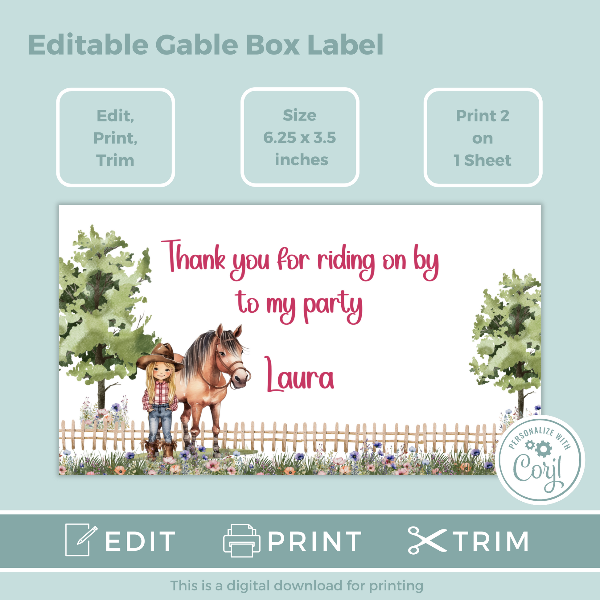Editable Birthday Gable Box Label - Saddle Up Girl