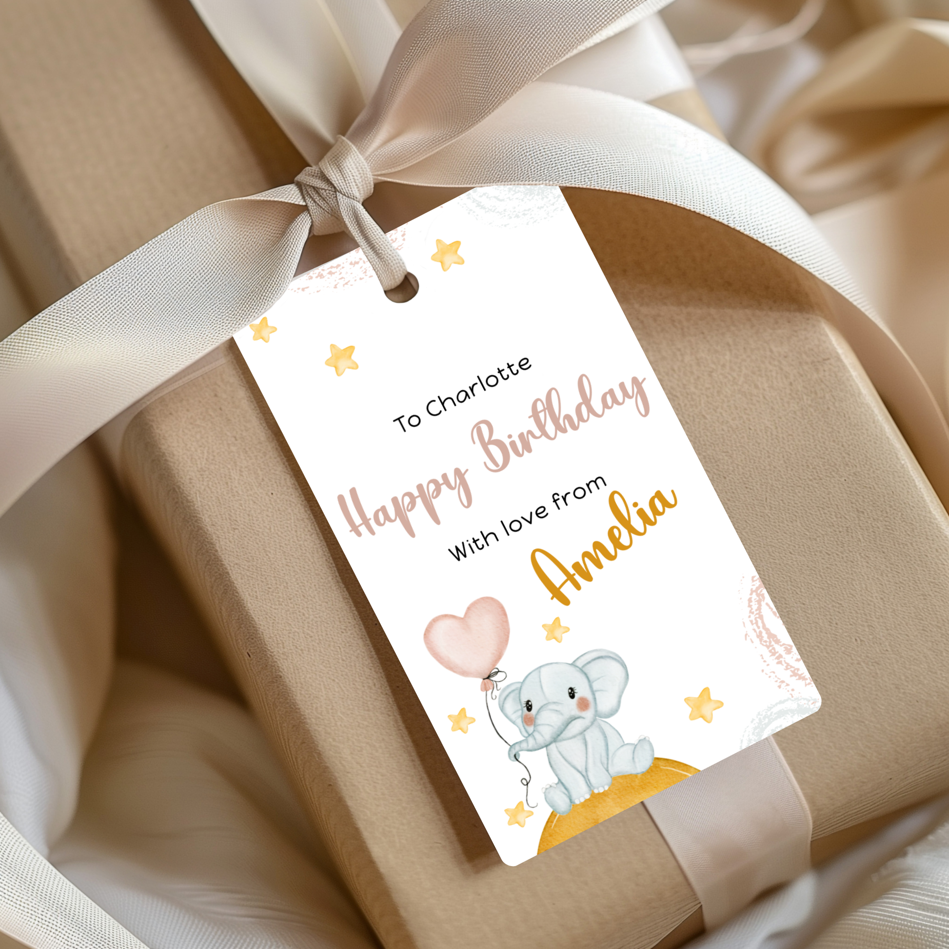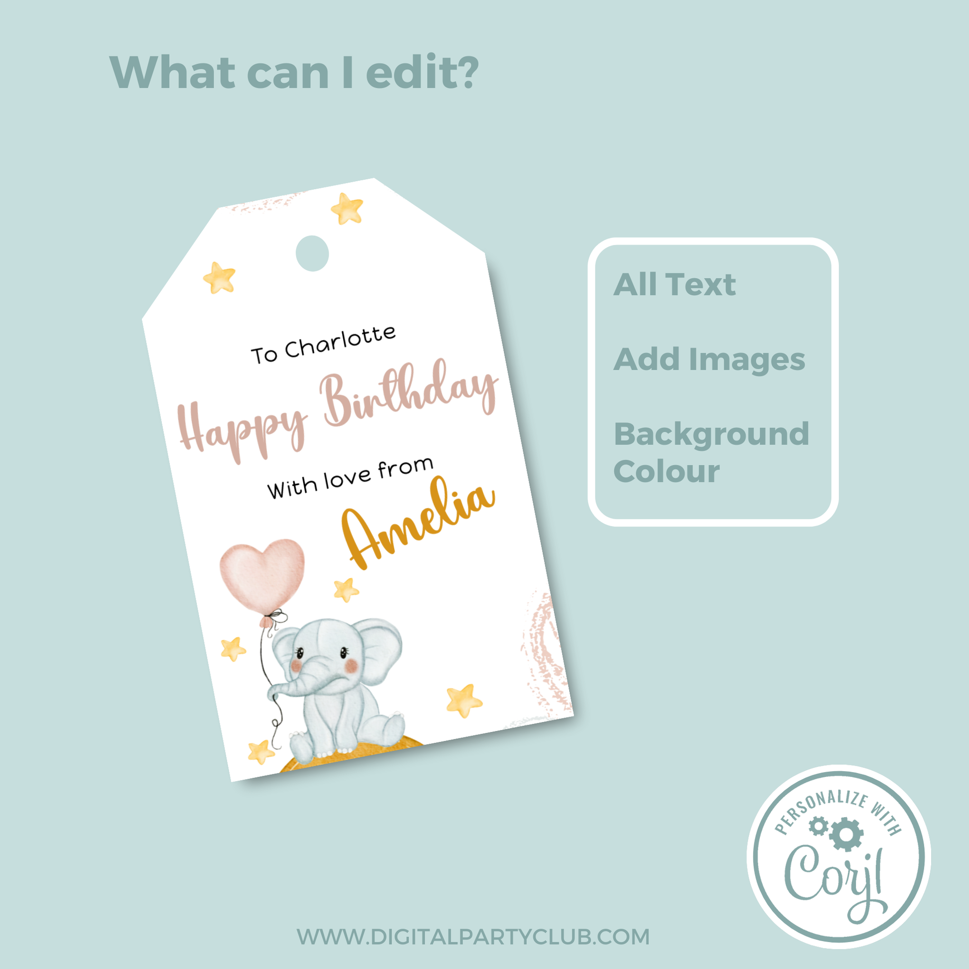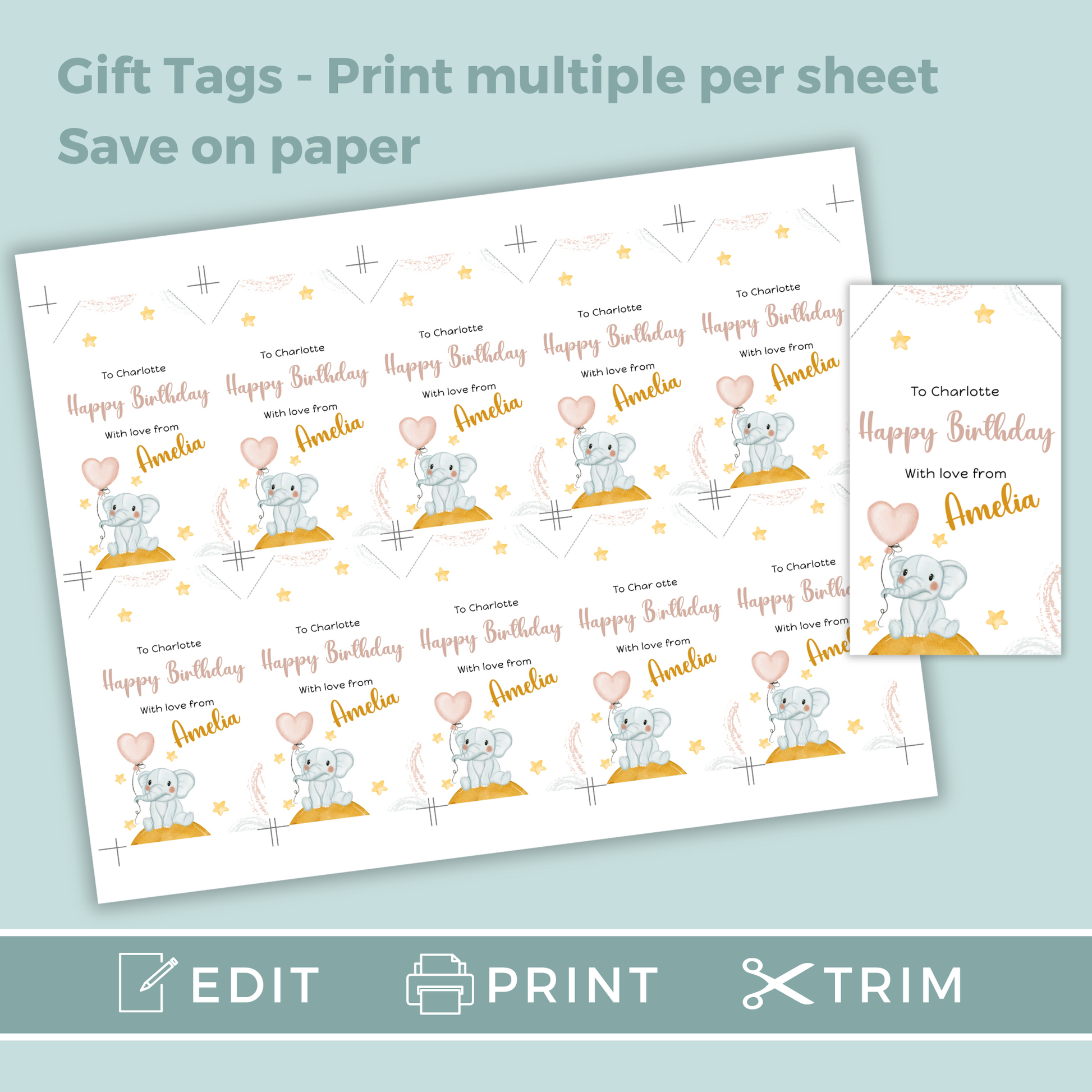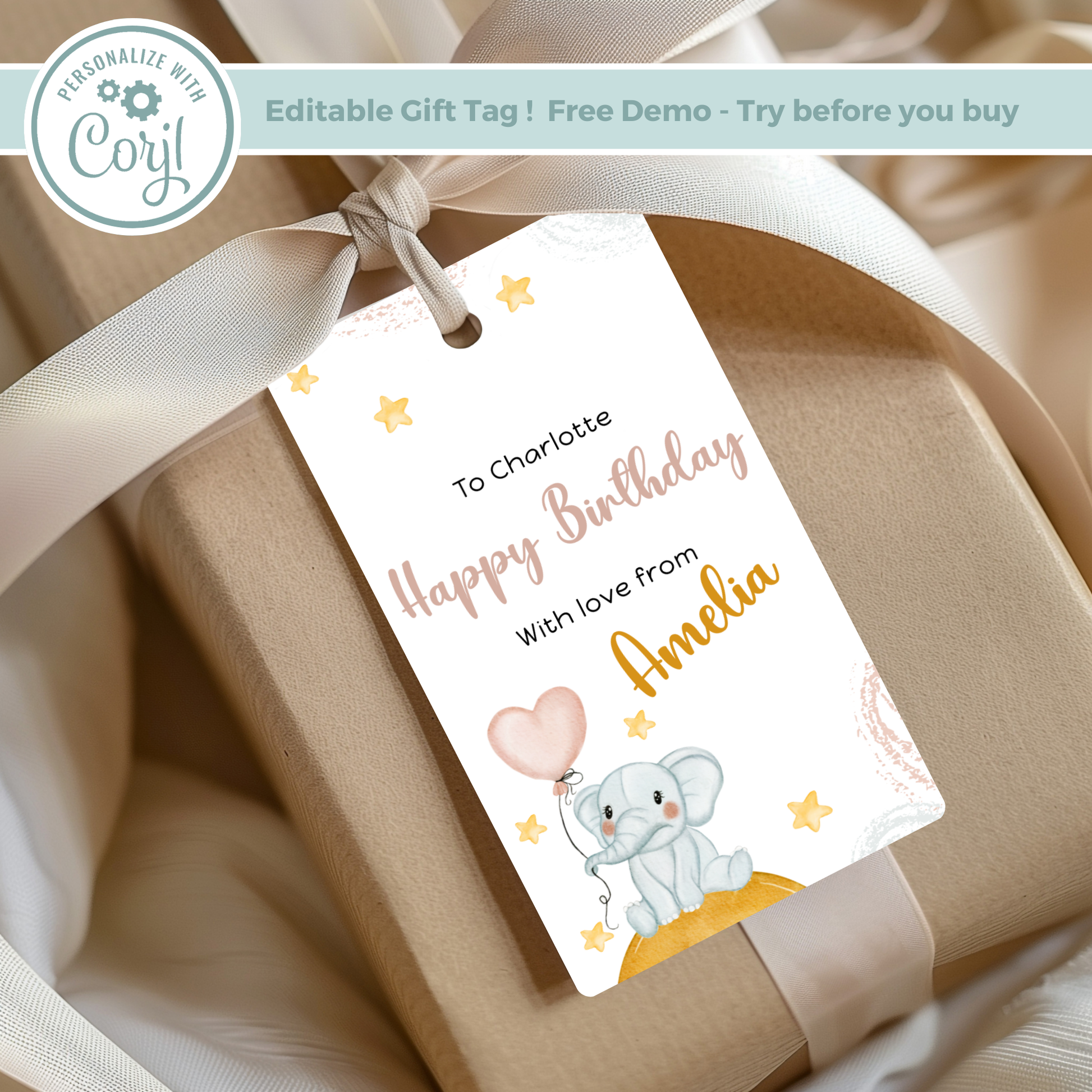 Editable Birthday Gift Tag - Baby Elephant