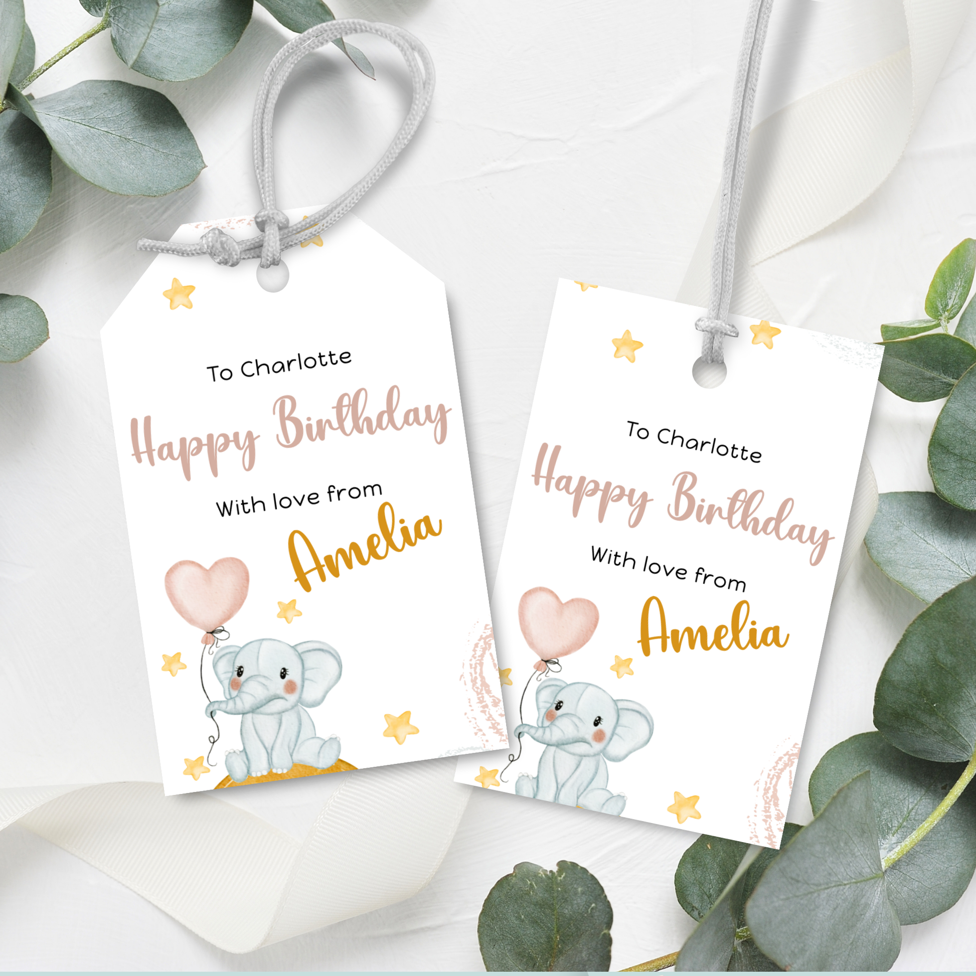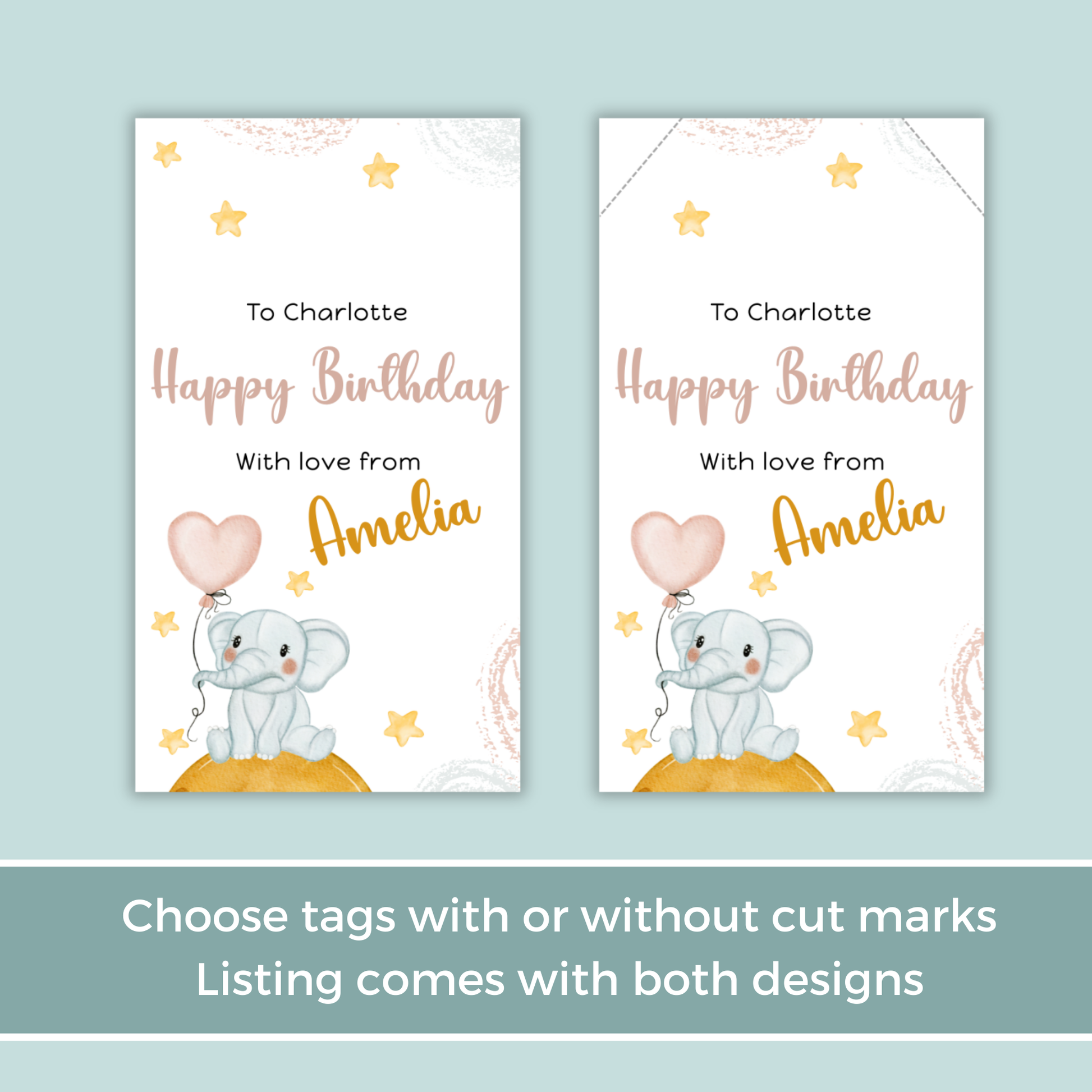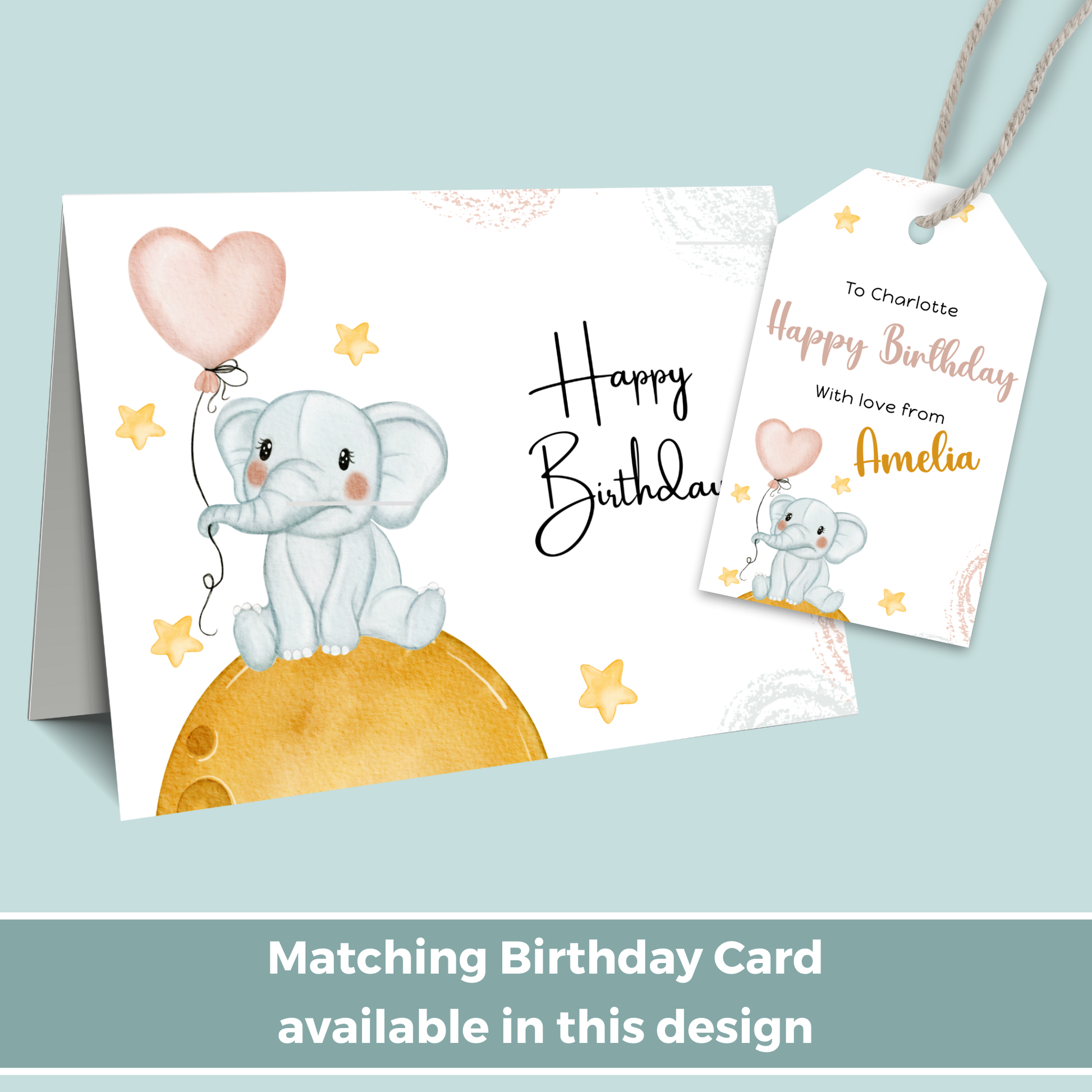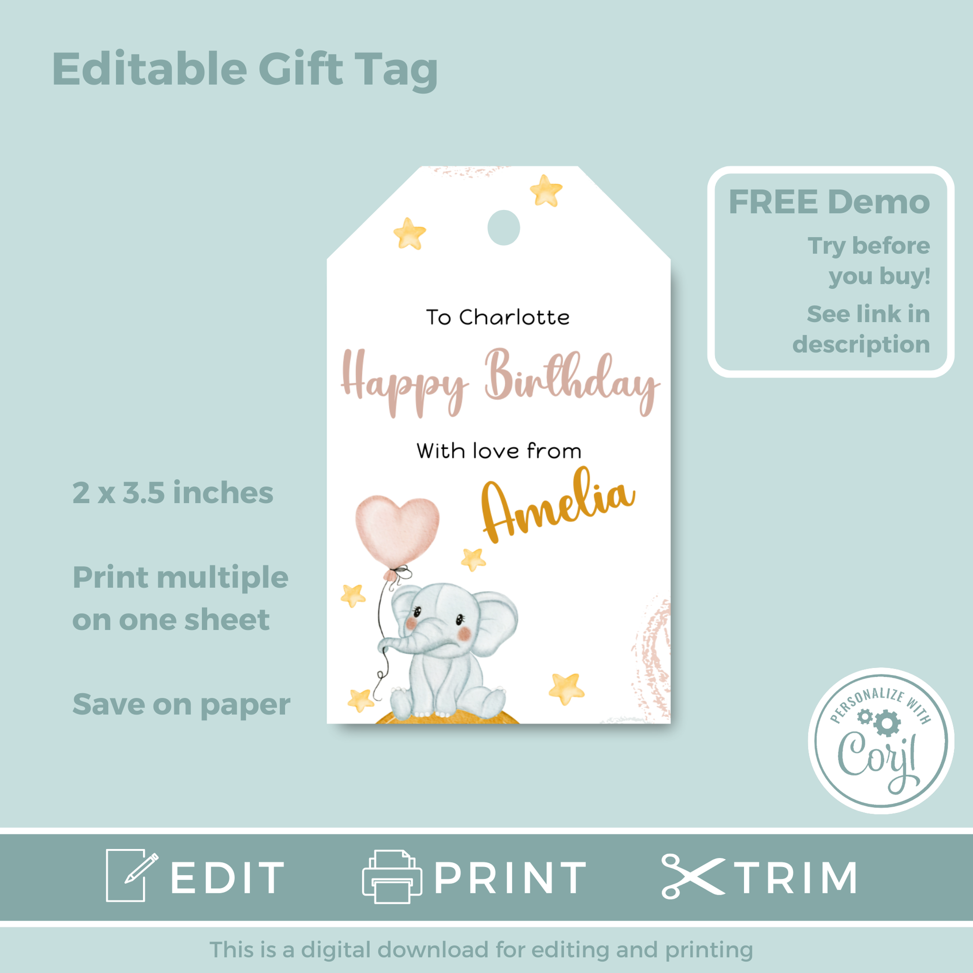 Editable Birthday Gift Tag - Baby Elephant