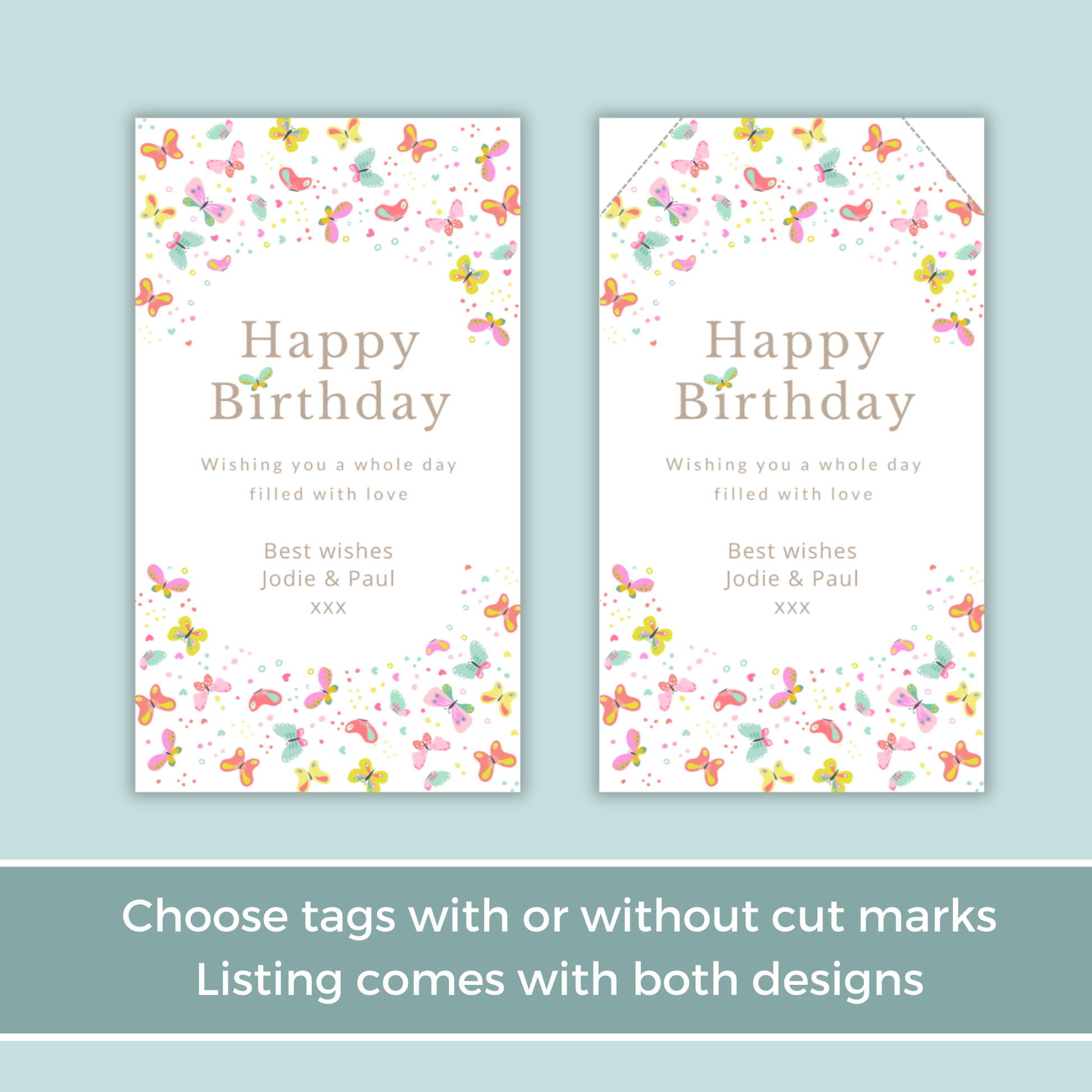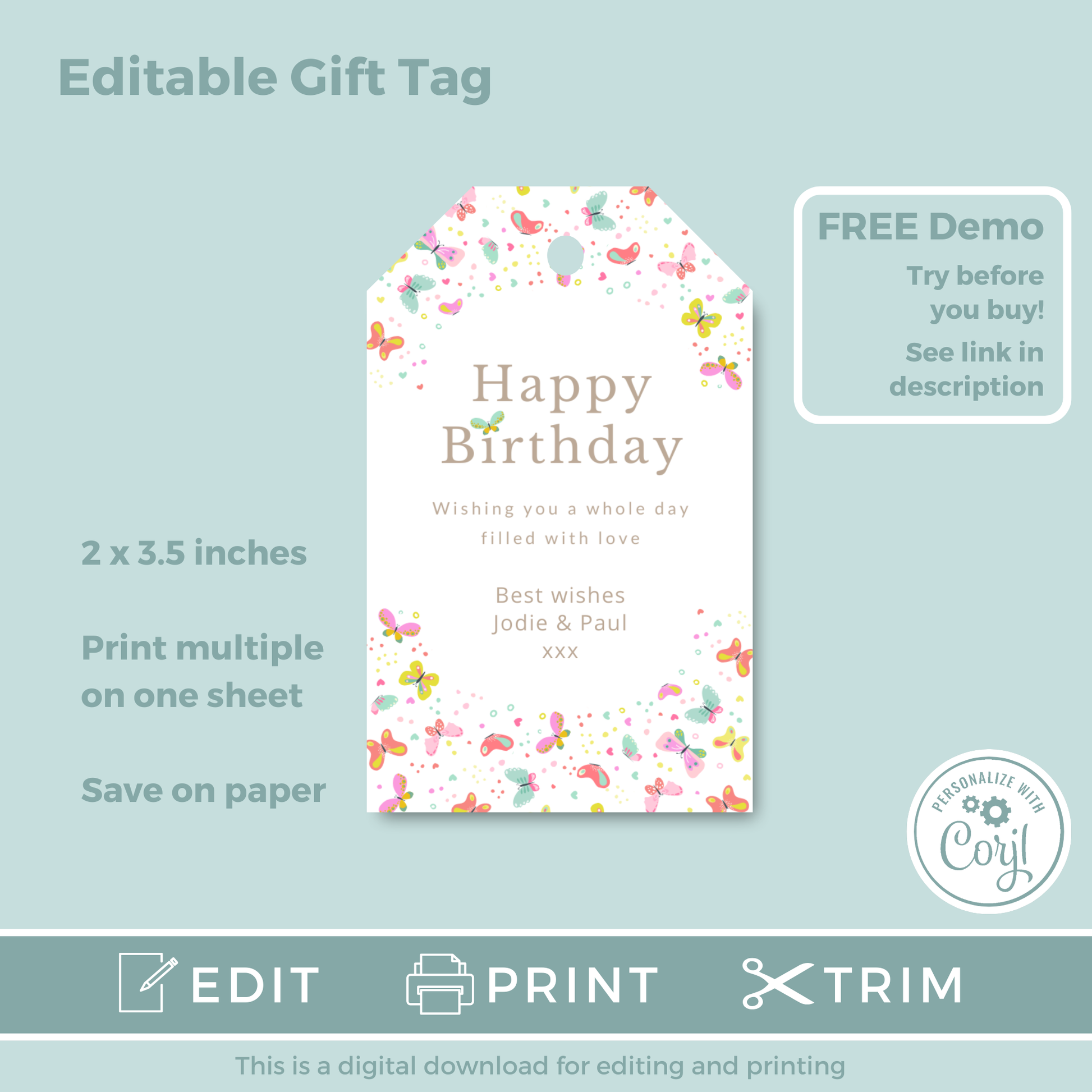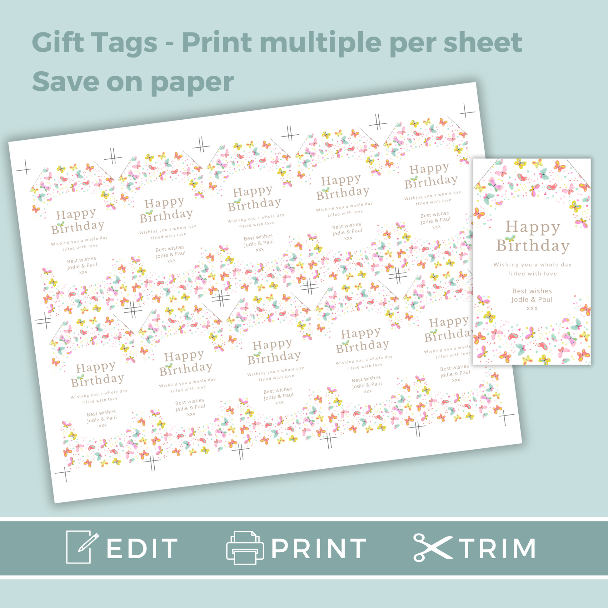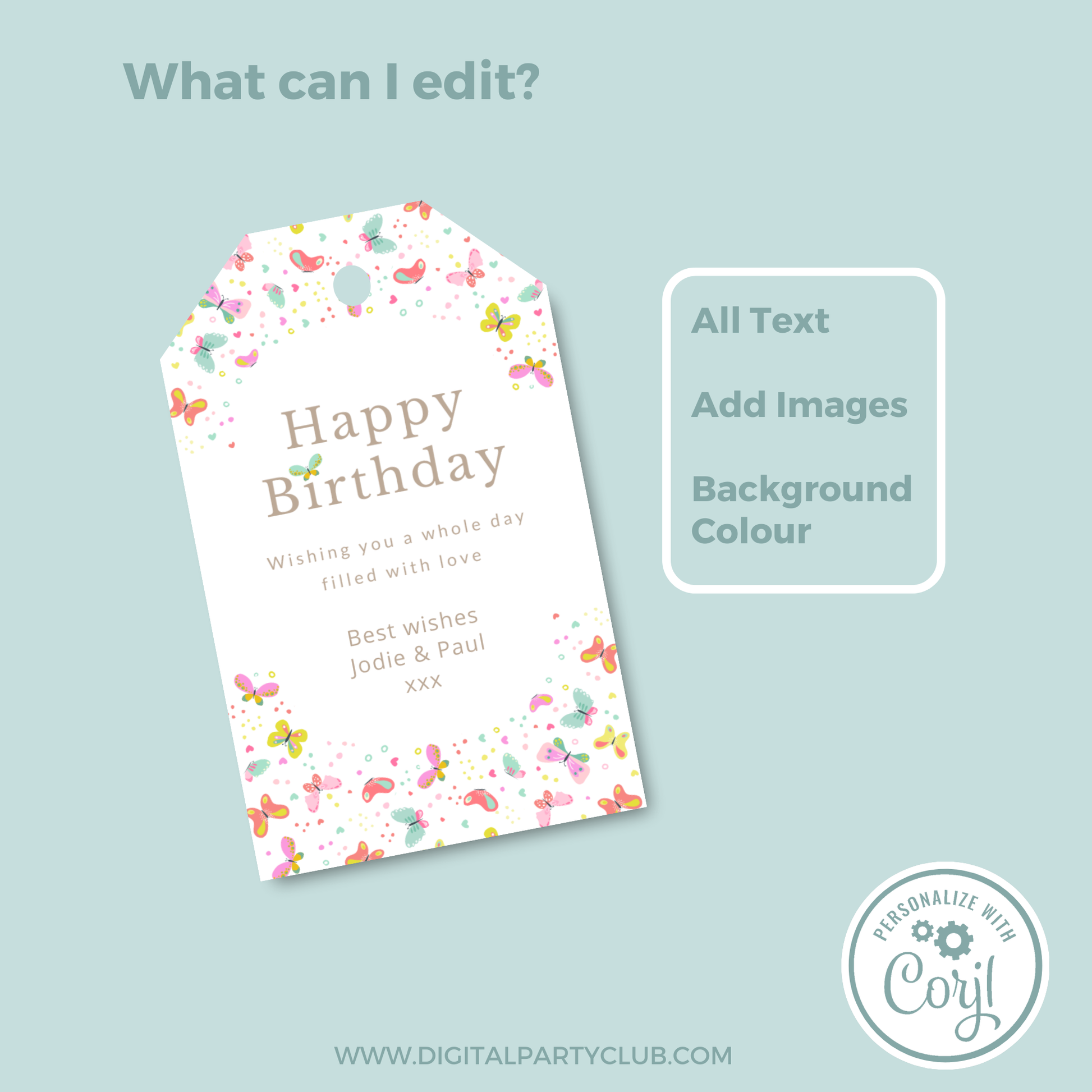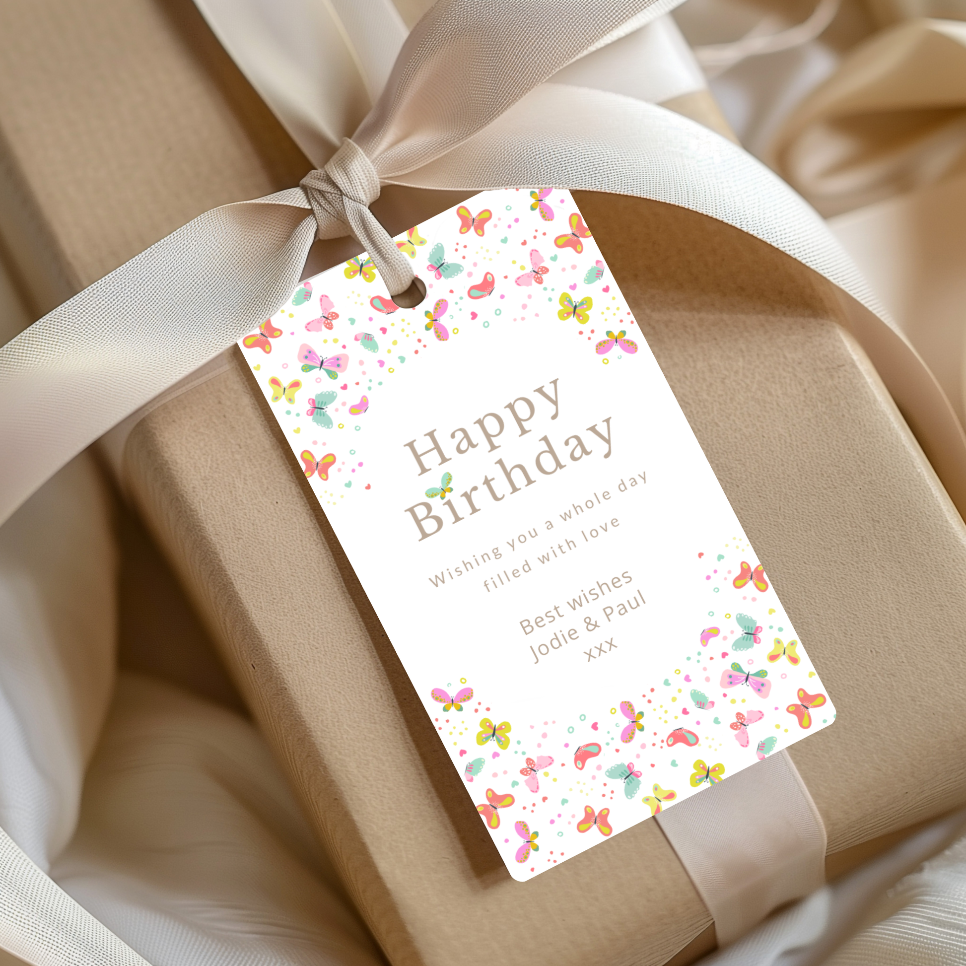 Editable Birthday Gift Tag - Butterflies