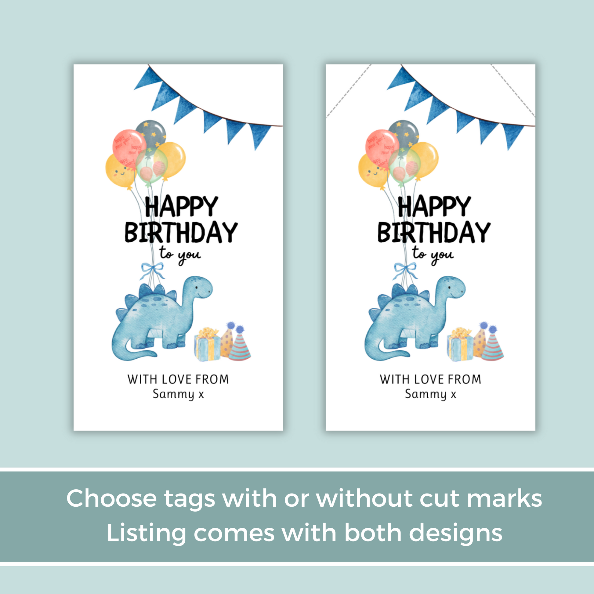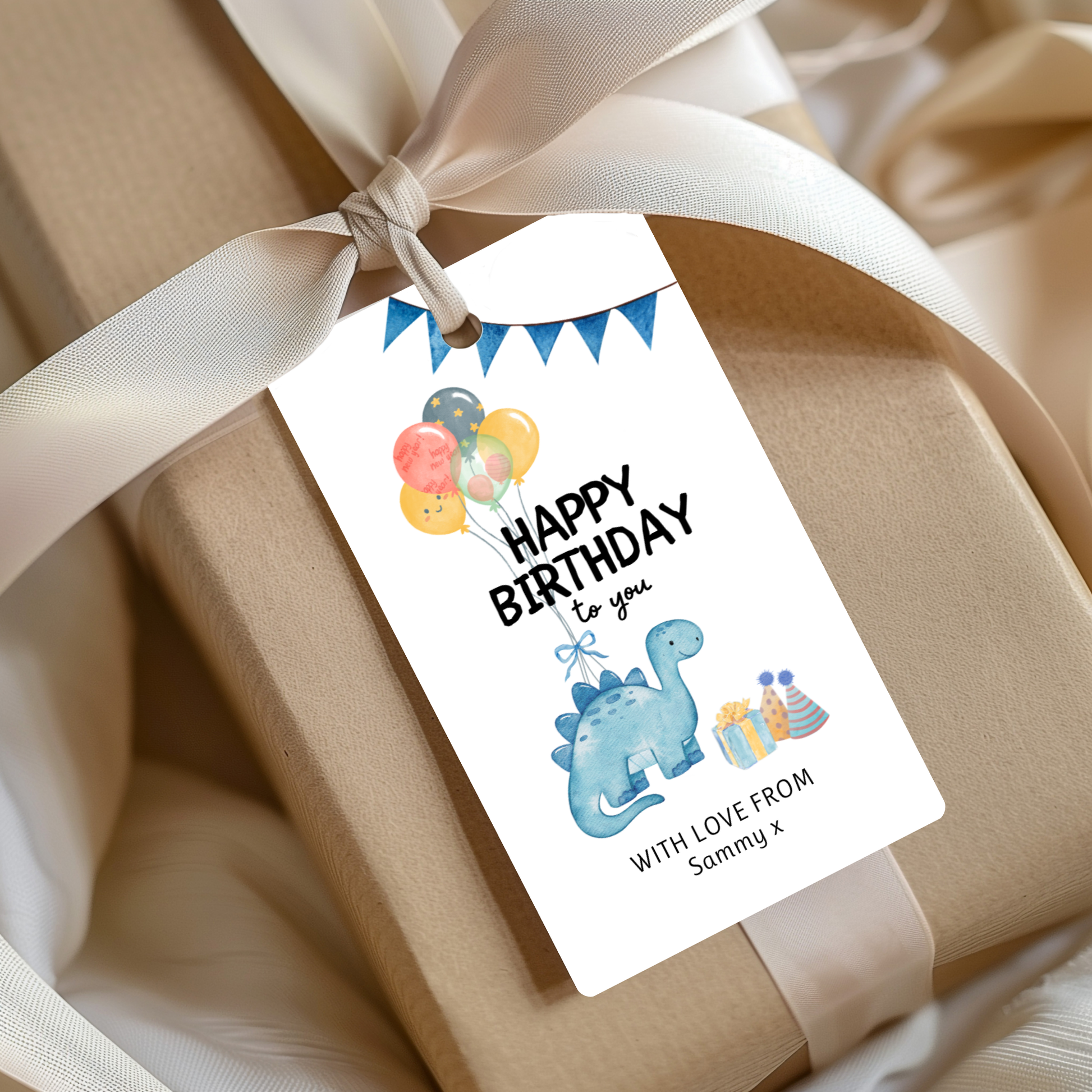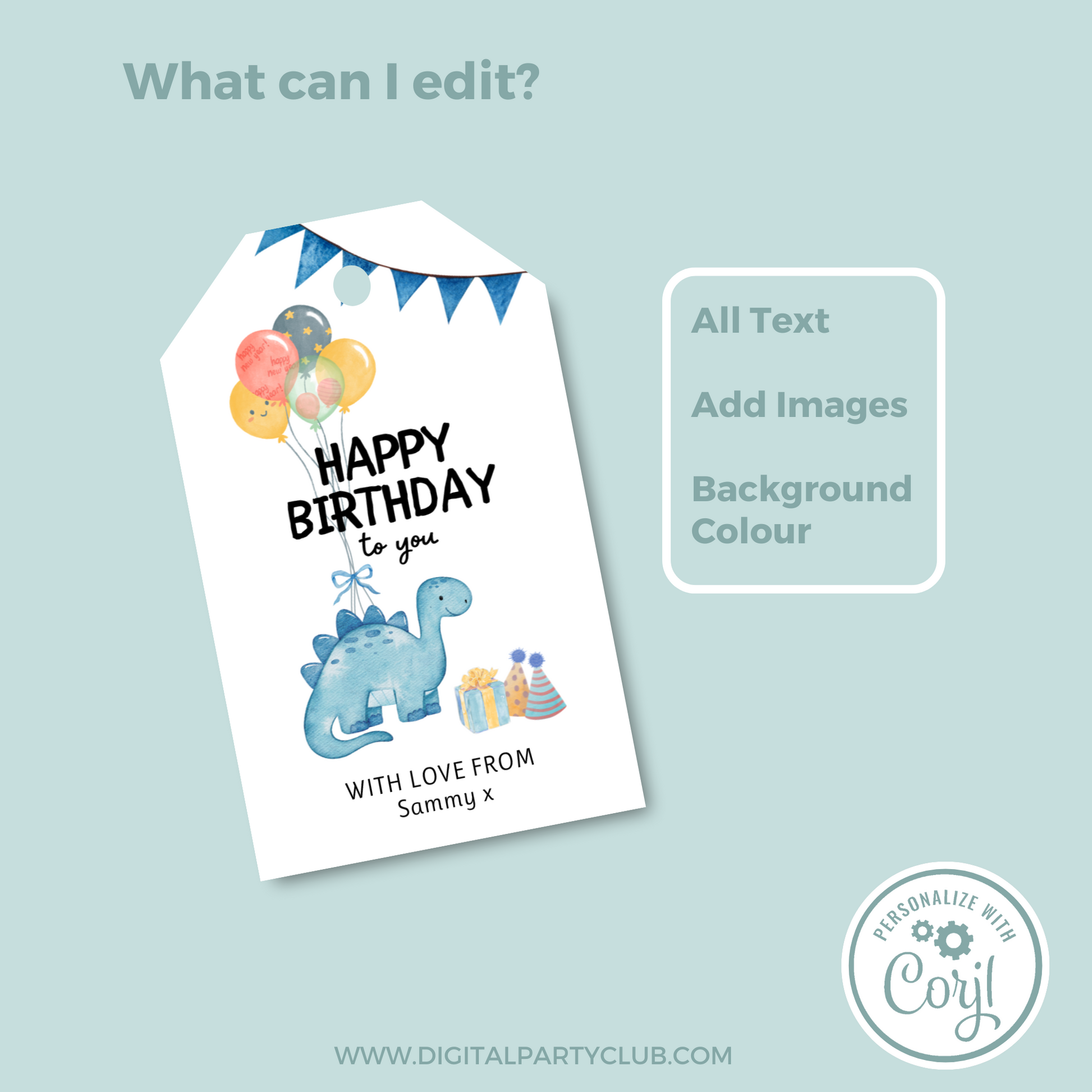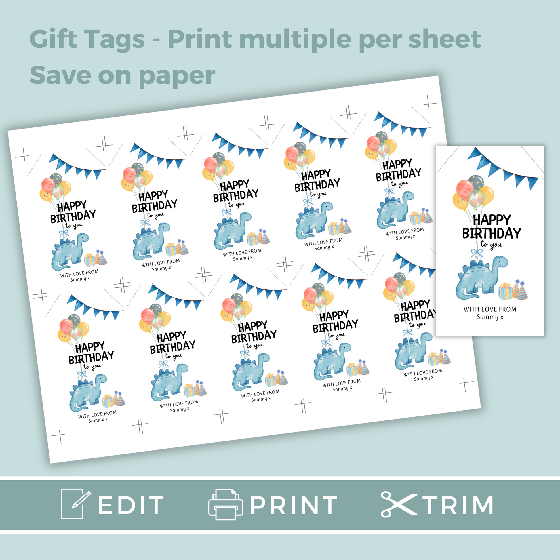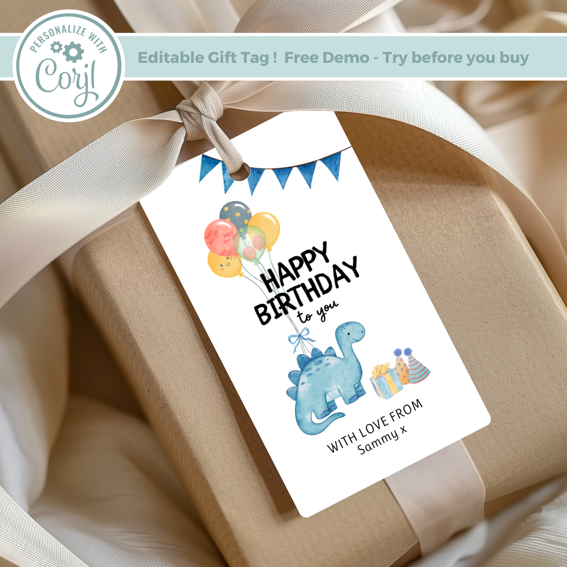 Editable Birthday Gift Tag - Dinosaur