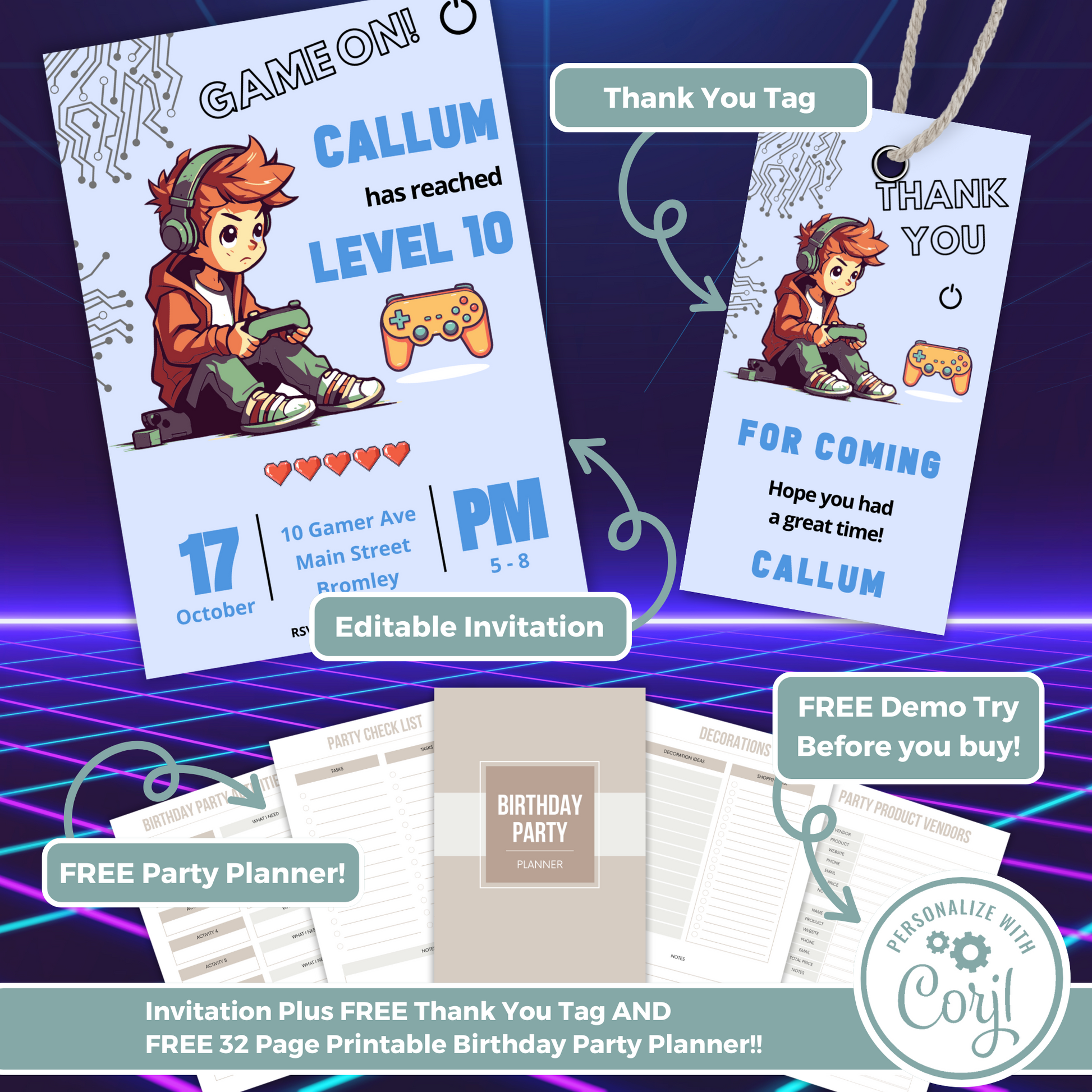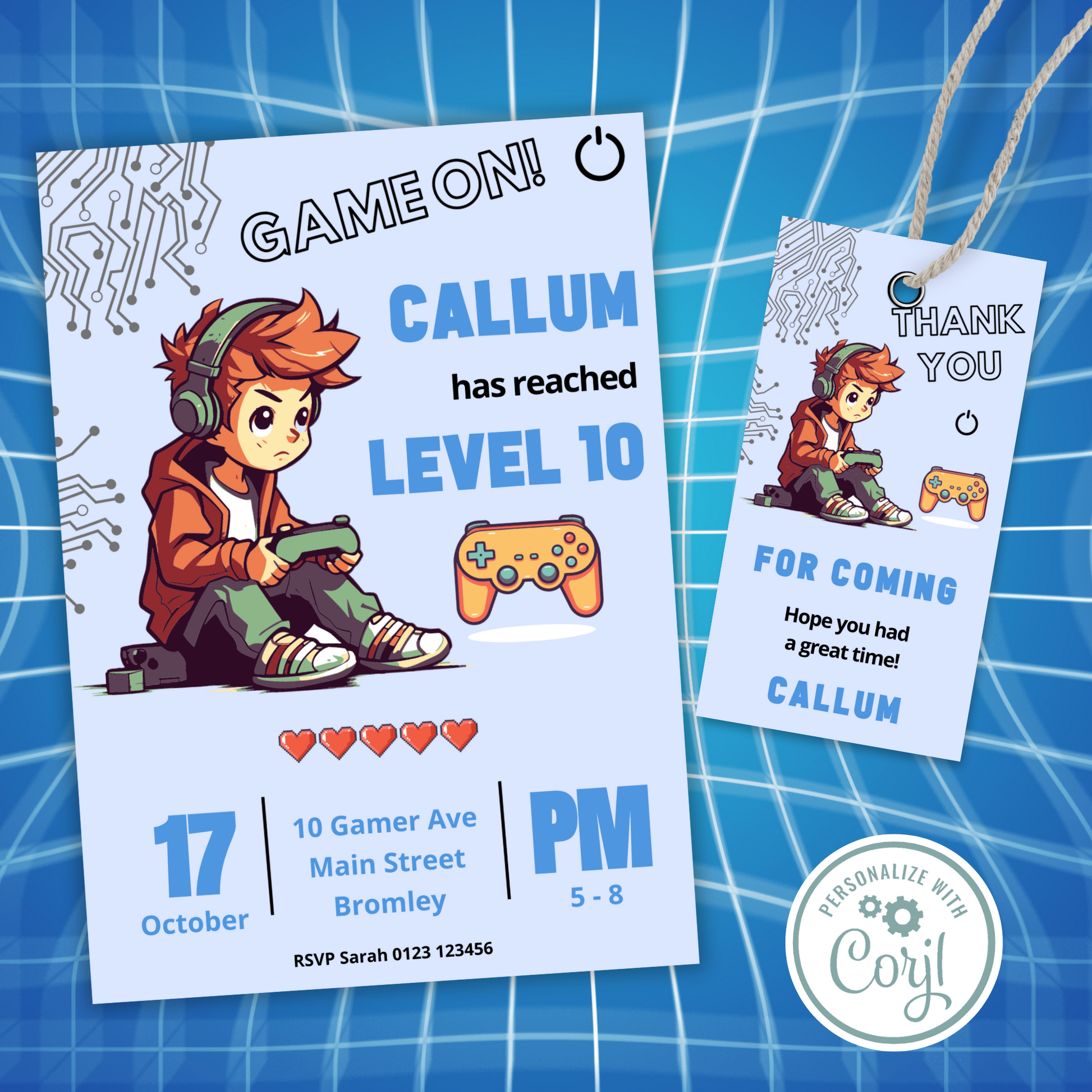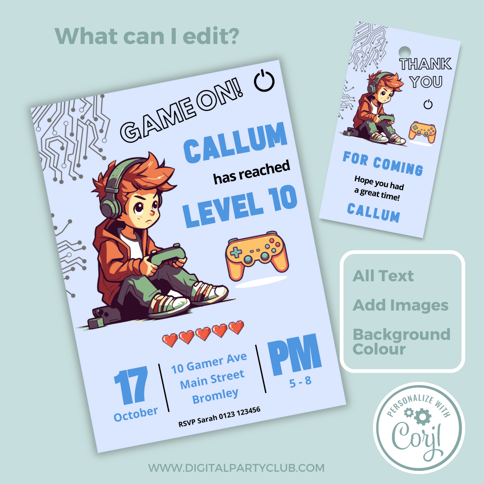 Editable Birthday Invitation and FREE Thank You Tag - Game On