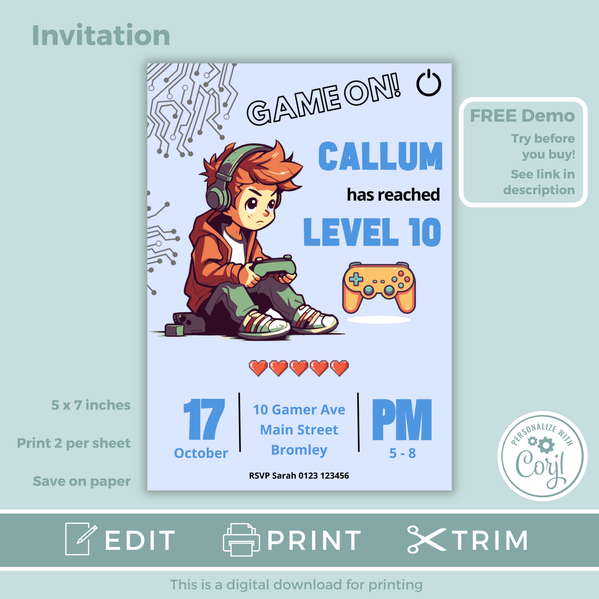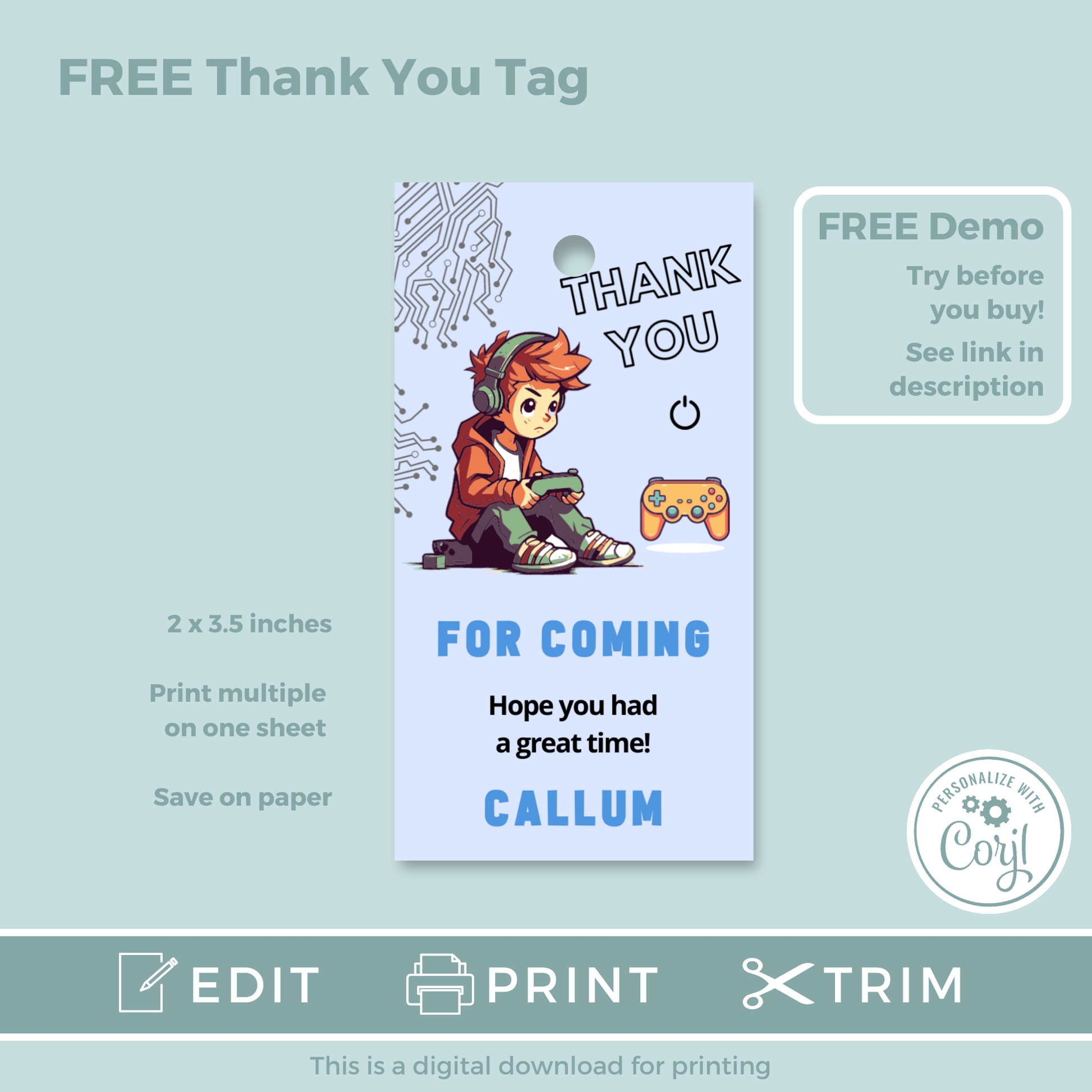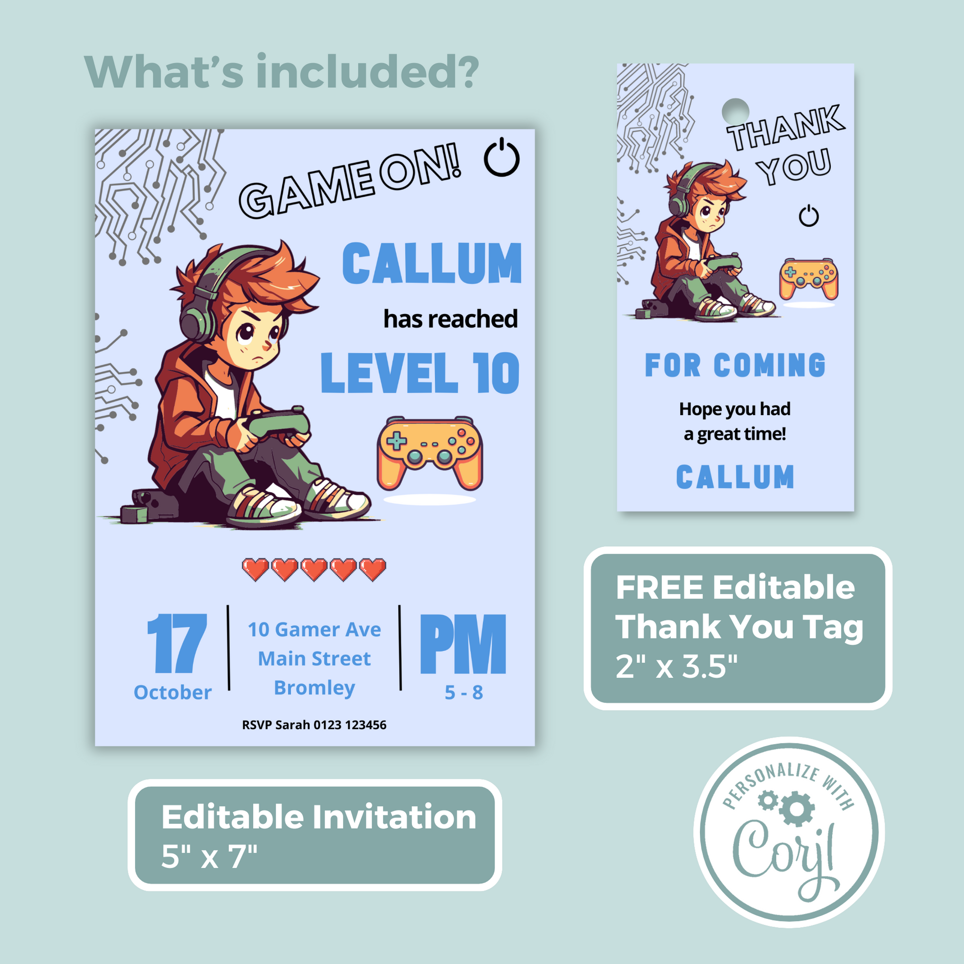 Editable Birthday Invitation and FREE Thank You Tag - Game On