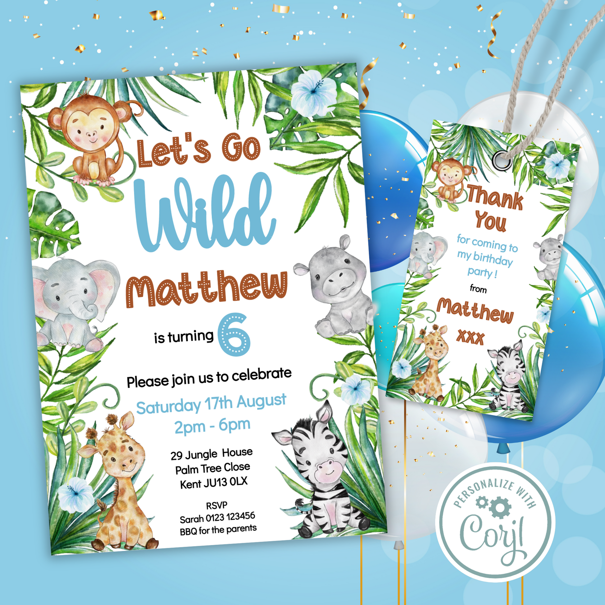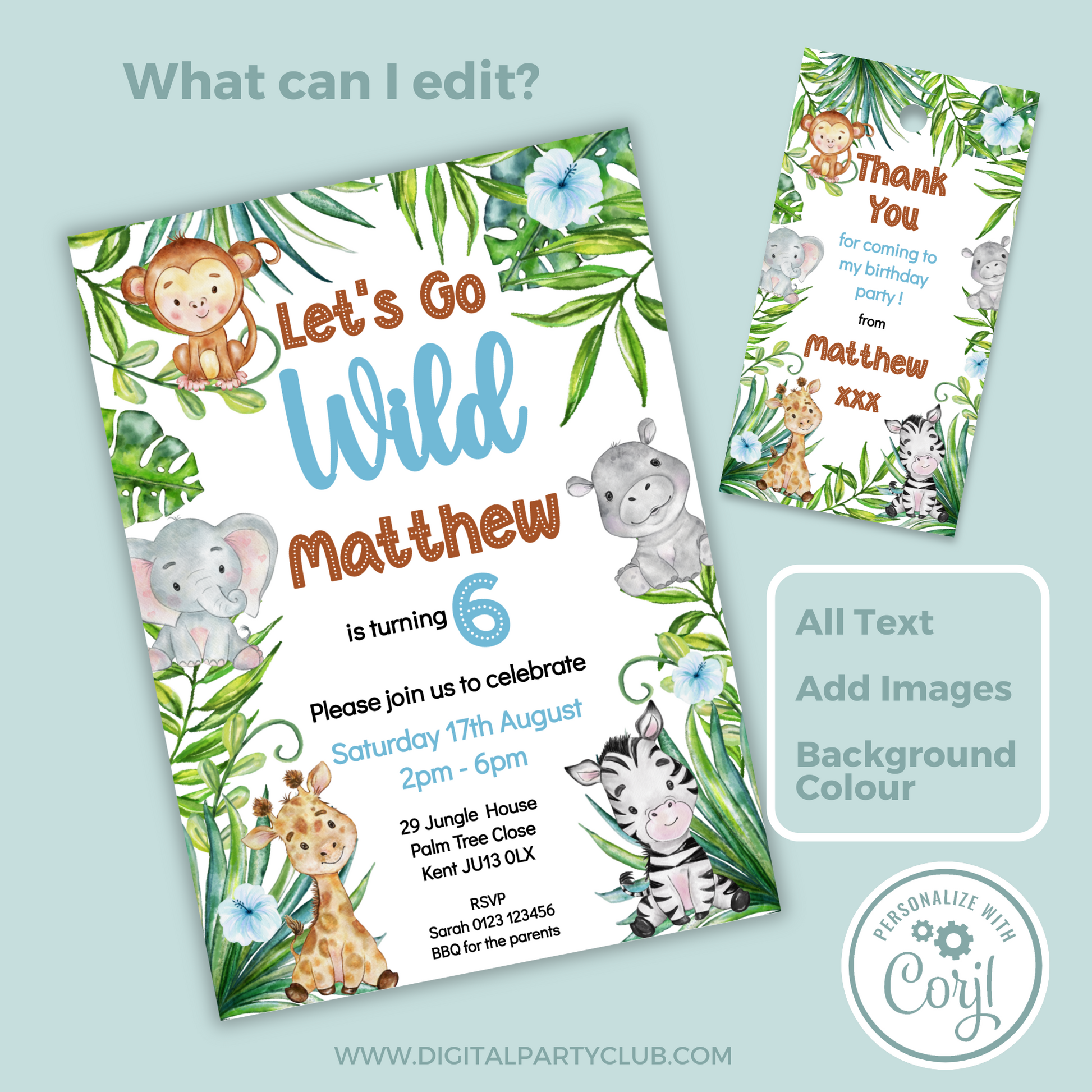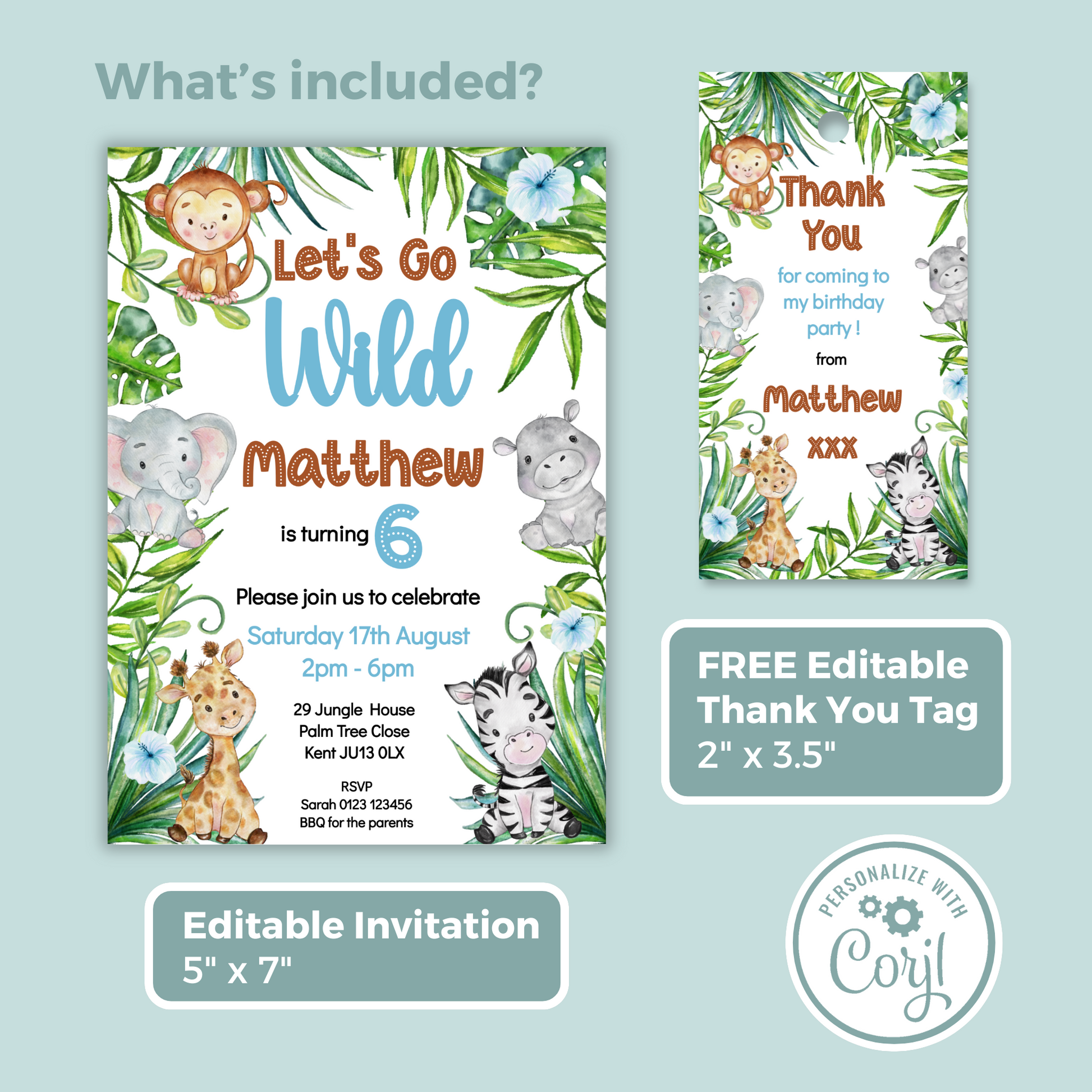 Editable Birthday Invitation and FREE Thank You Tag - Let's Go Wild