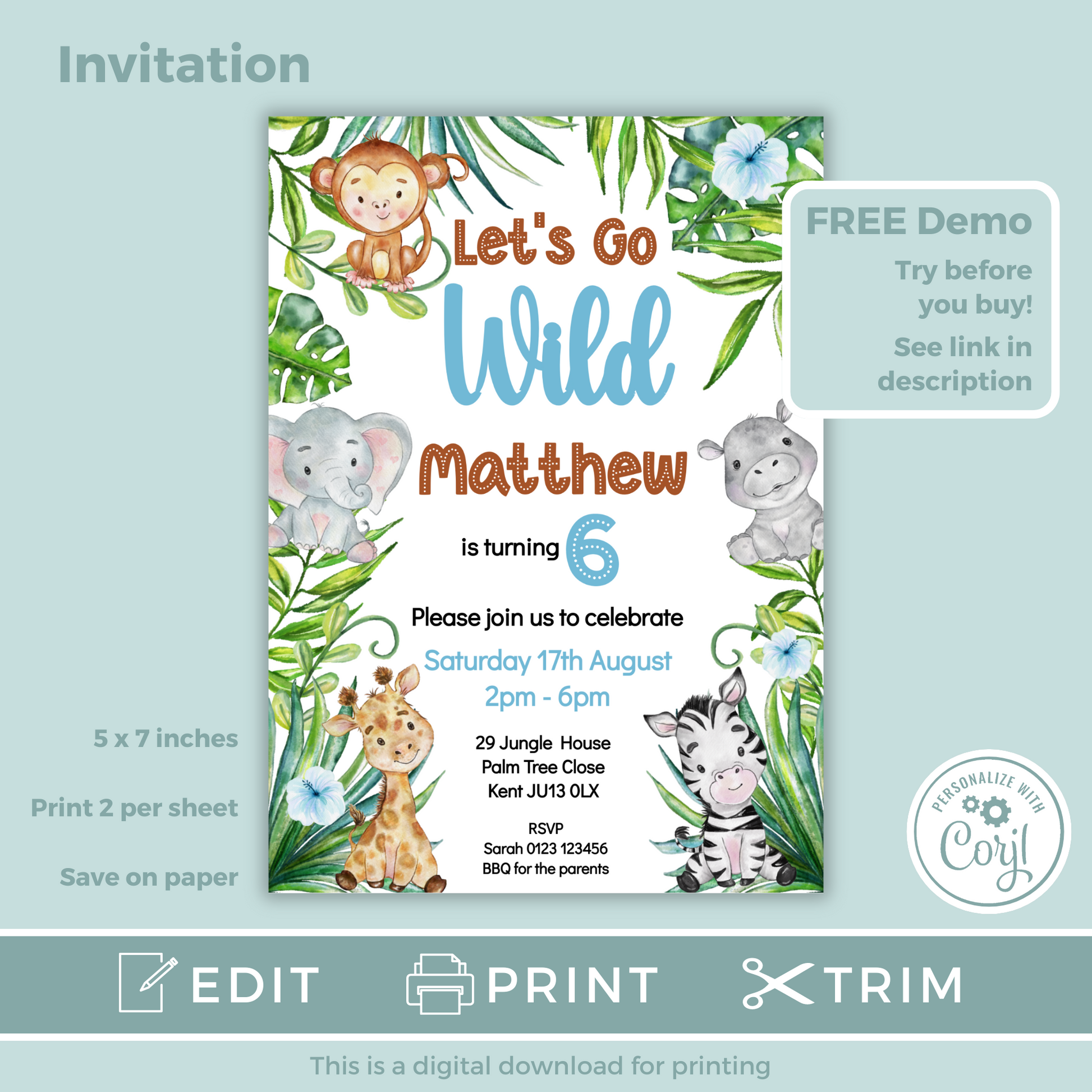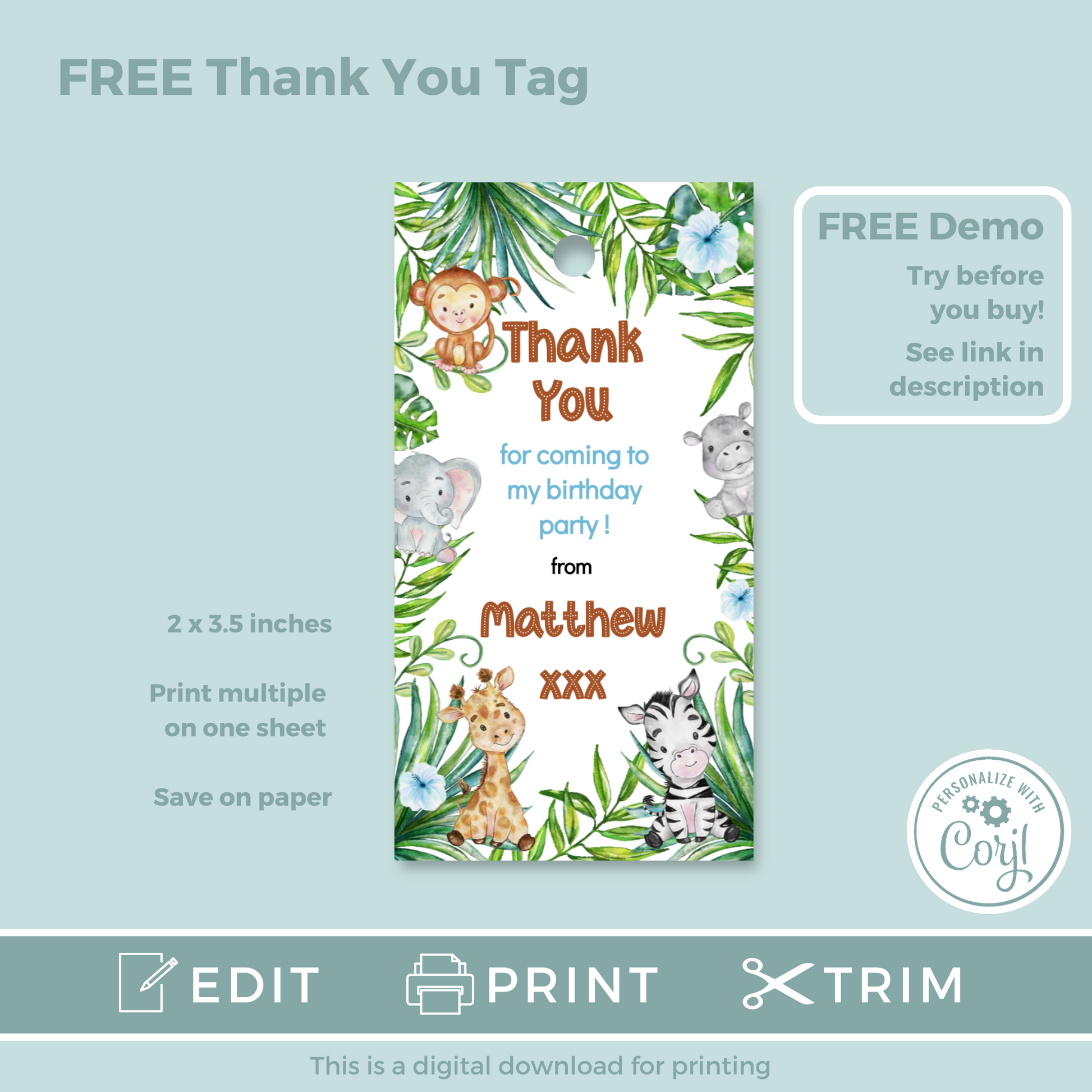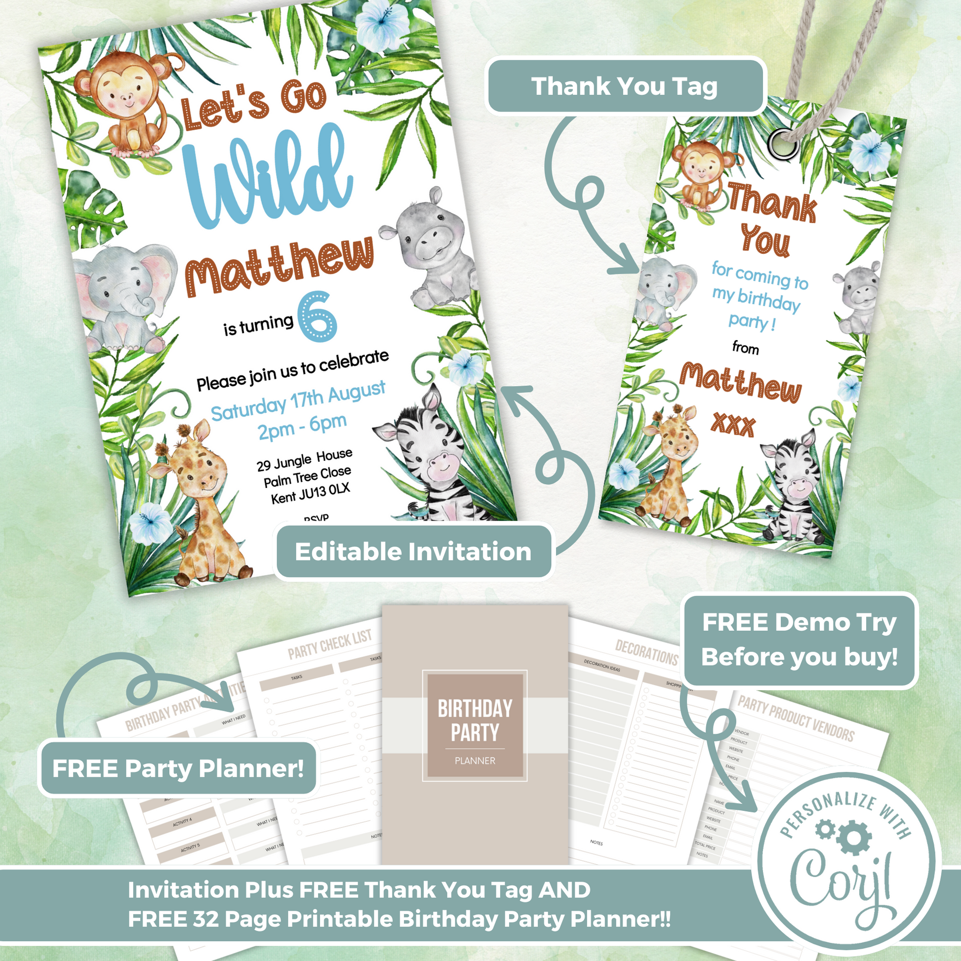 Editable Birthday Invitation and FREE Thank You Tag - Let's Go Wild