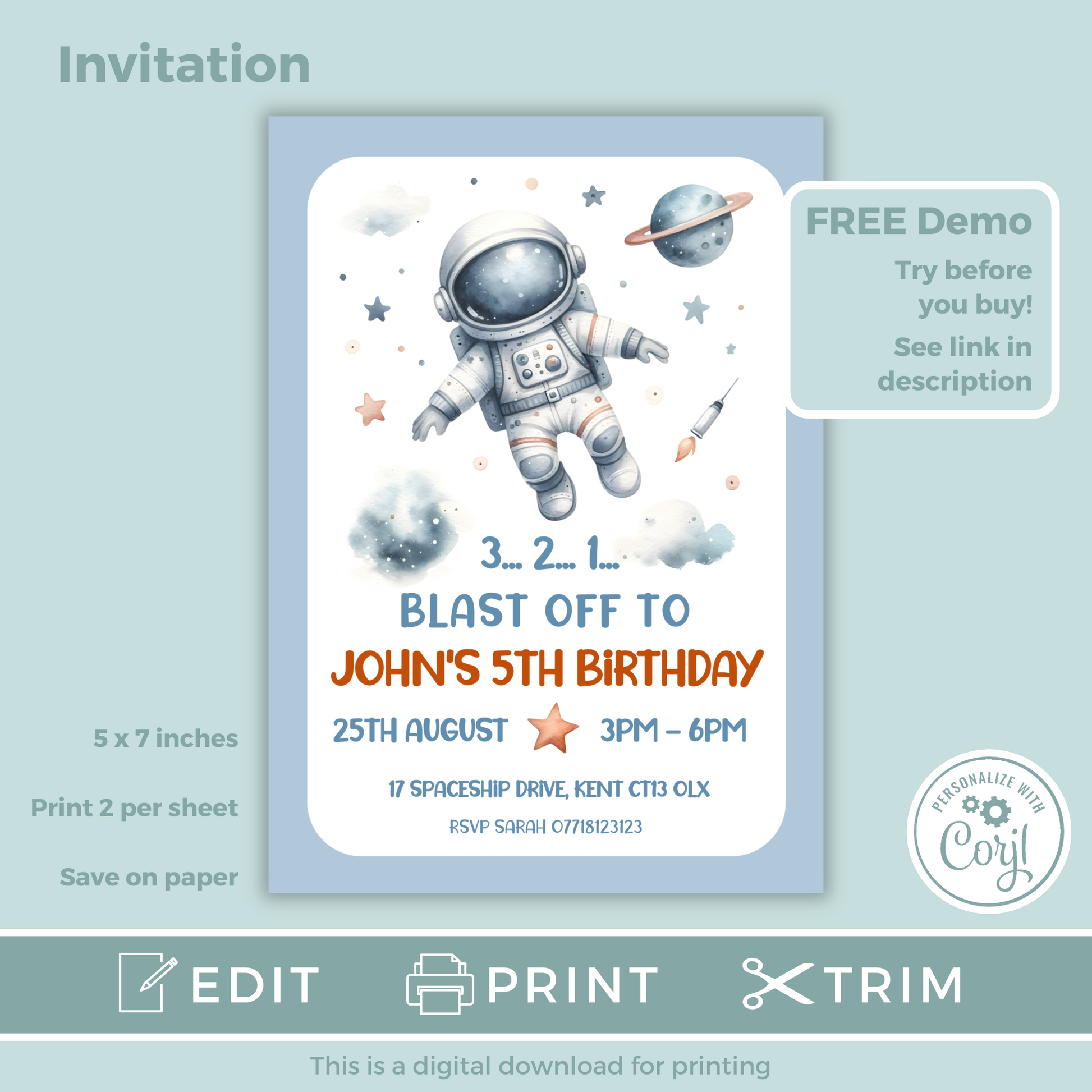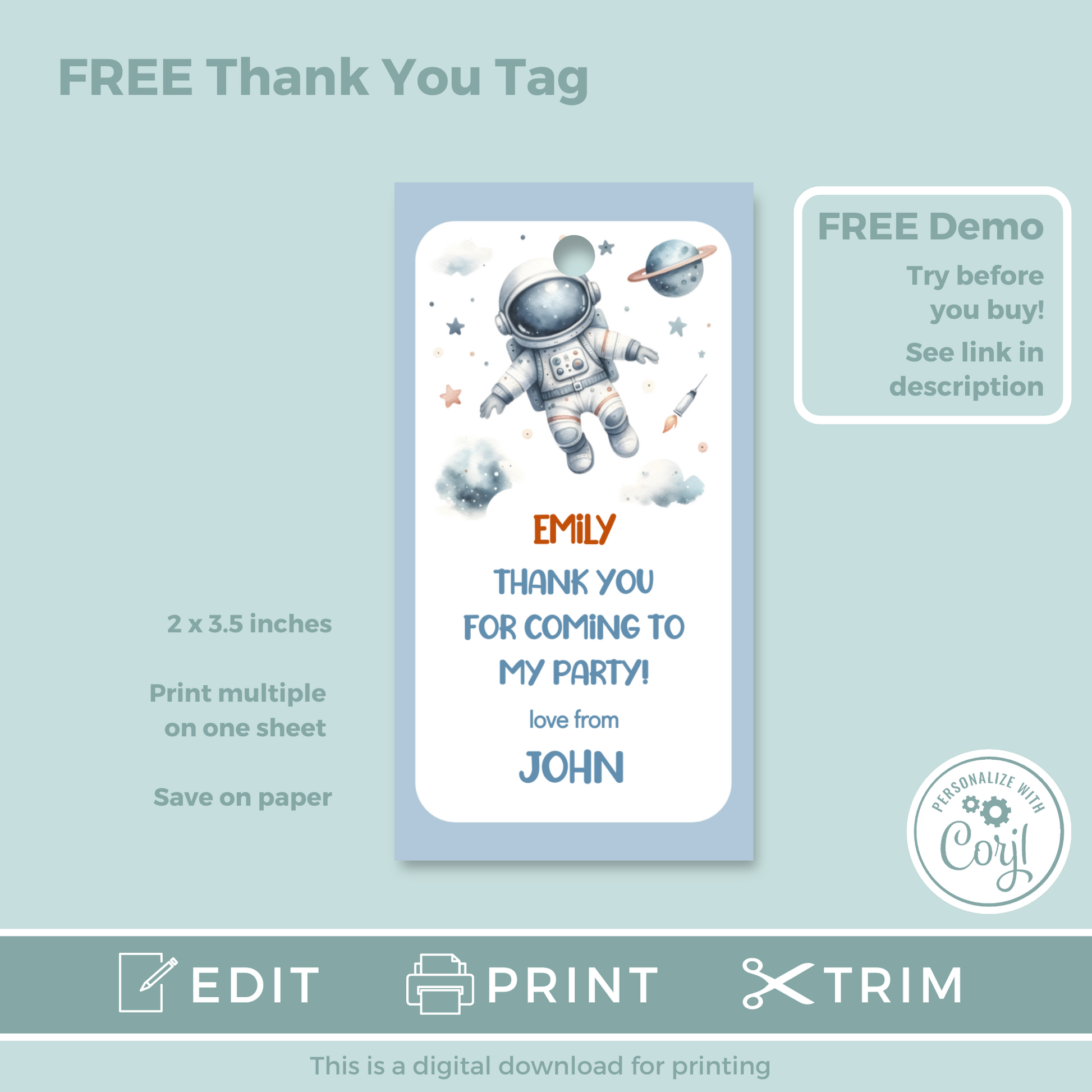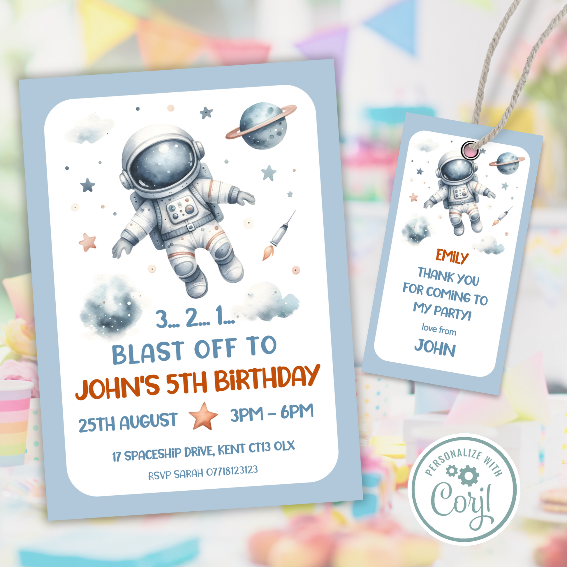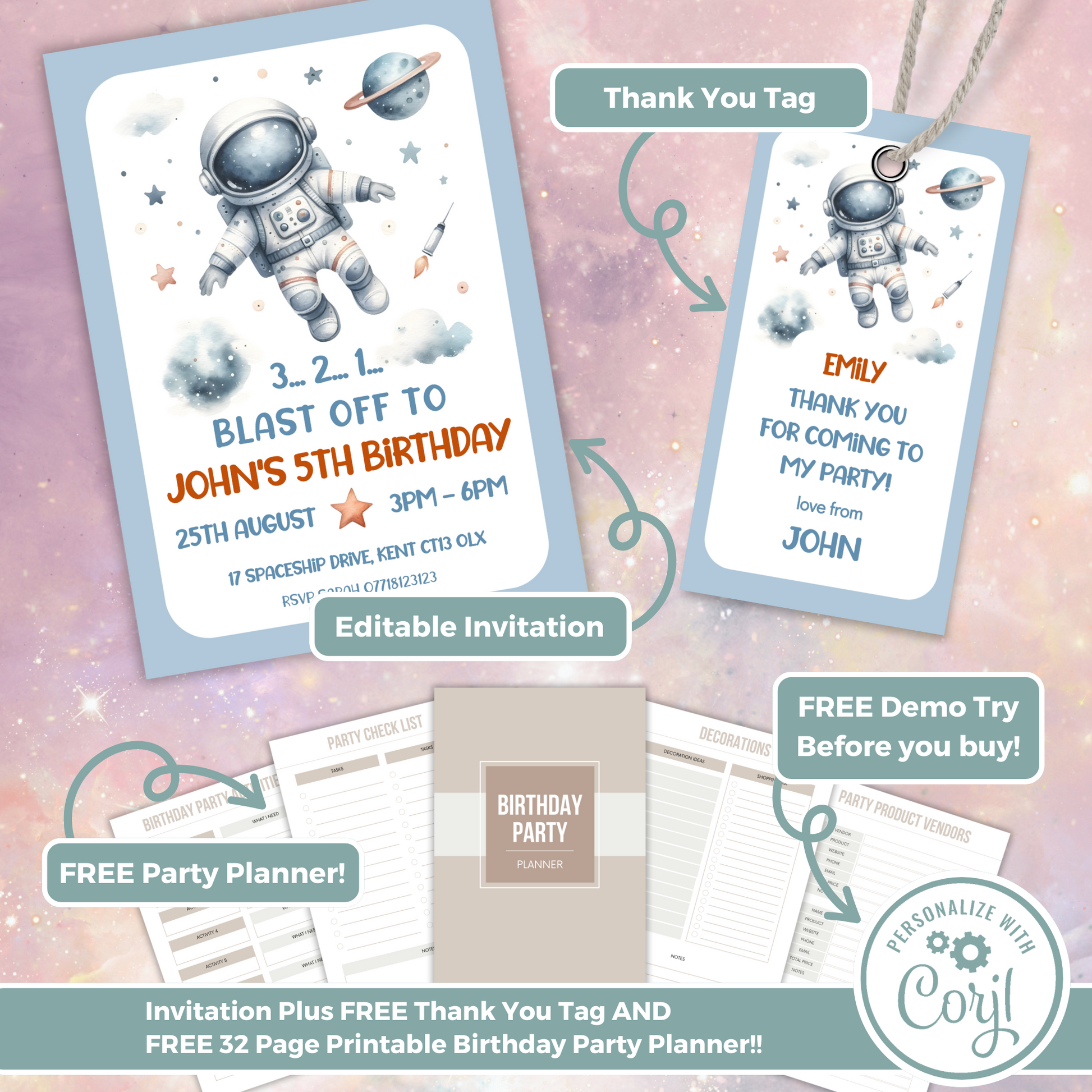 Editable Birthday Invitation and FREE Thank You Tag - Spaceman