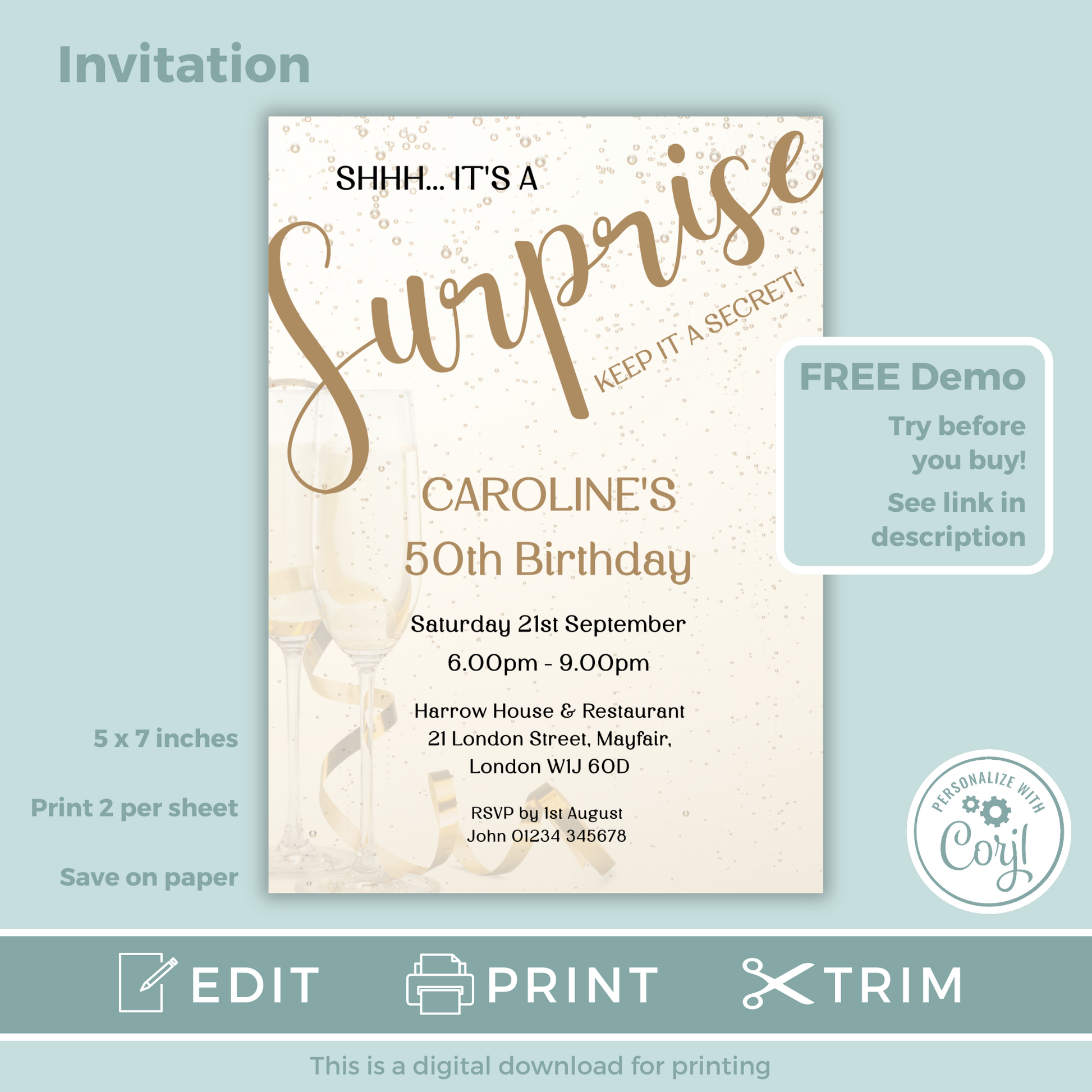 ★ Editable Invitation - Size 5" x 7"