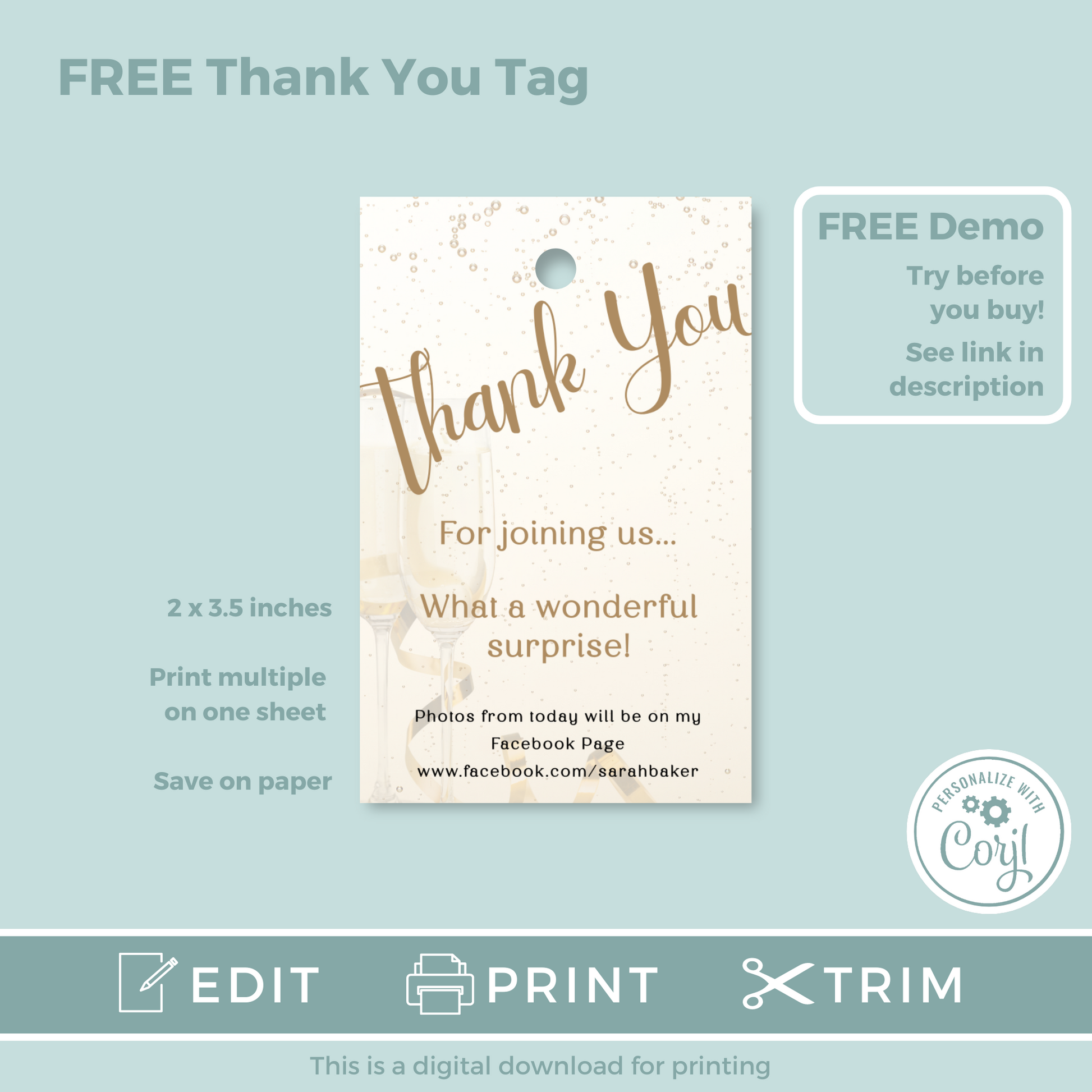 ★ FREE Editable Thank You Tag - Size 2" x 3.5"
