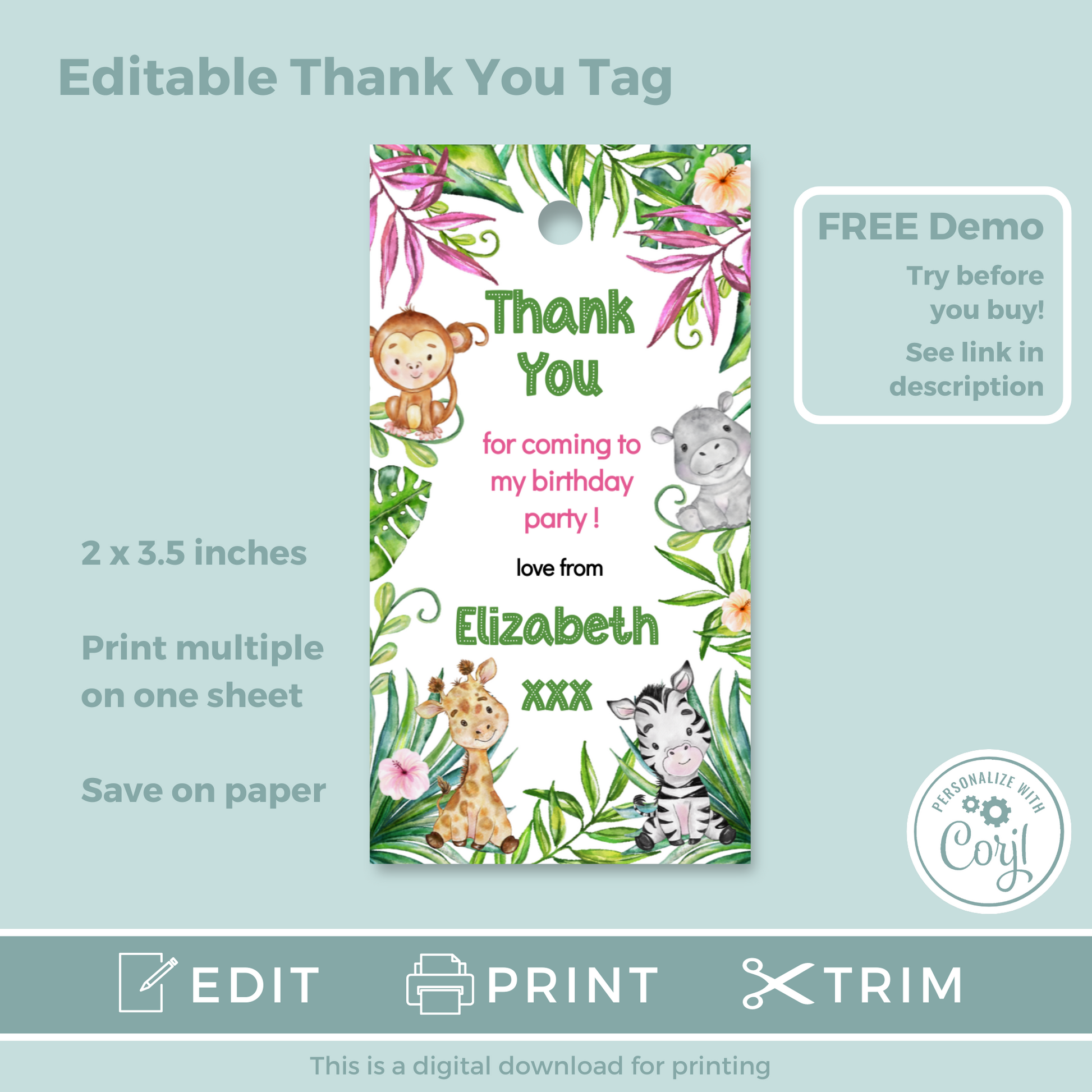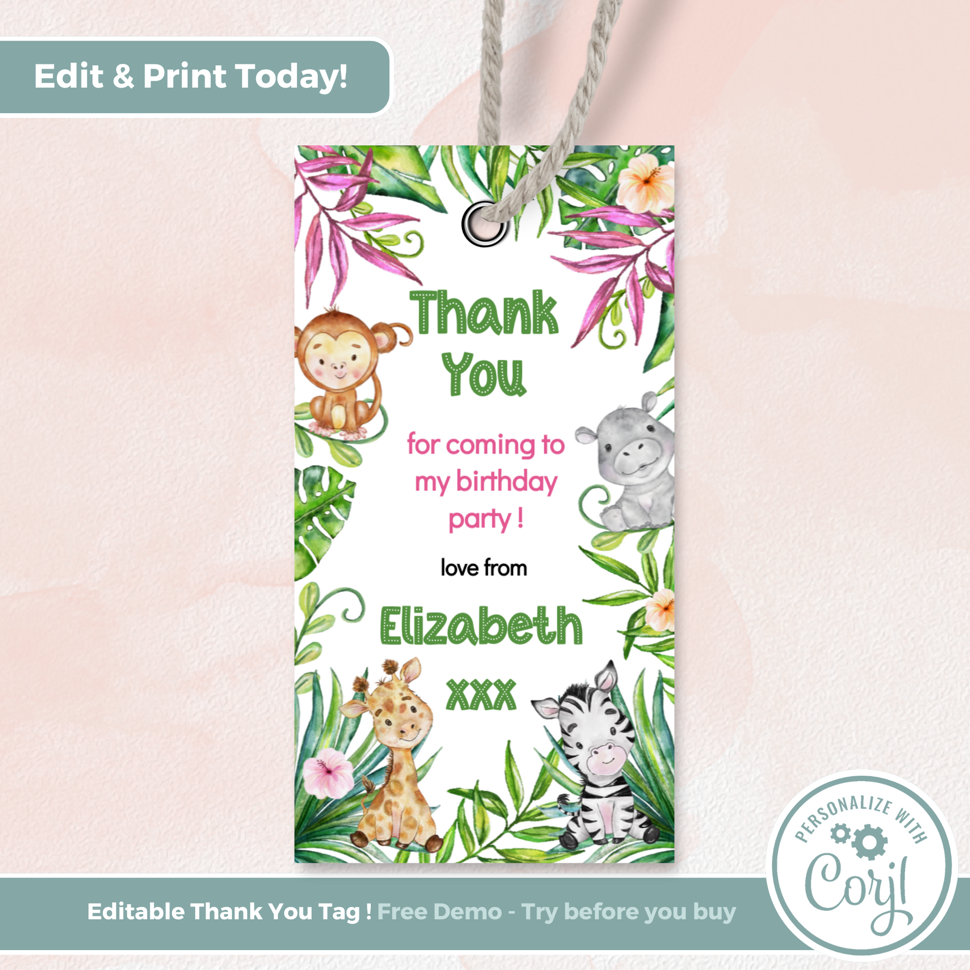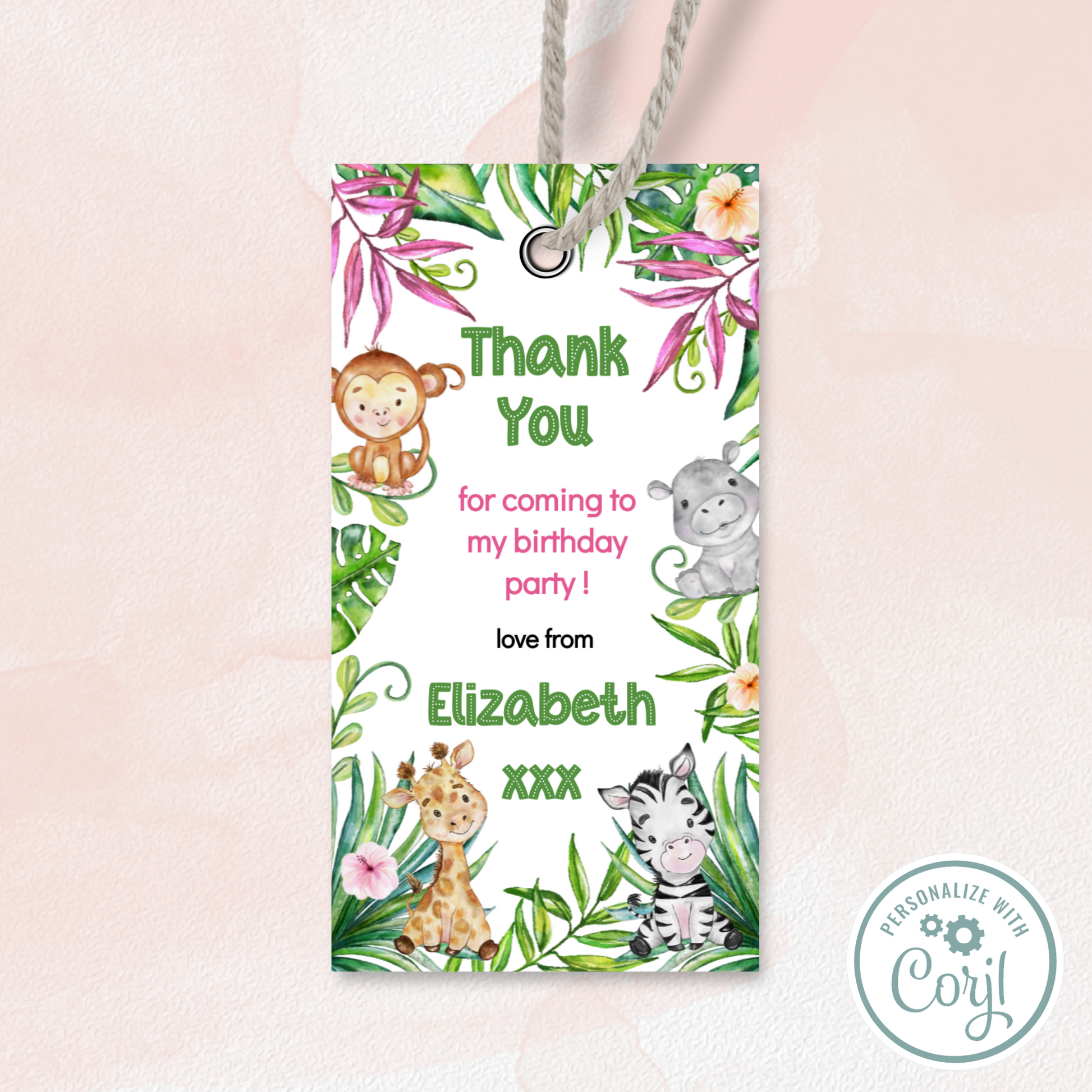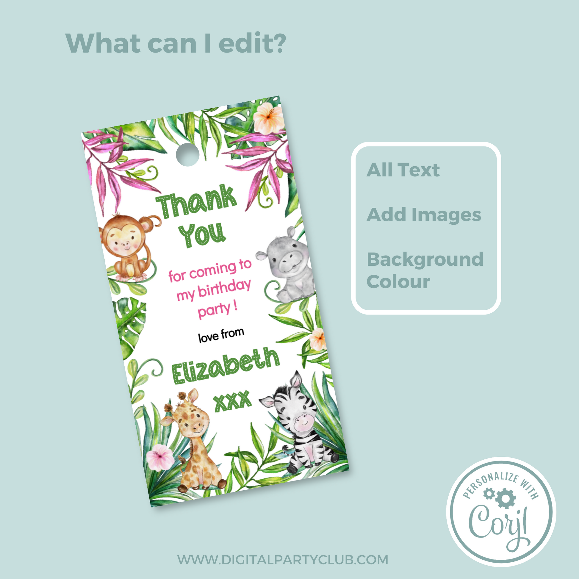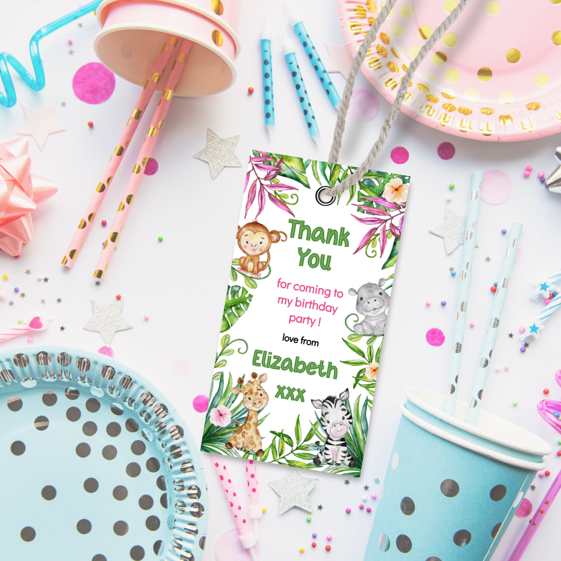Editable Birthday Thank You Tag - Let's Go Wild