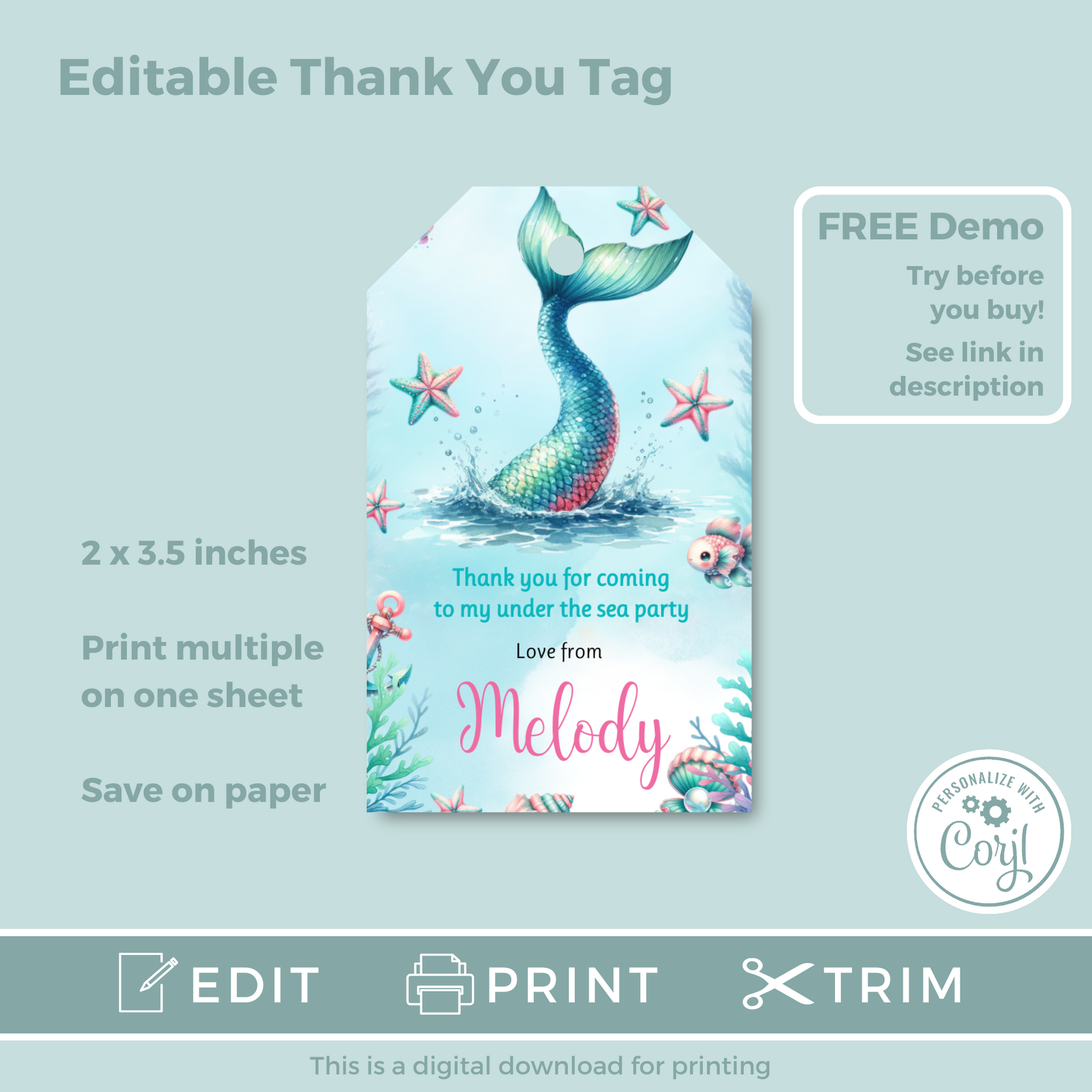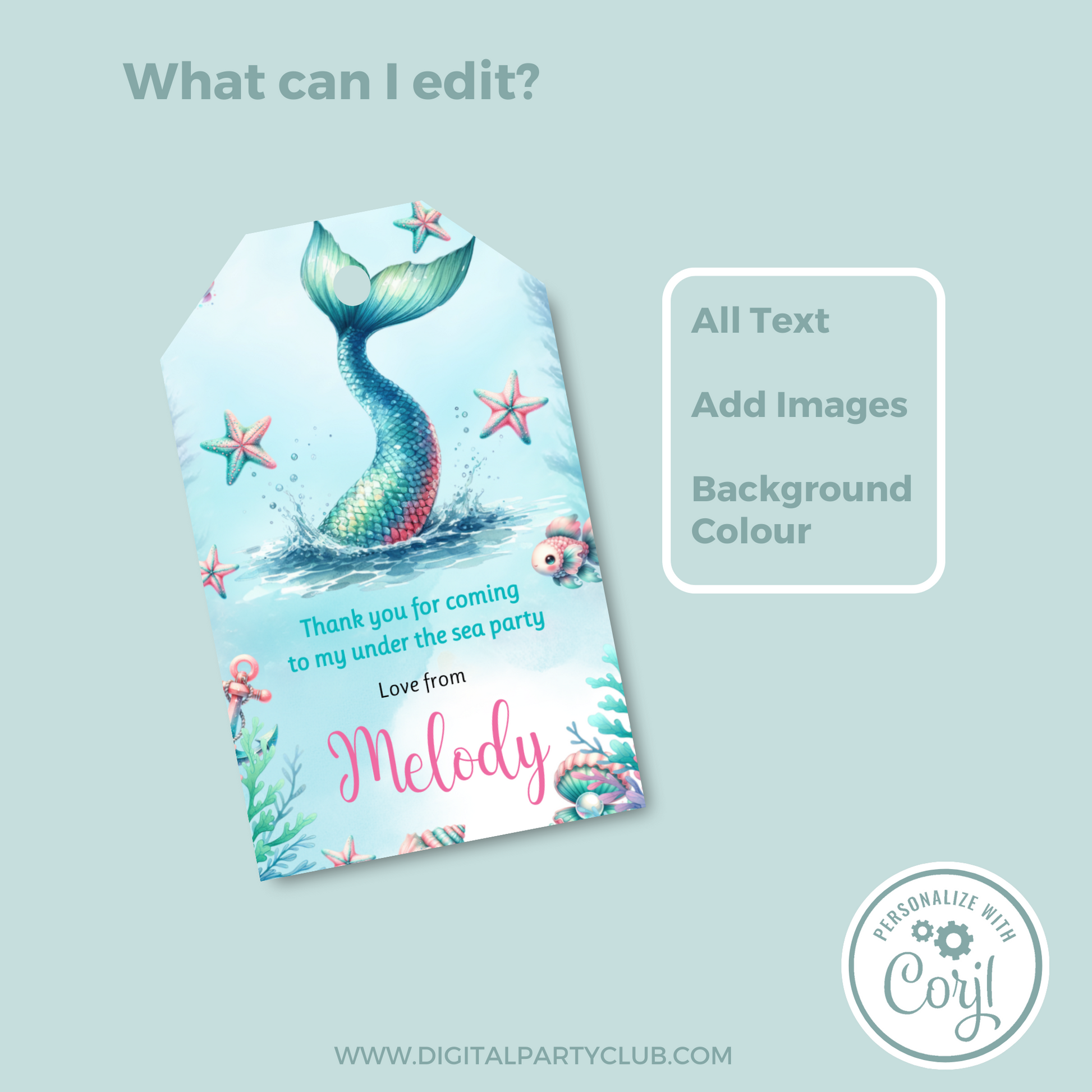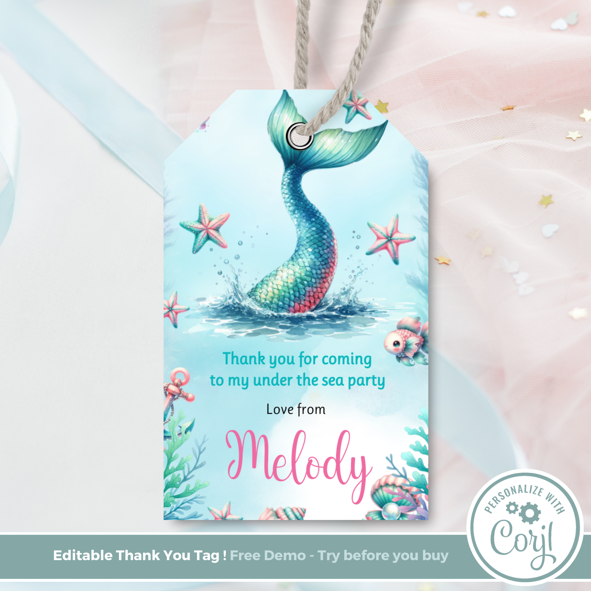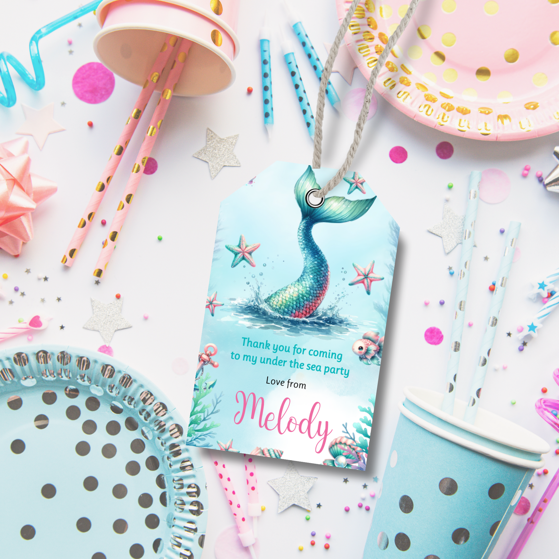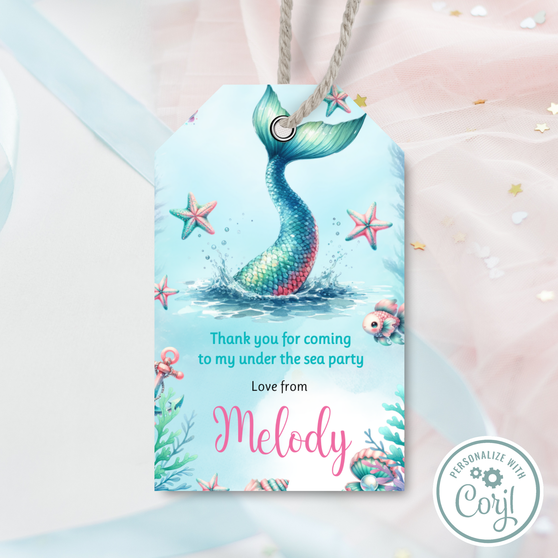 Editable Birthday Thank You Tag - Mermaid Tail