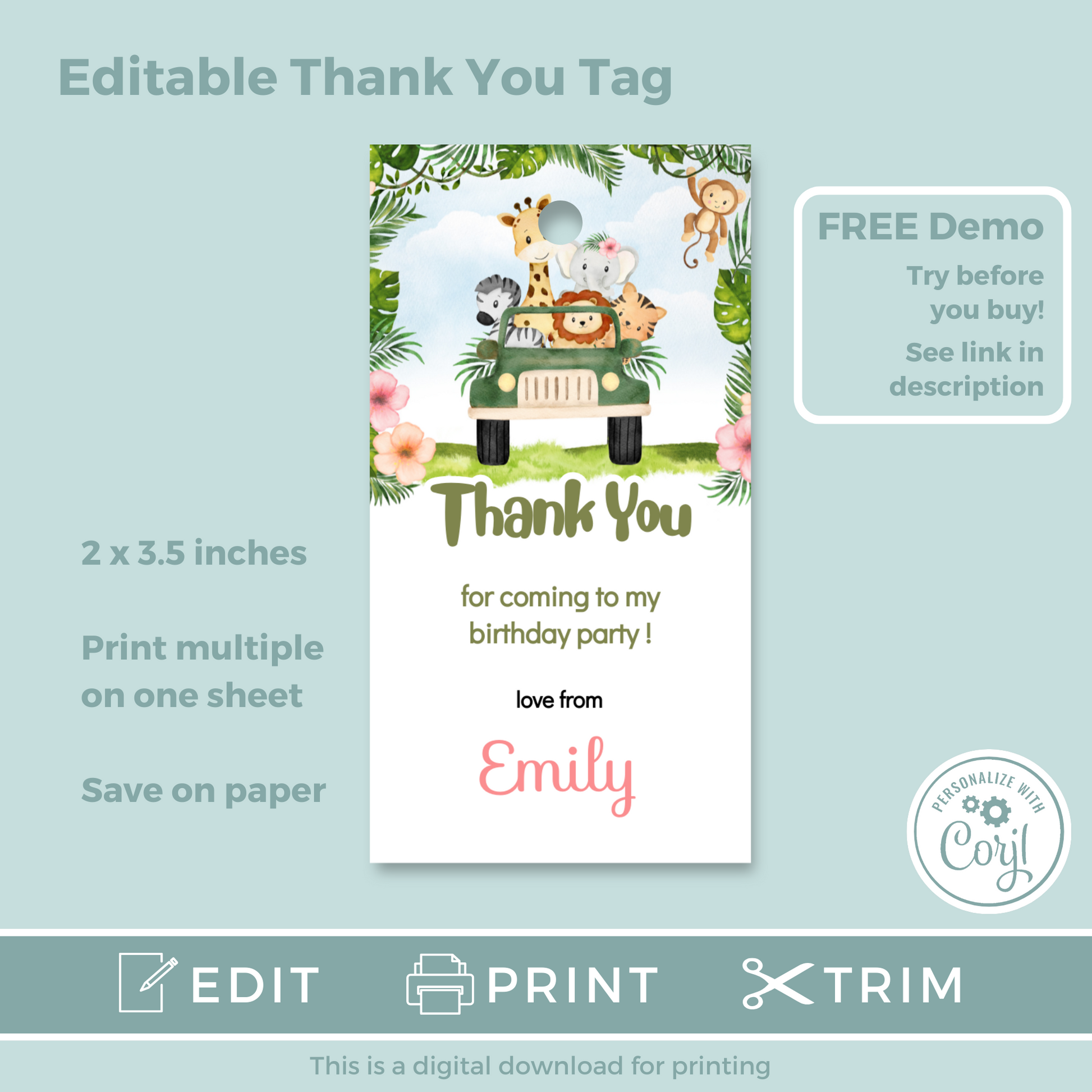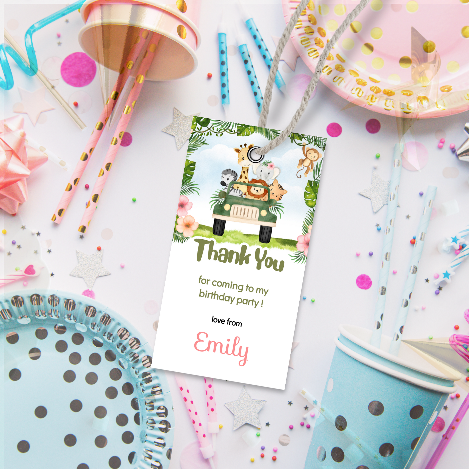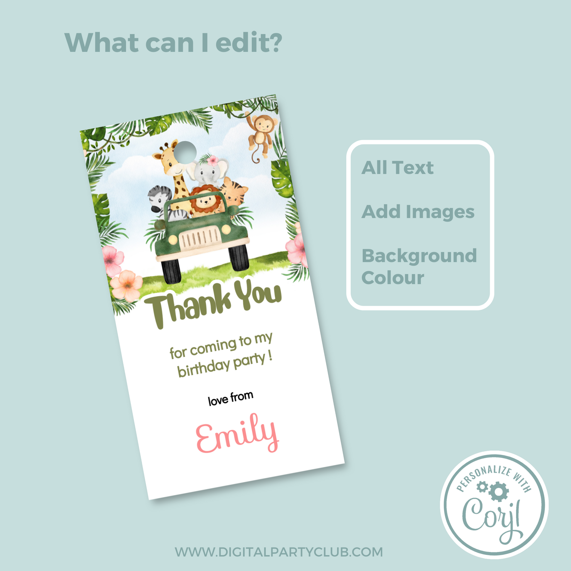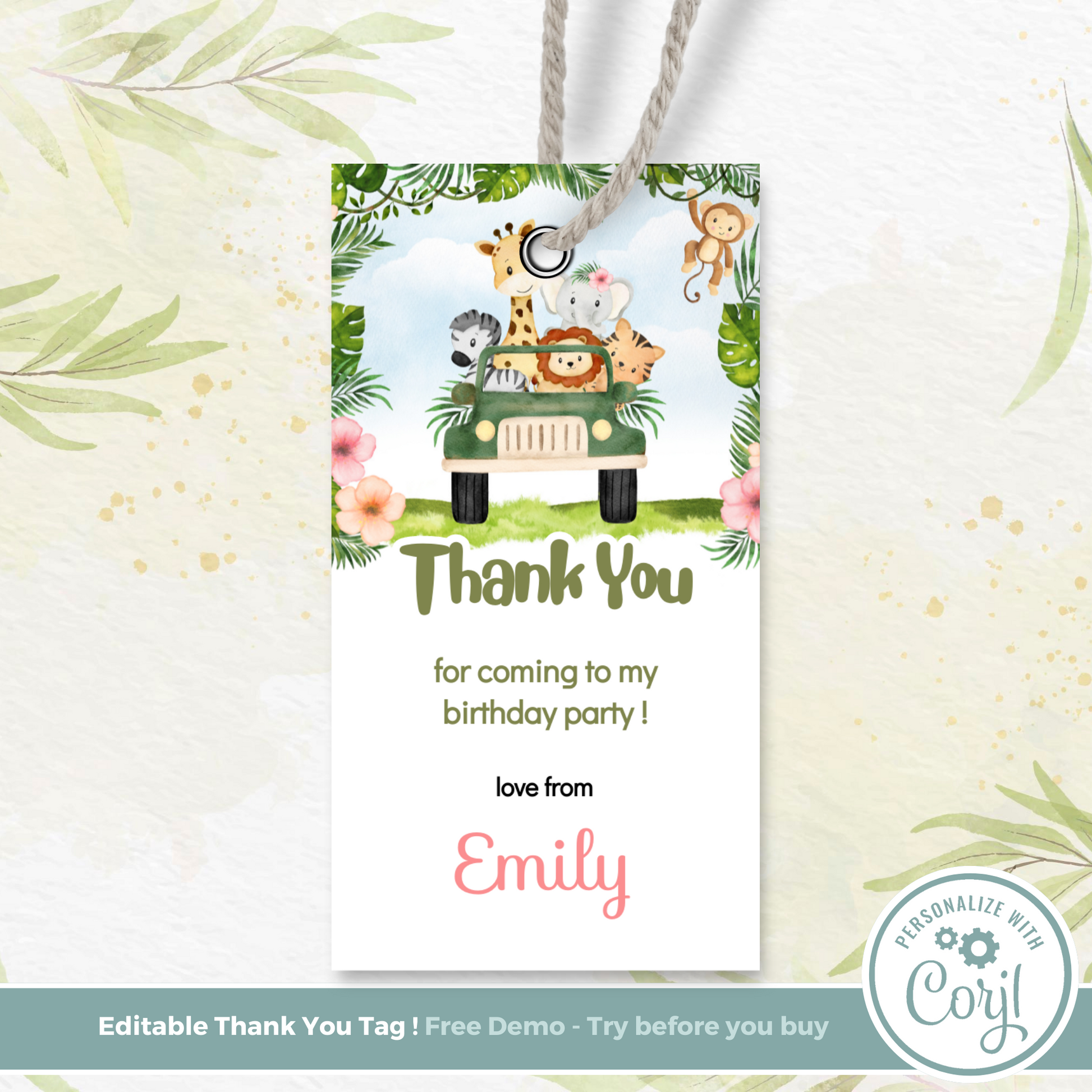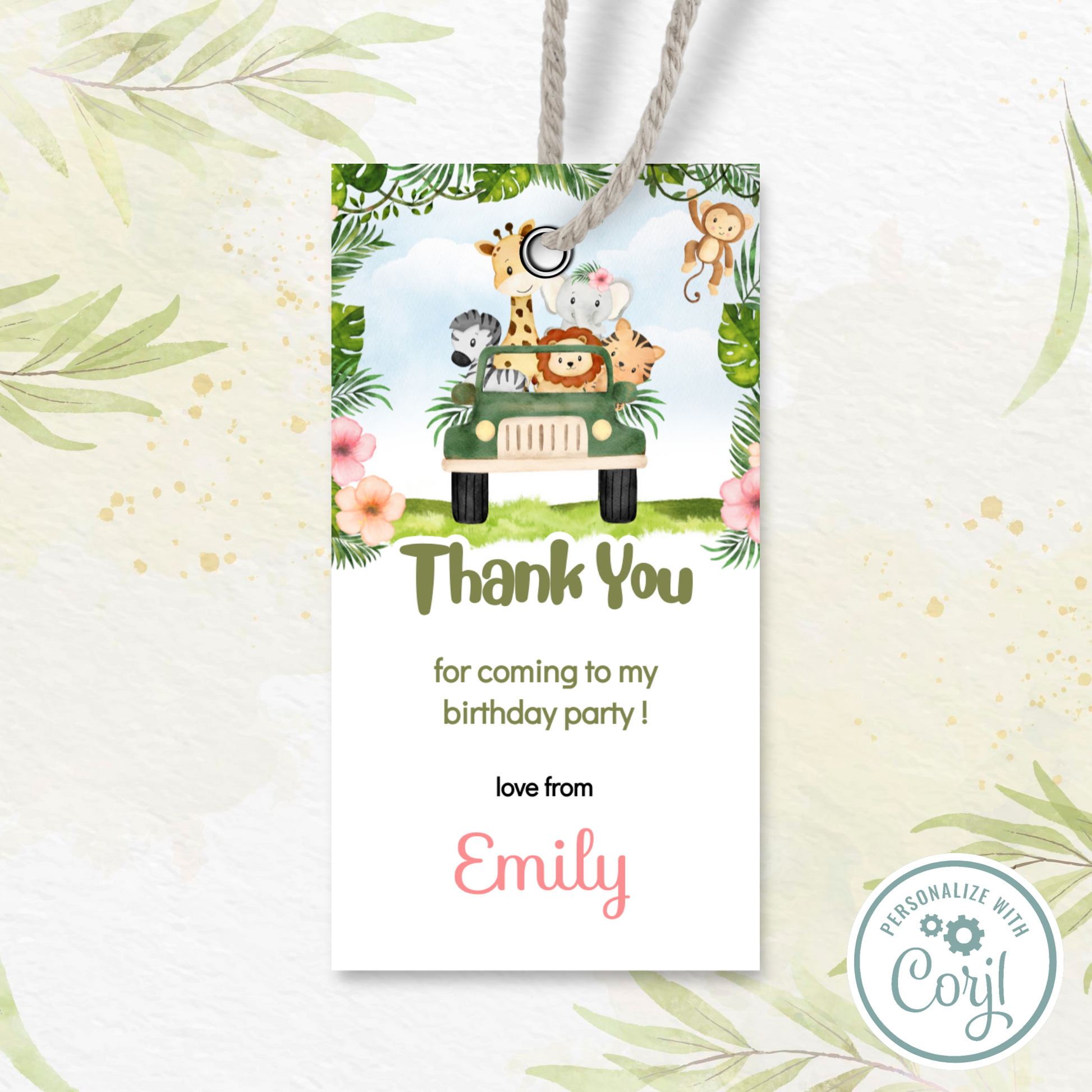 Editable Birthday Thank You Tag - Safari