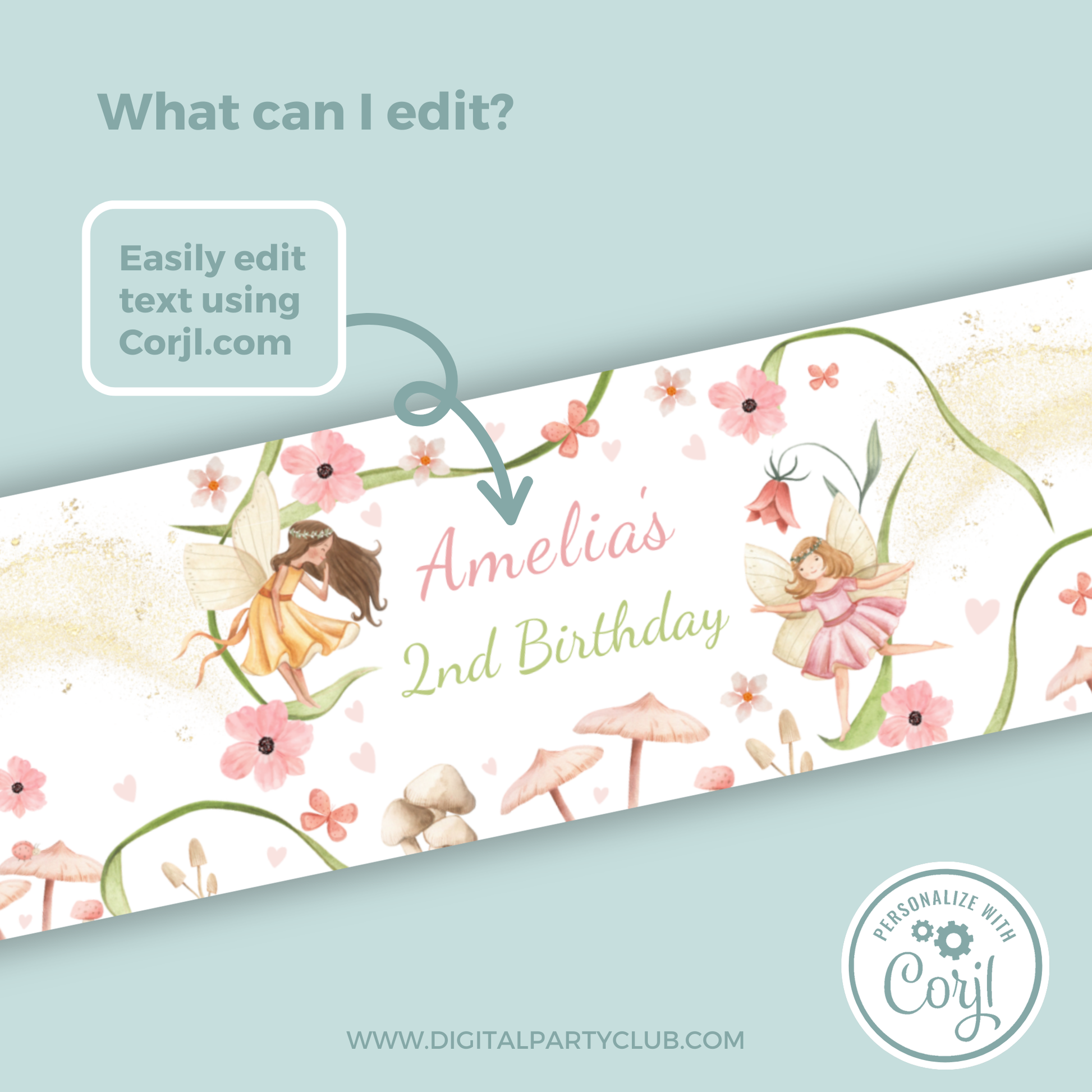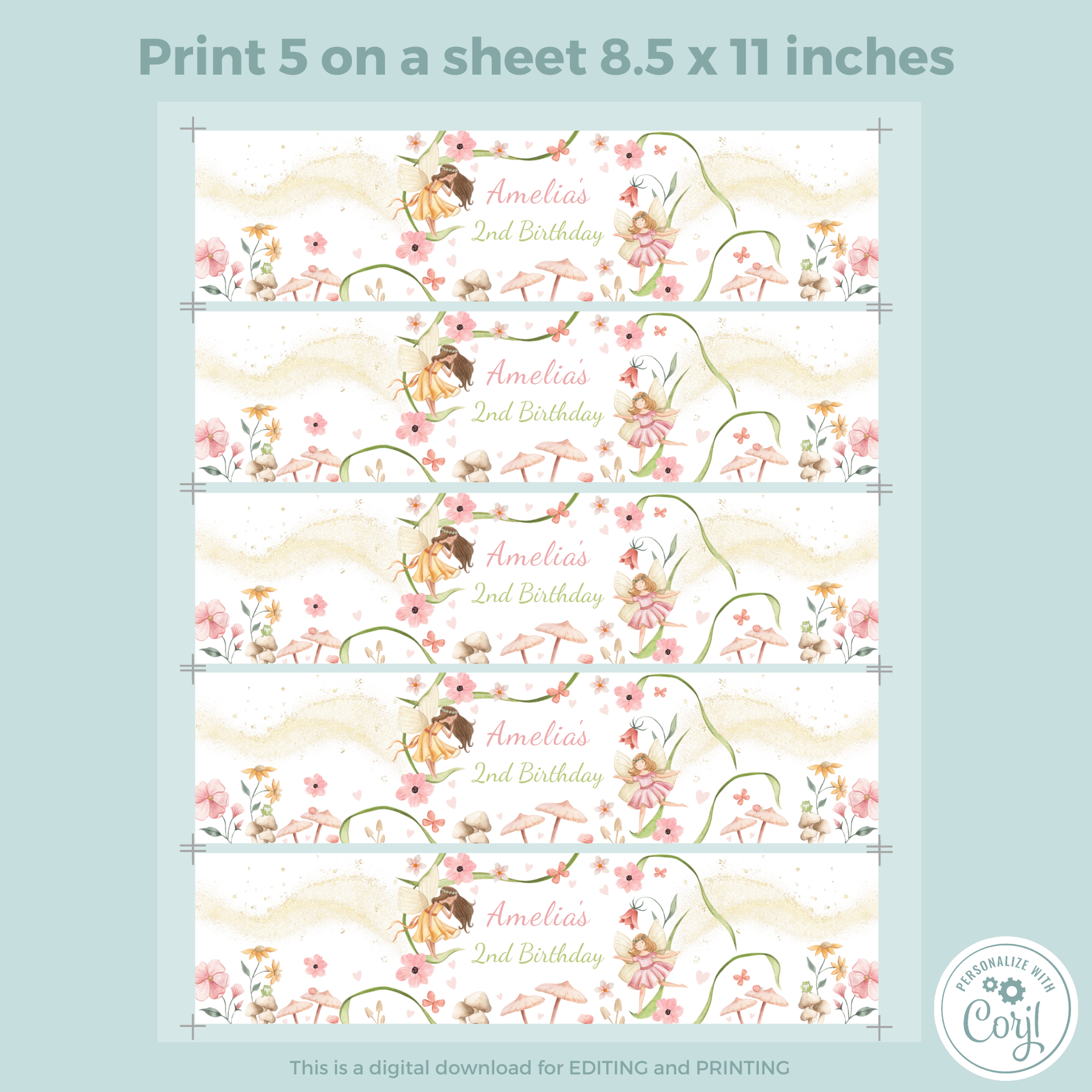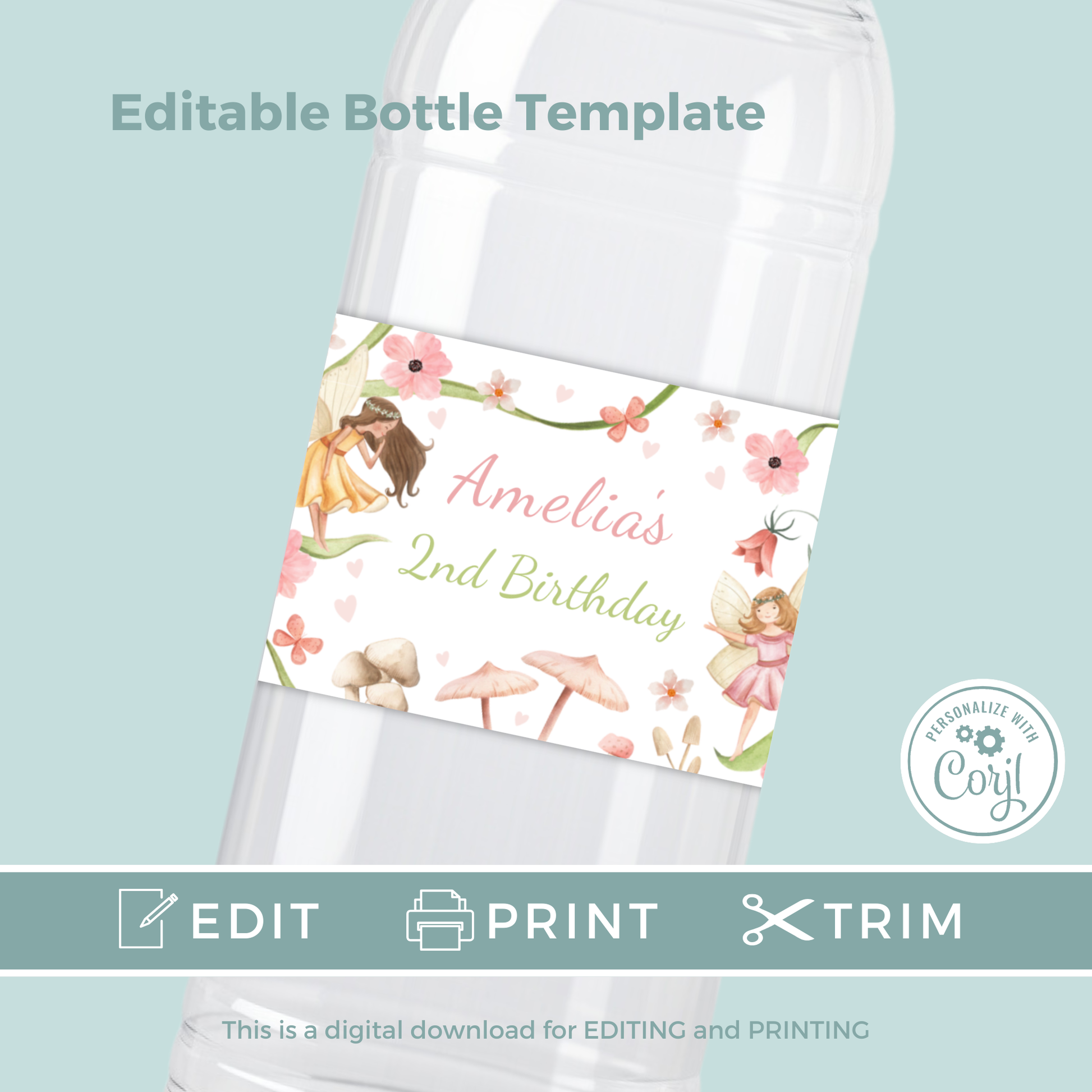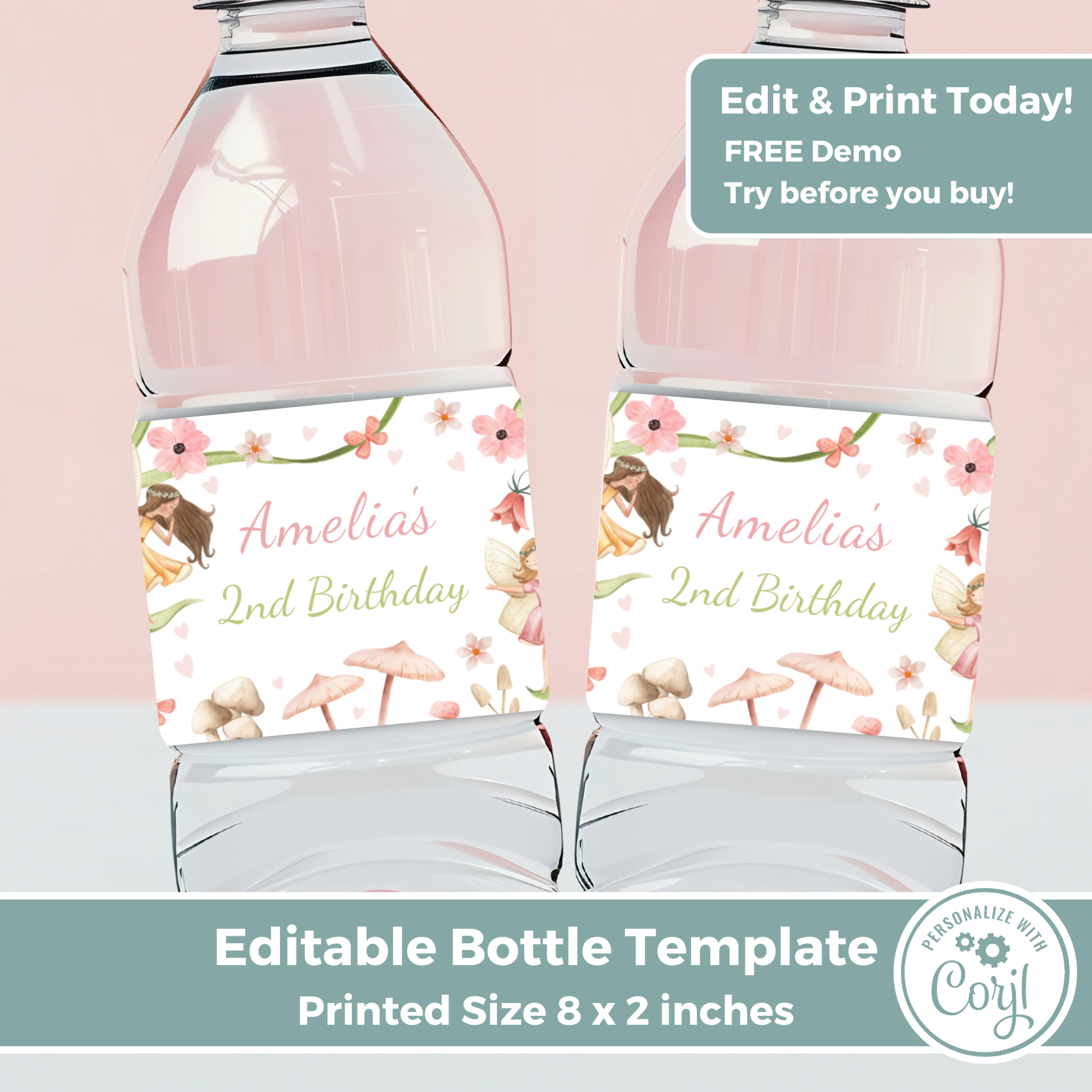 Editable Birthday Water Bottle Label - Fairy