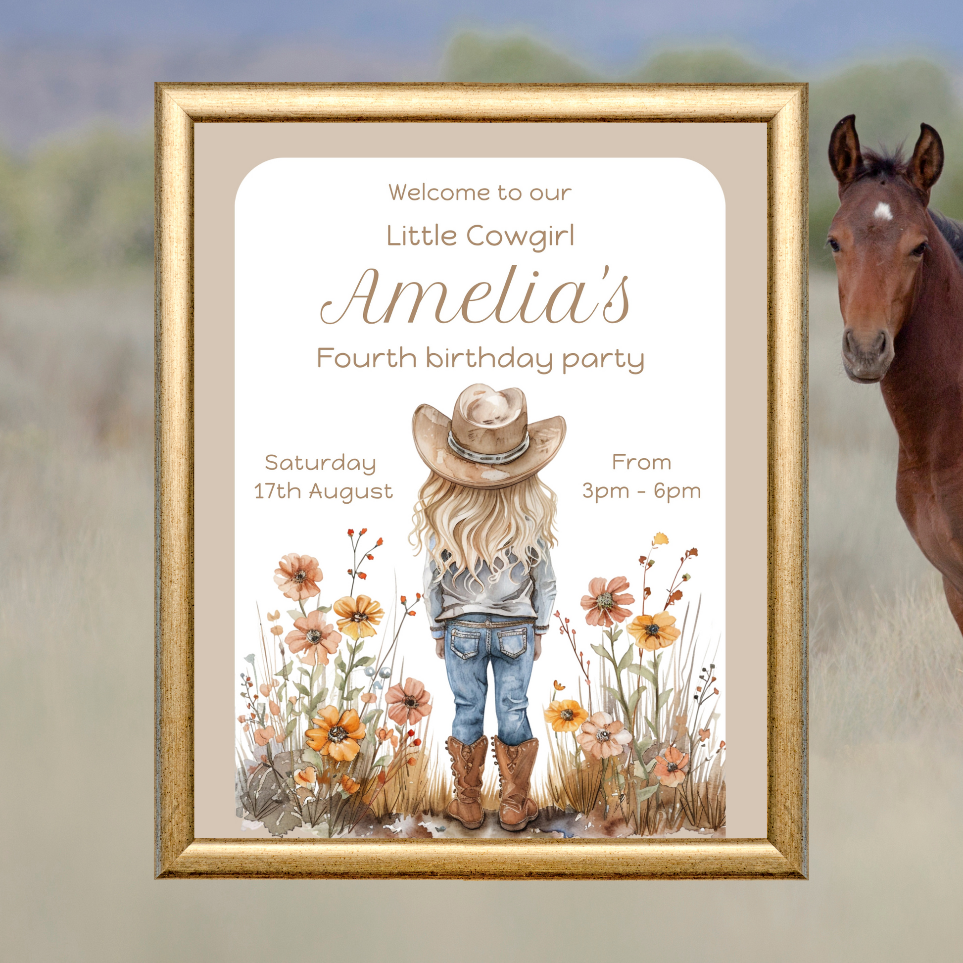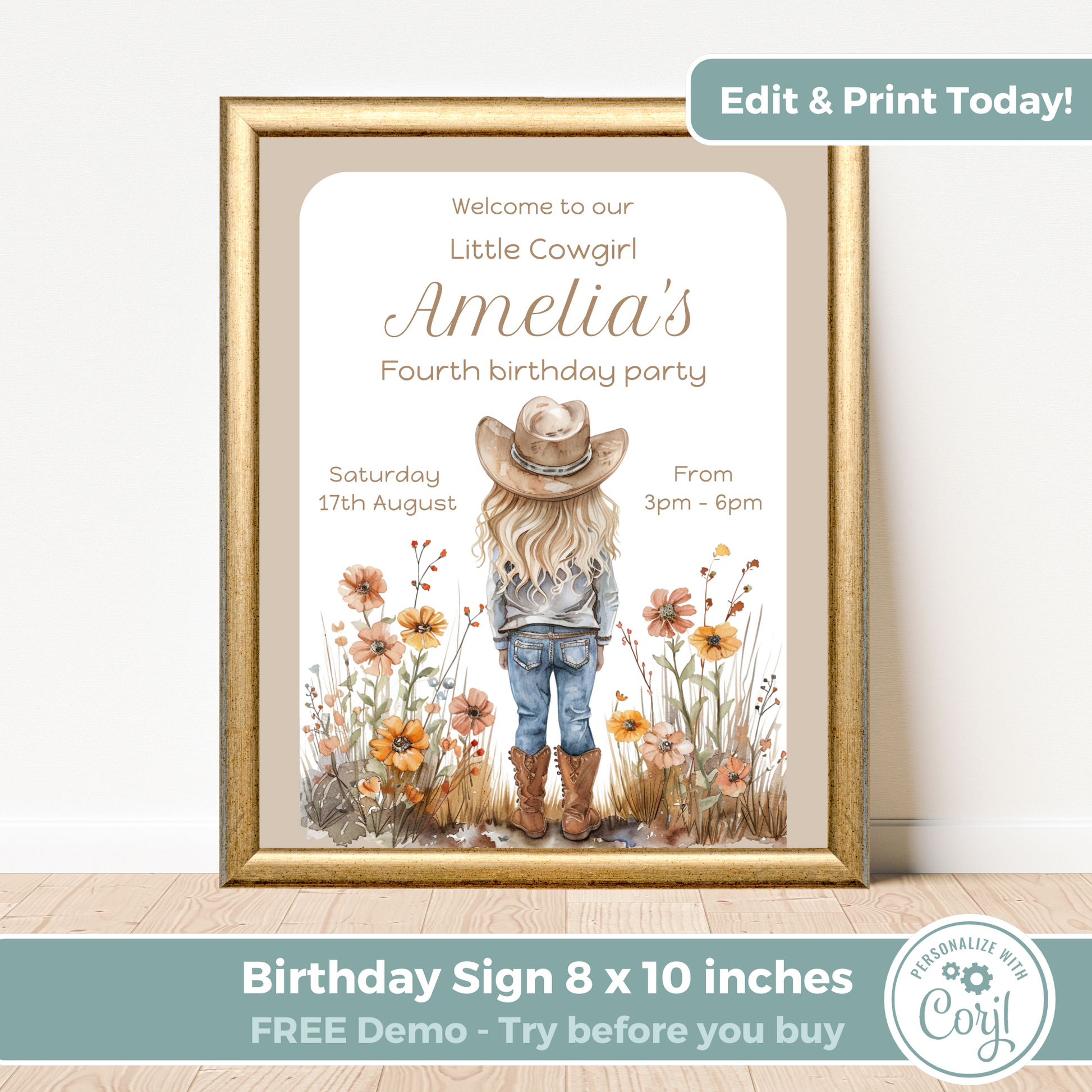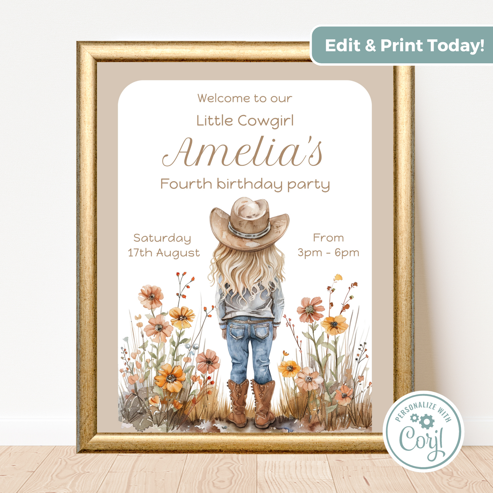 Editable Birthday Welcome Sign - Cowgirl Beige