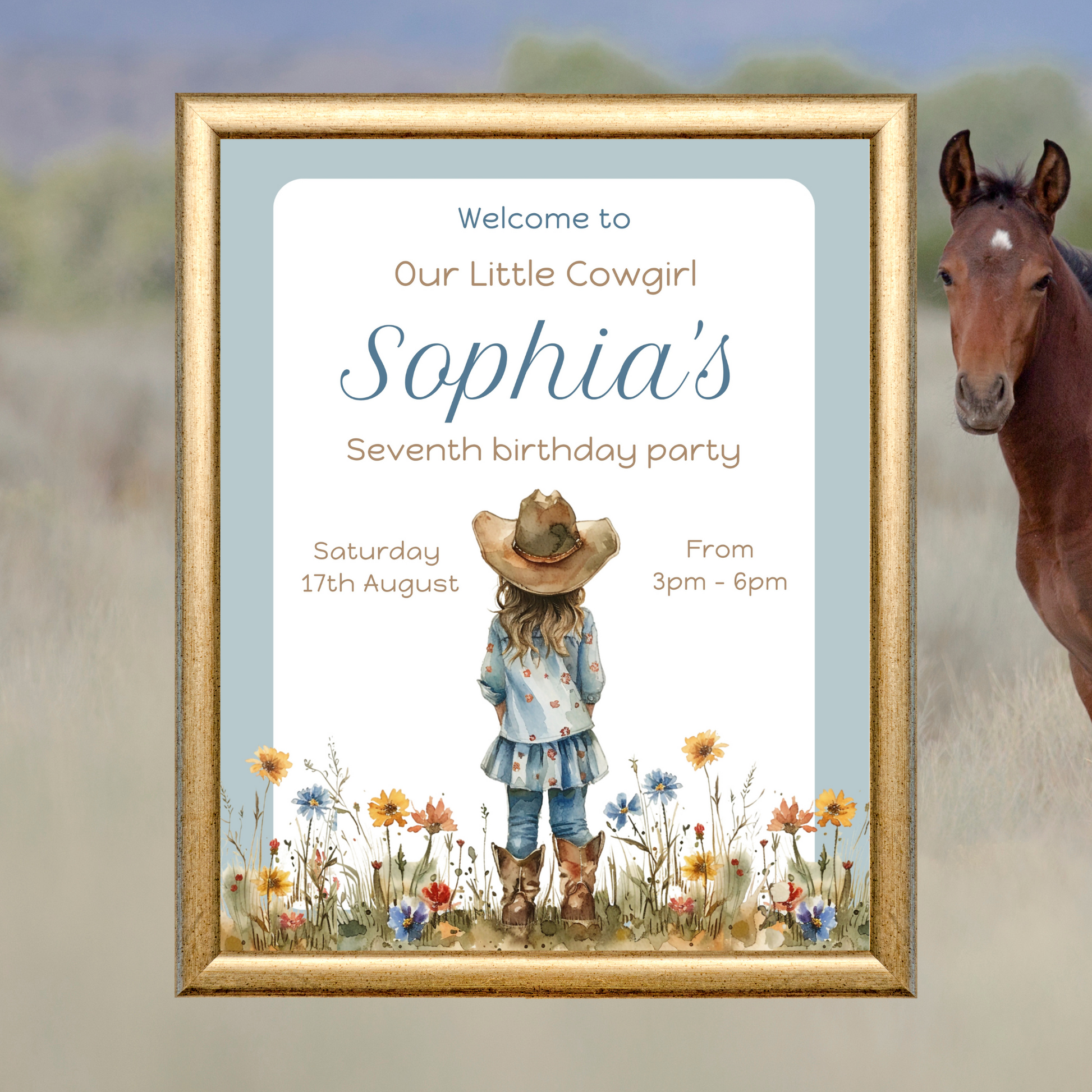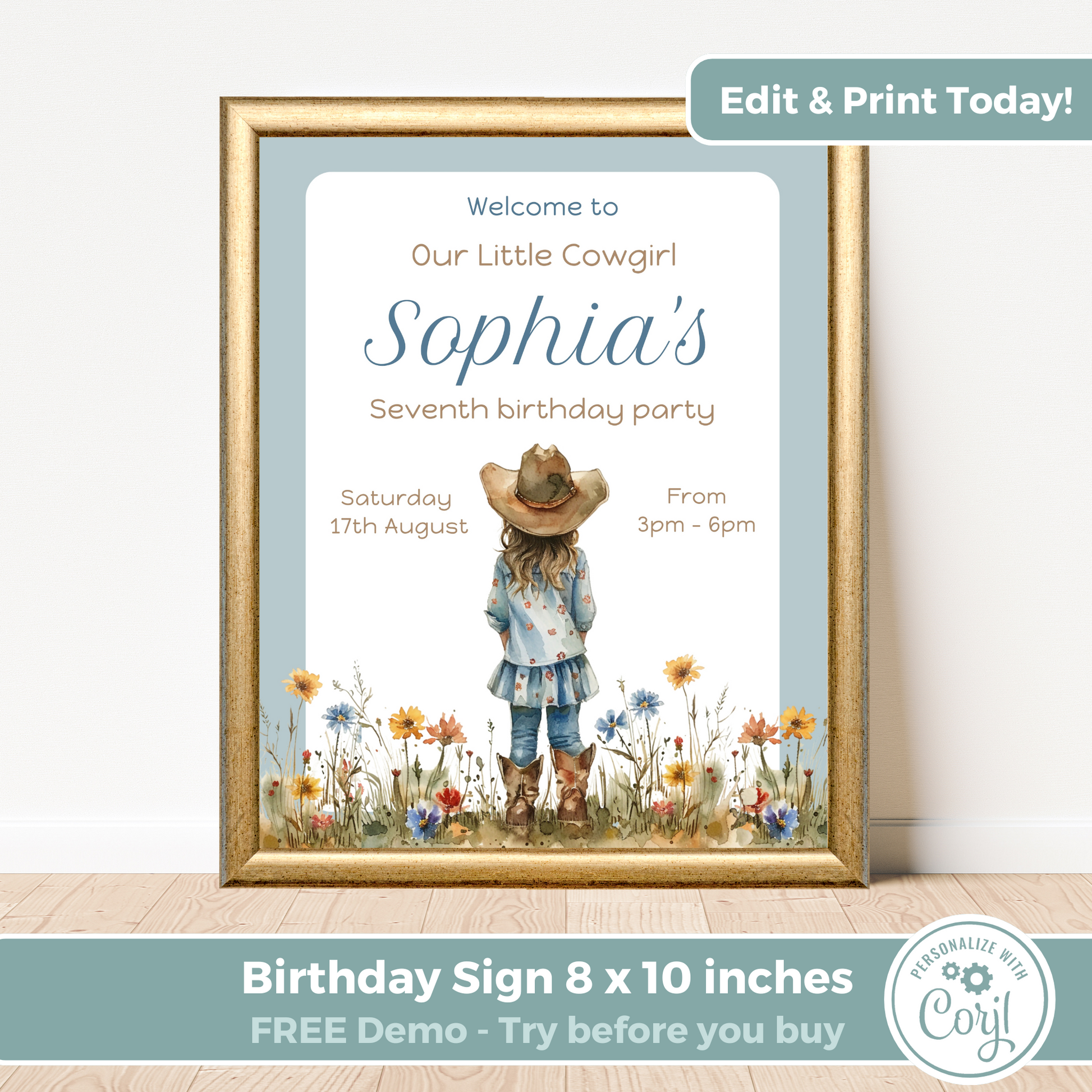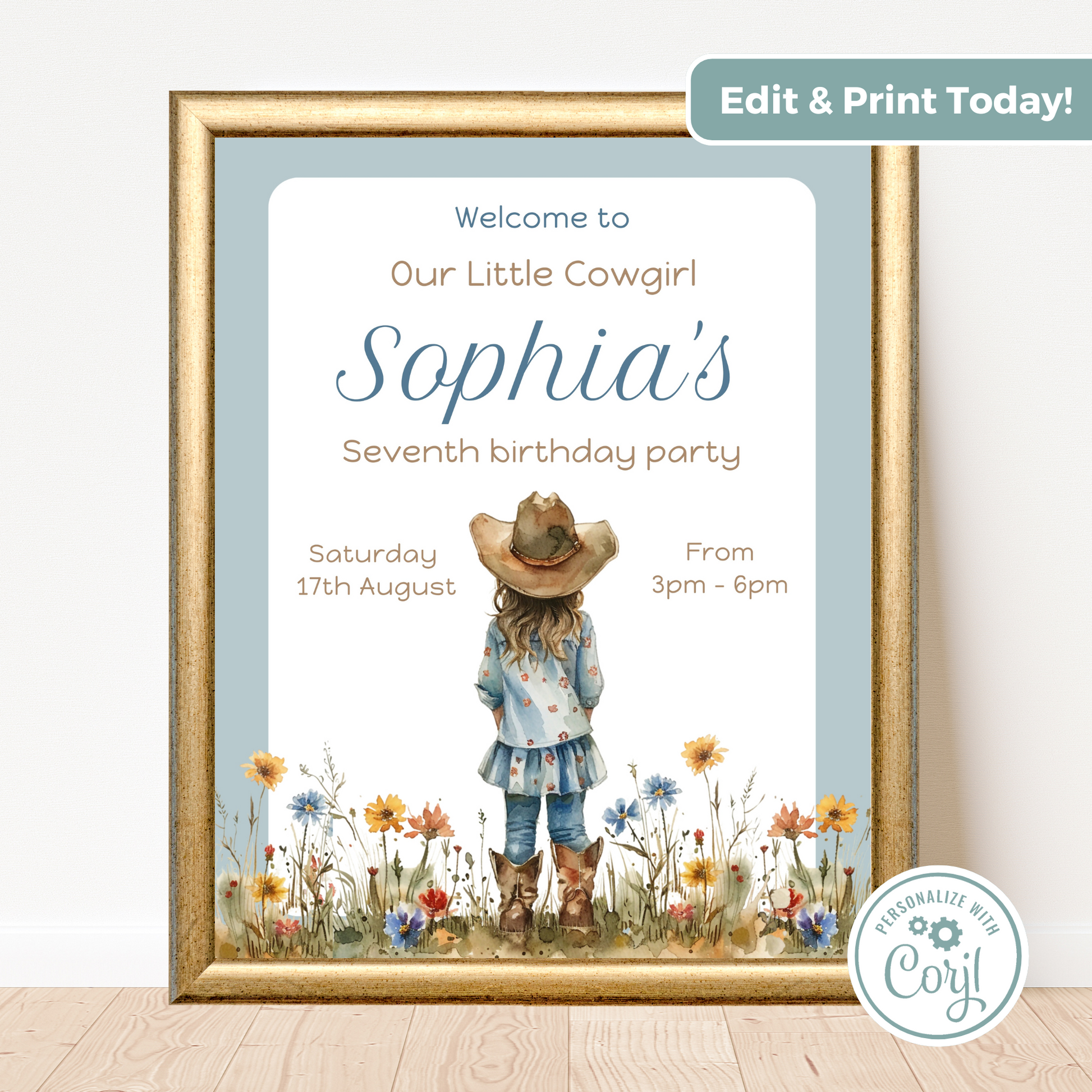 Editable Birthday Welcome Sign - Cowgirl Blue