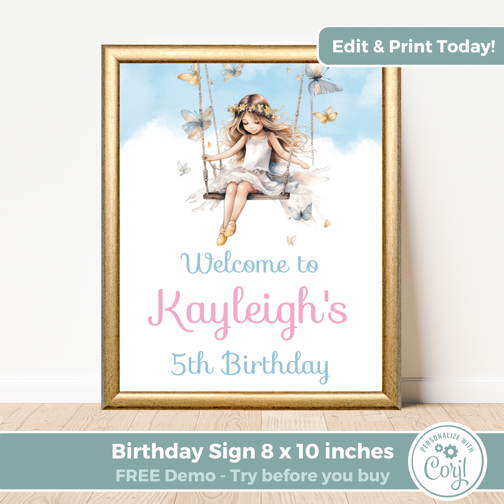 Editable Birthday Welcome Sign - Fairy Princess