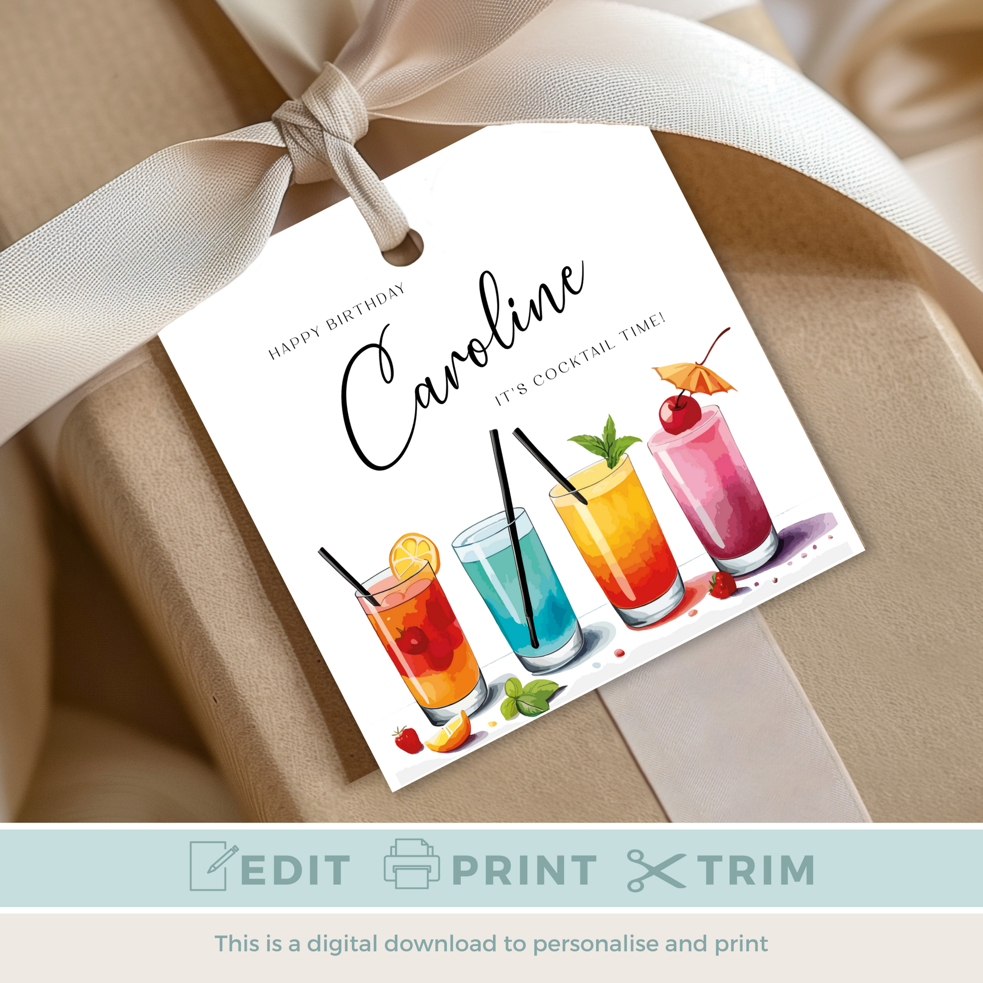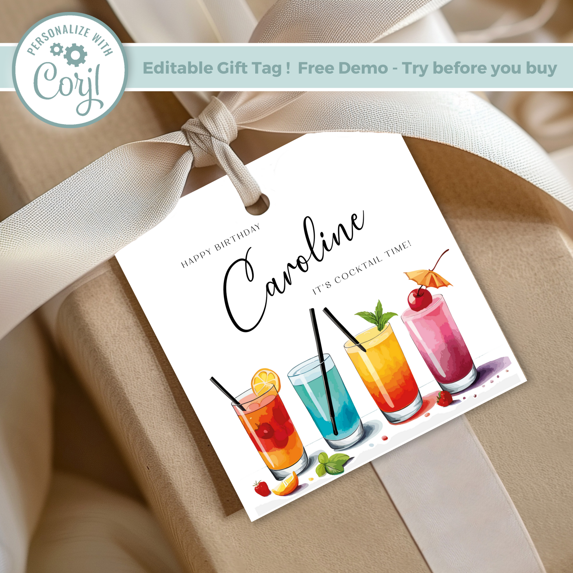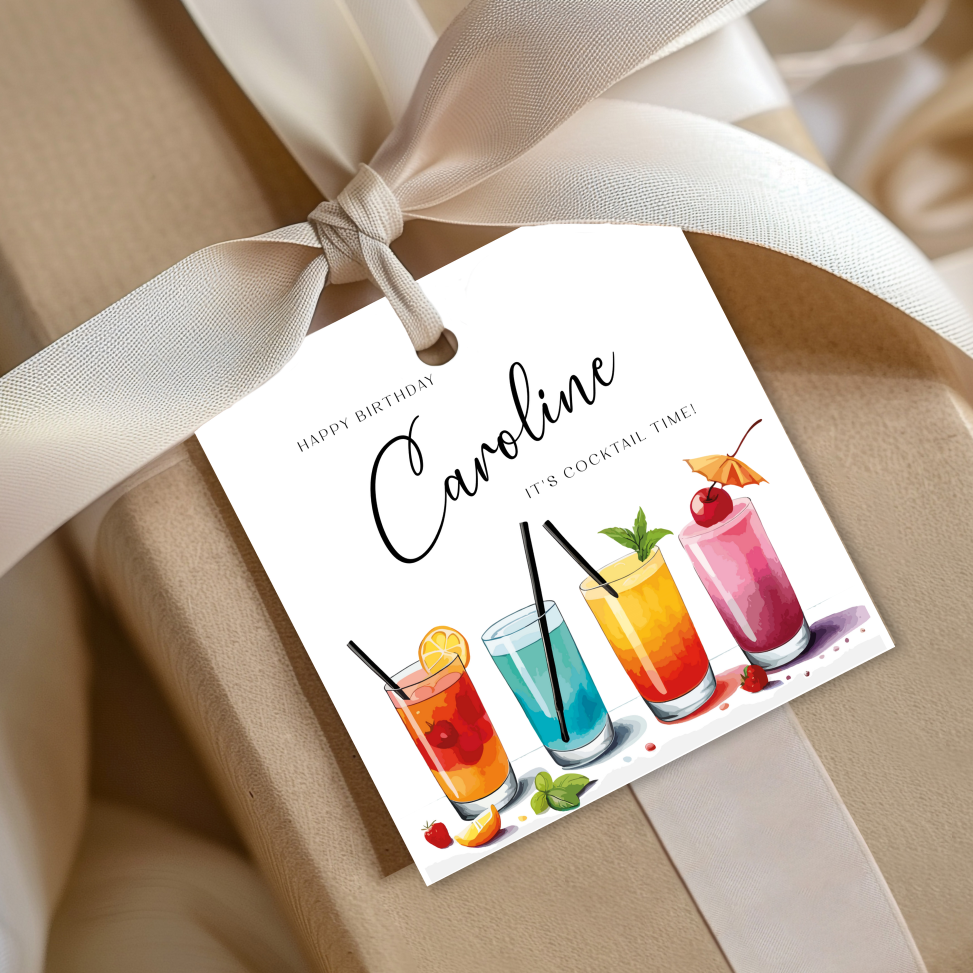 Editable Cocktail Party Birthday Gift Tag