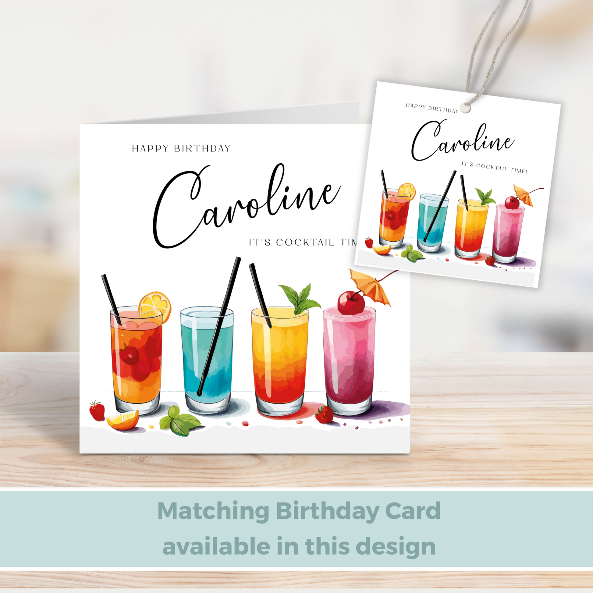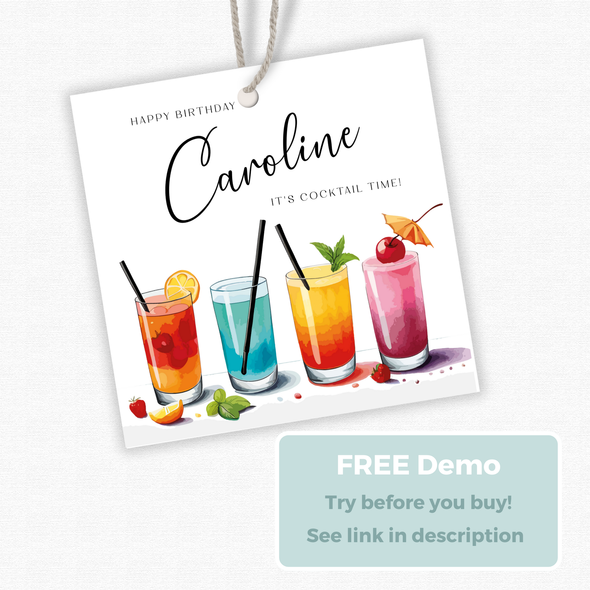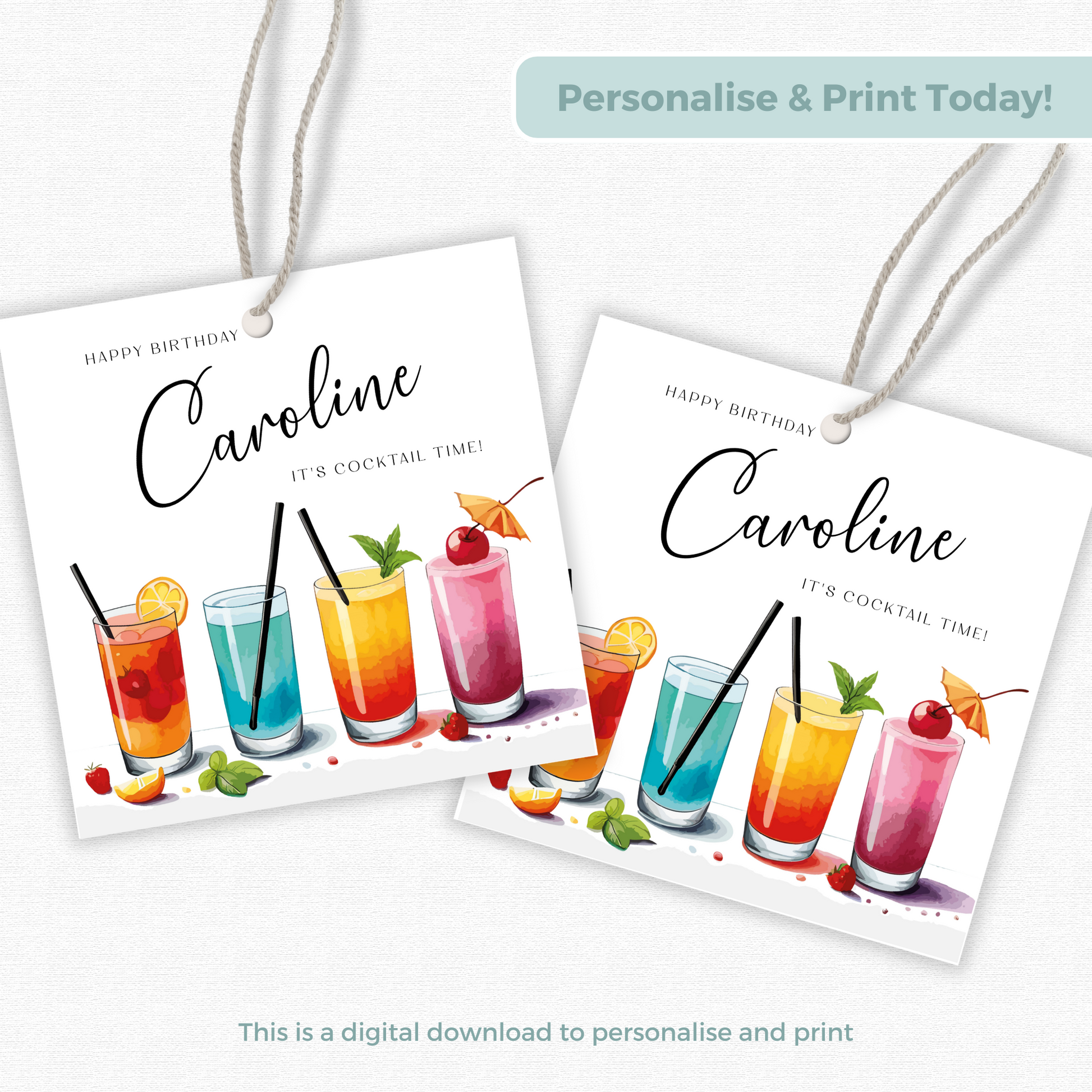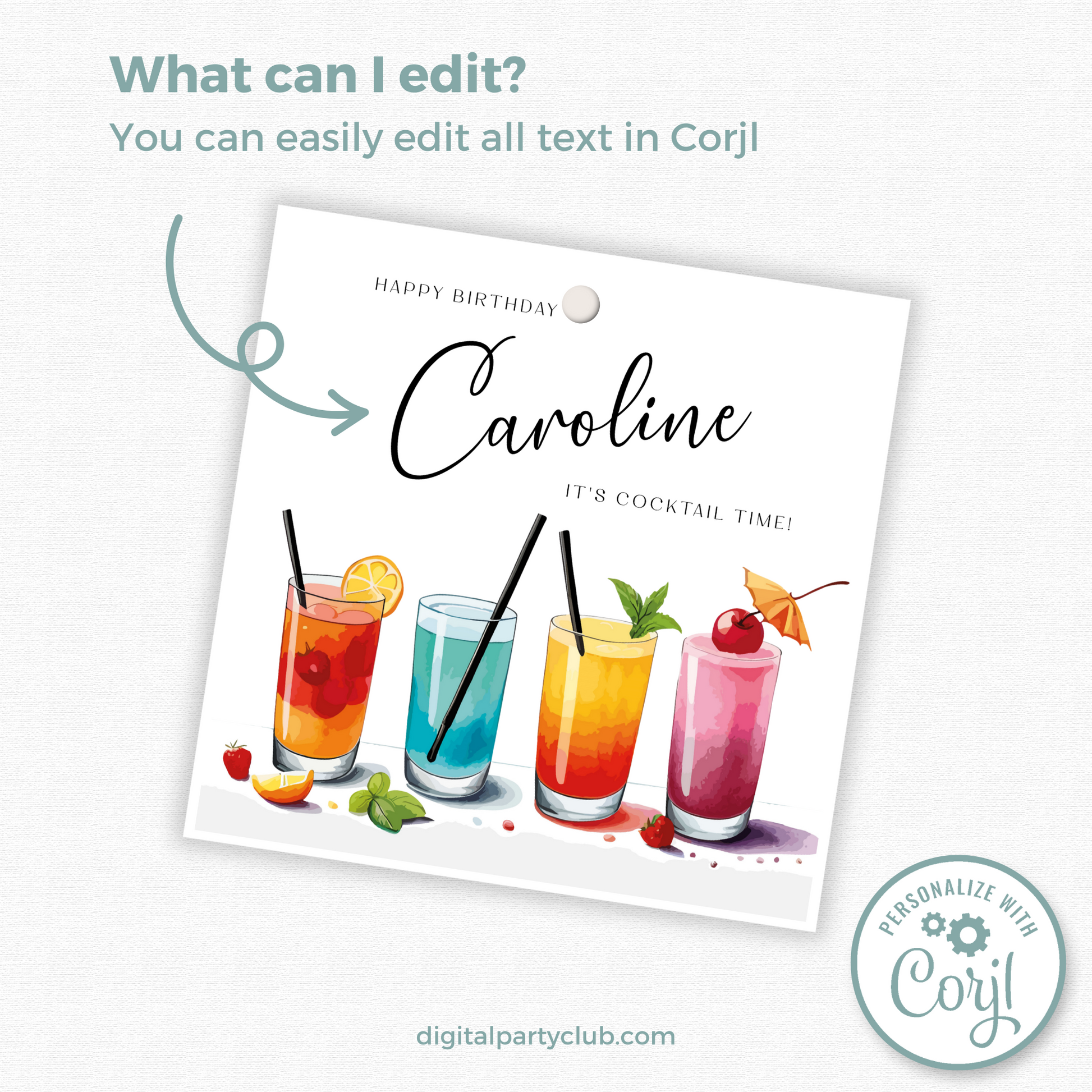 Editable Cocktail Party Birthday Gift Tag