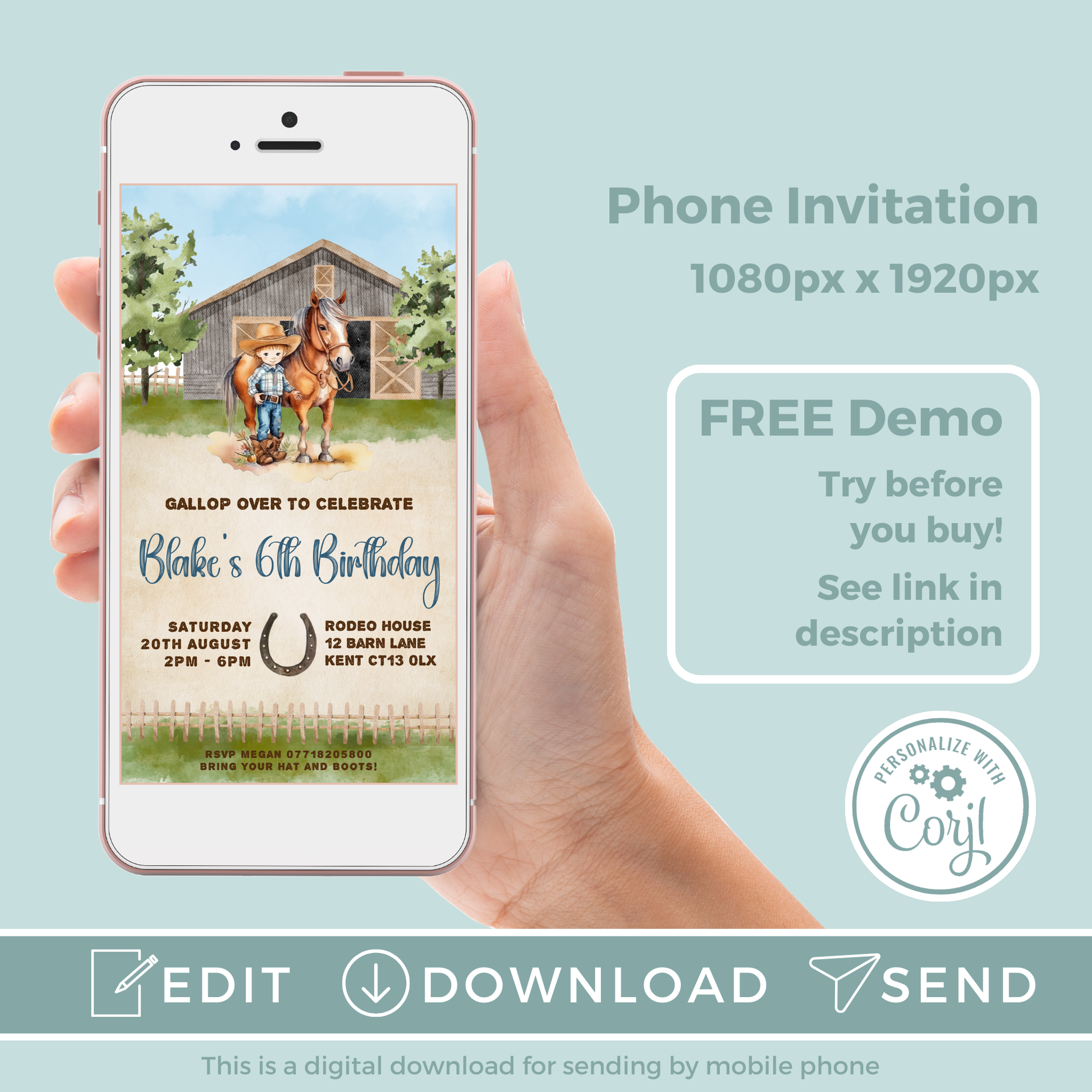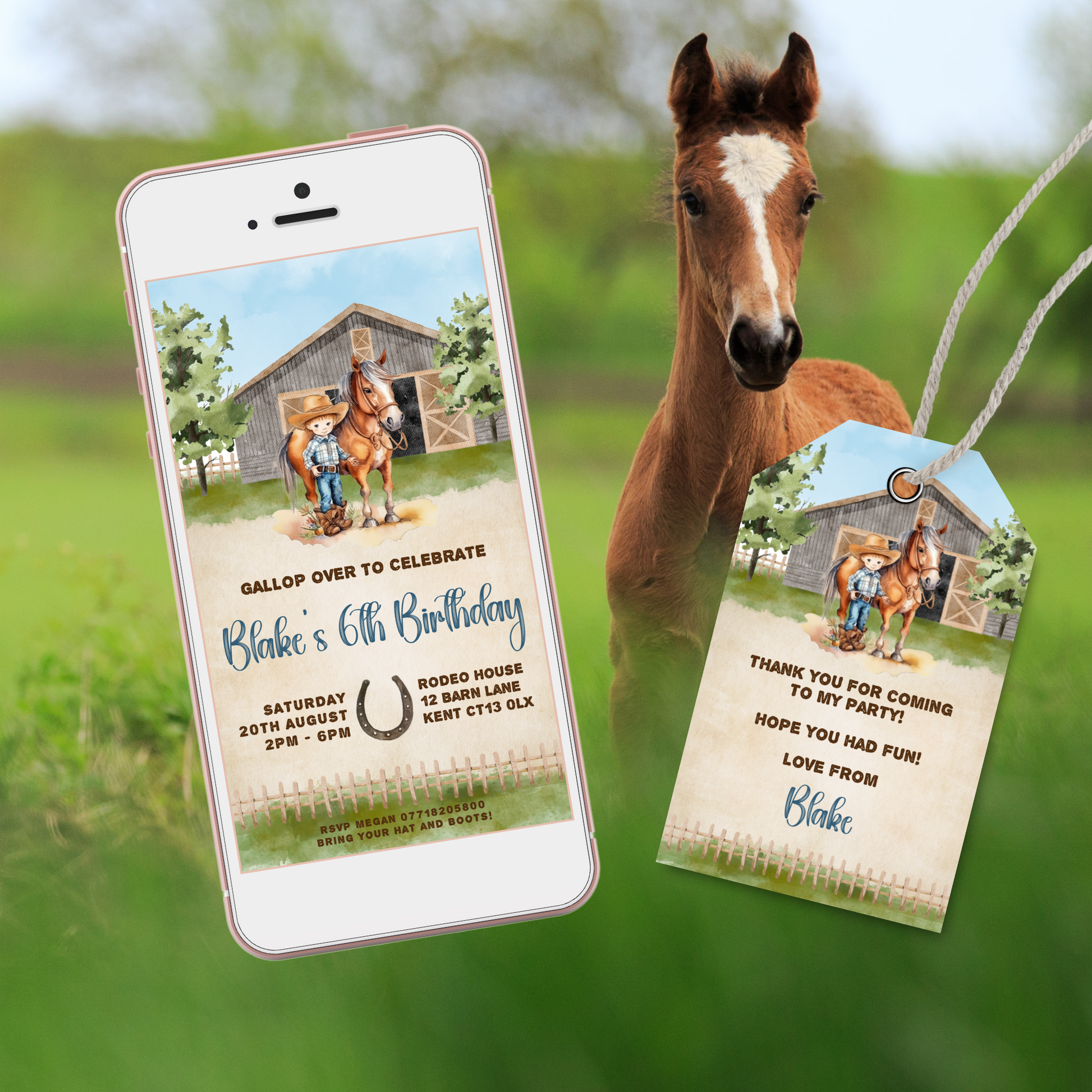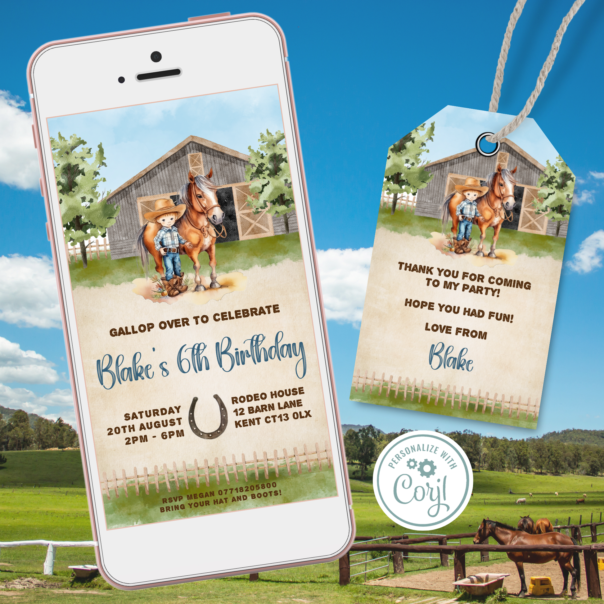 Editable Evite Birthday Invitation and FREE Thank You Tag - Cowboy