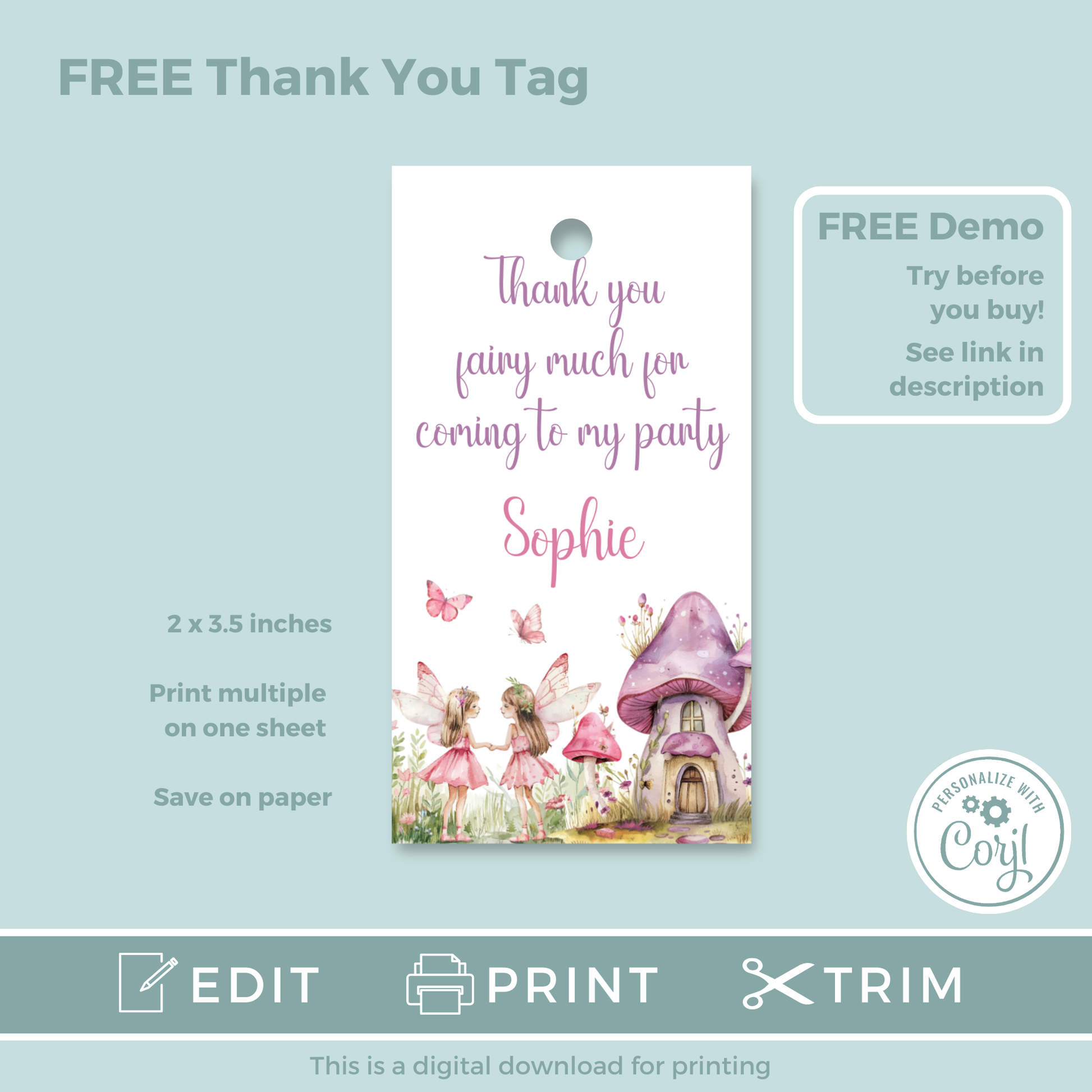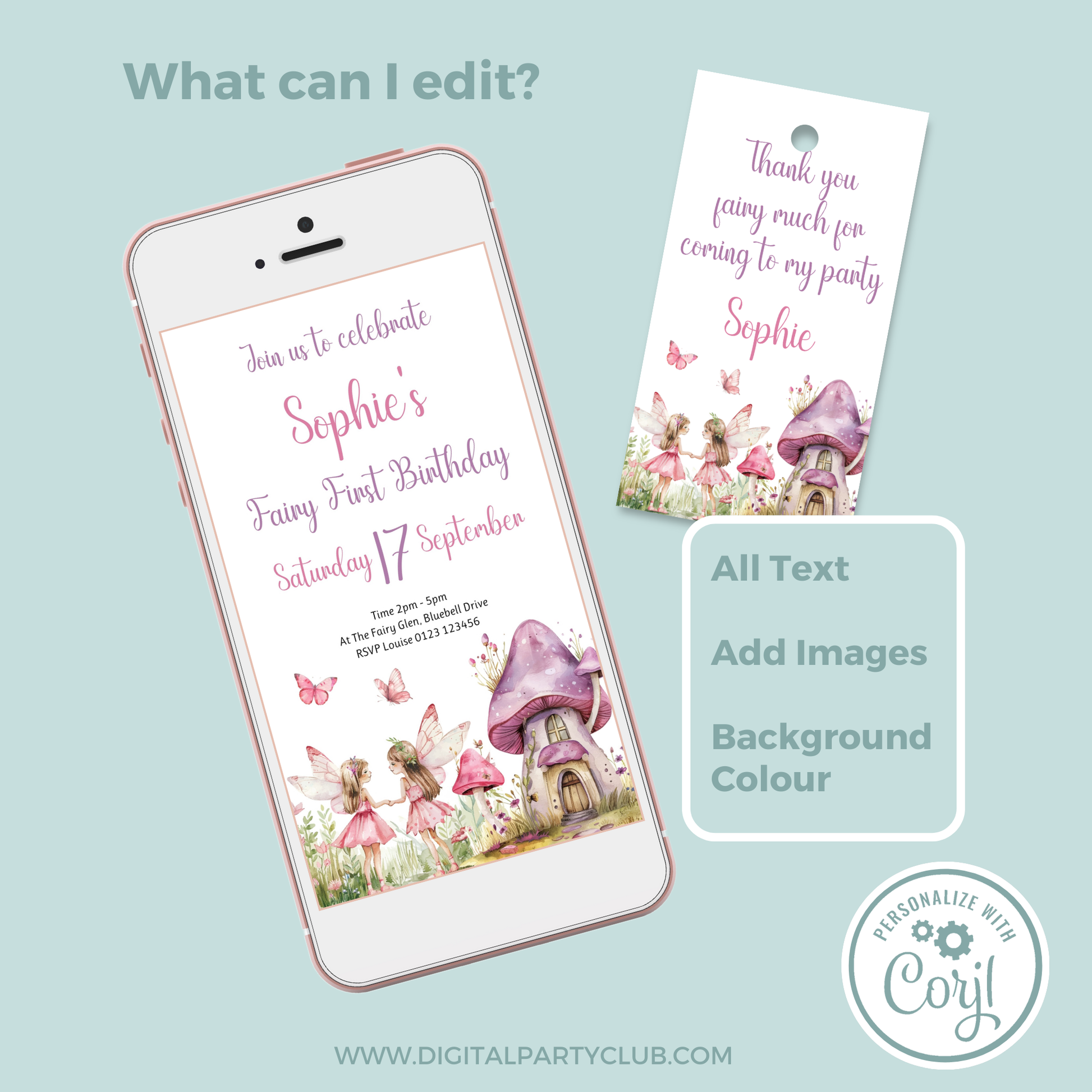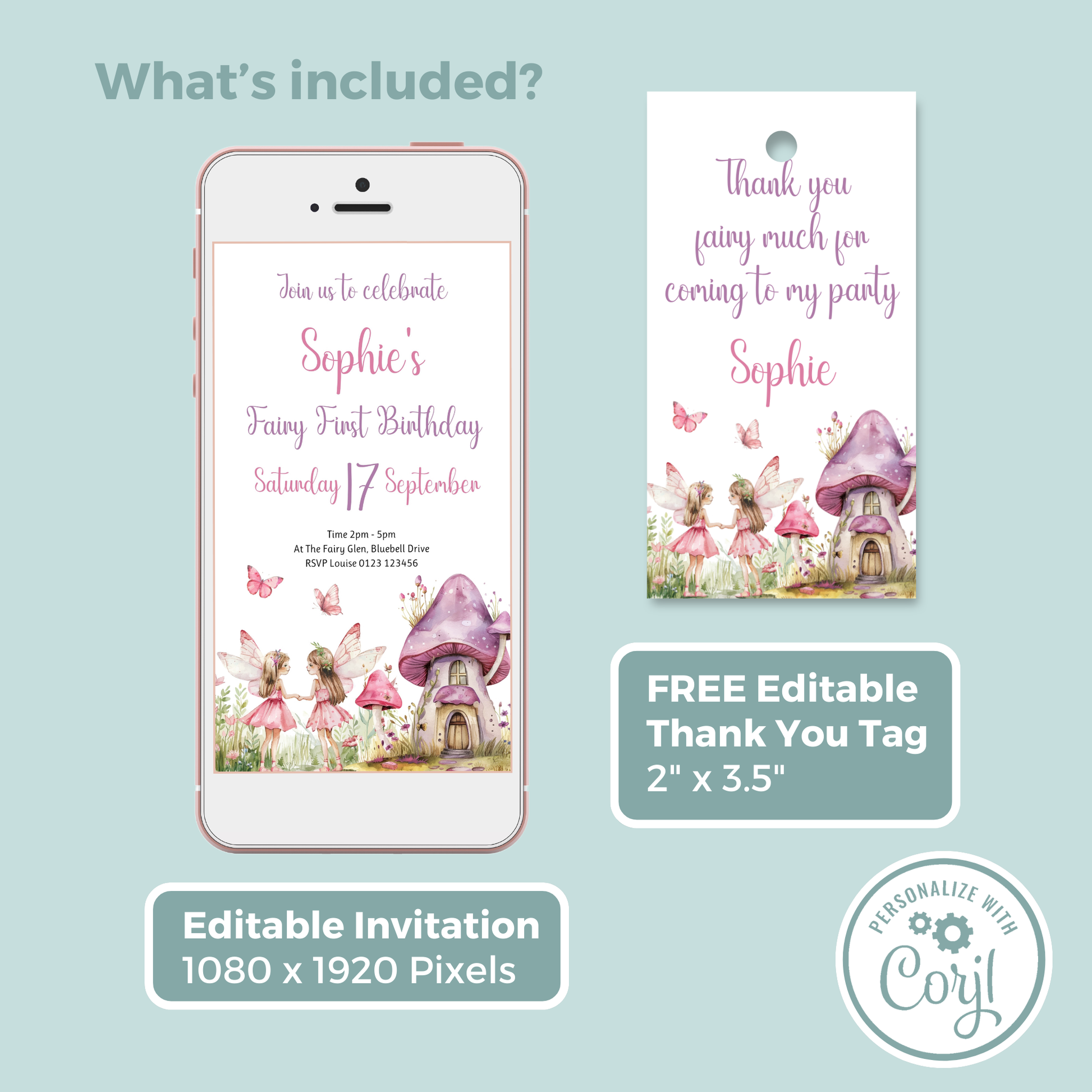 Editable Evite Birthday Invitation and FREE Thank You Tag - Fairy First