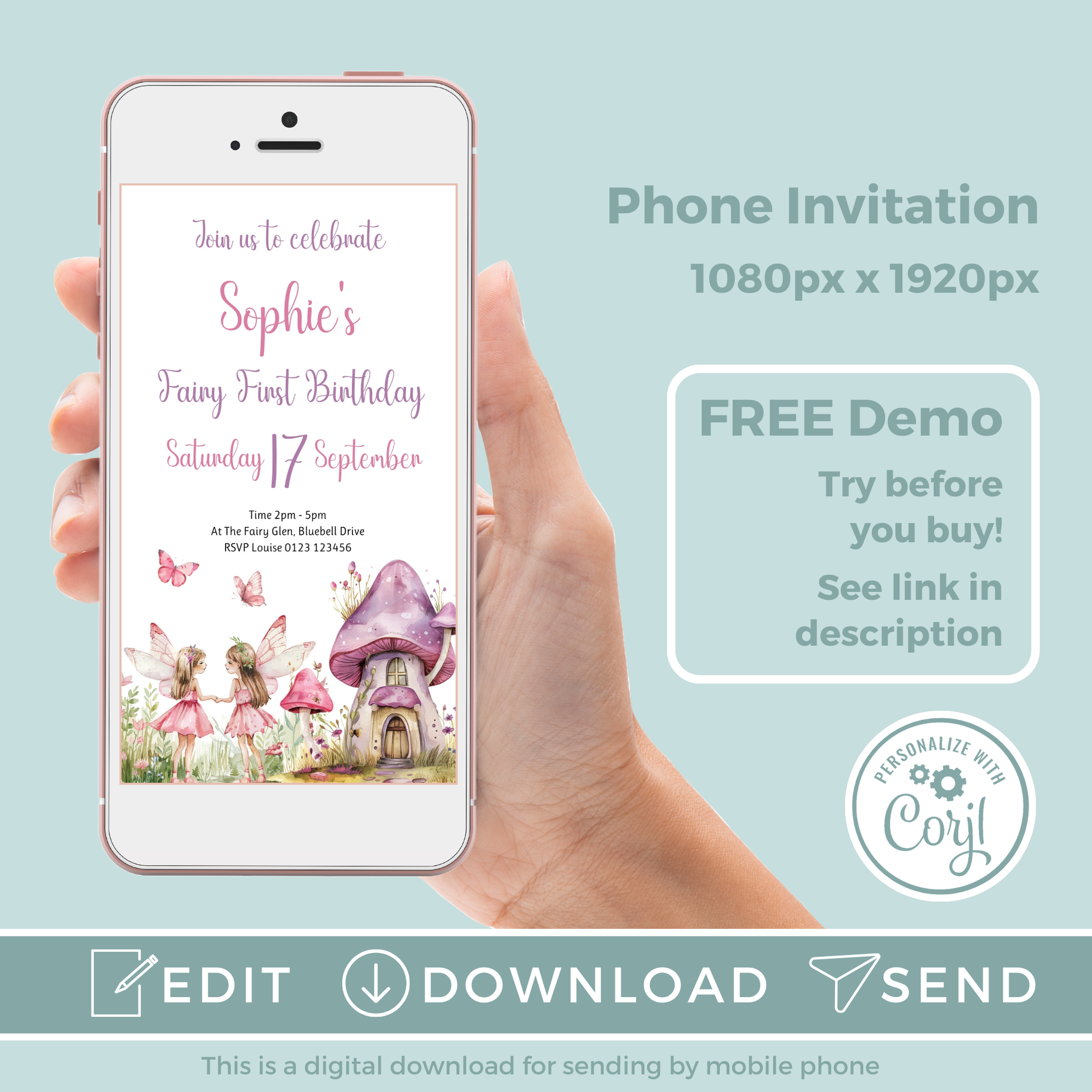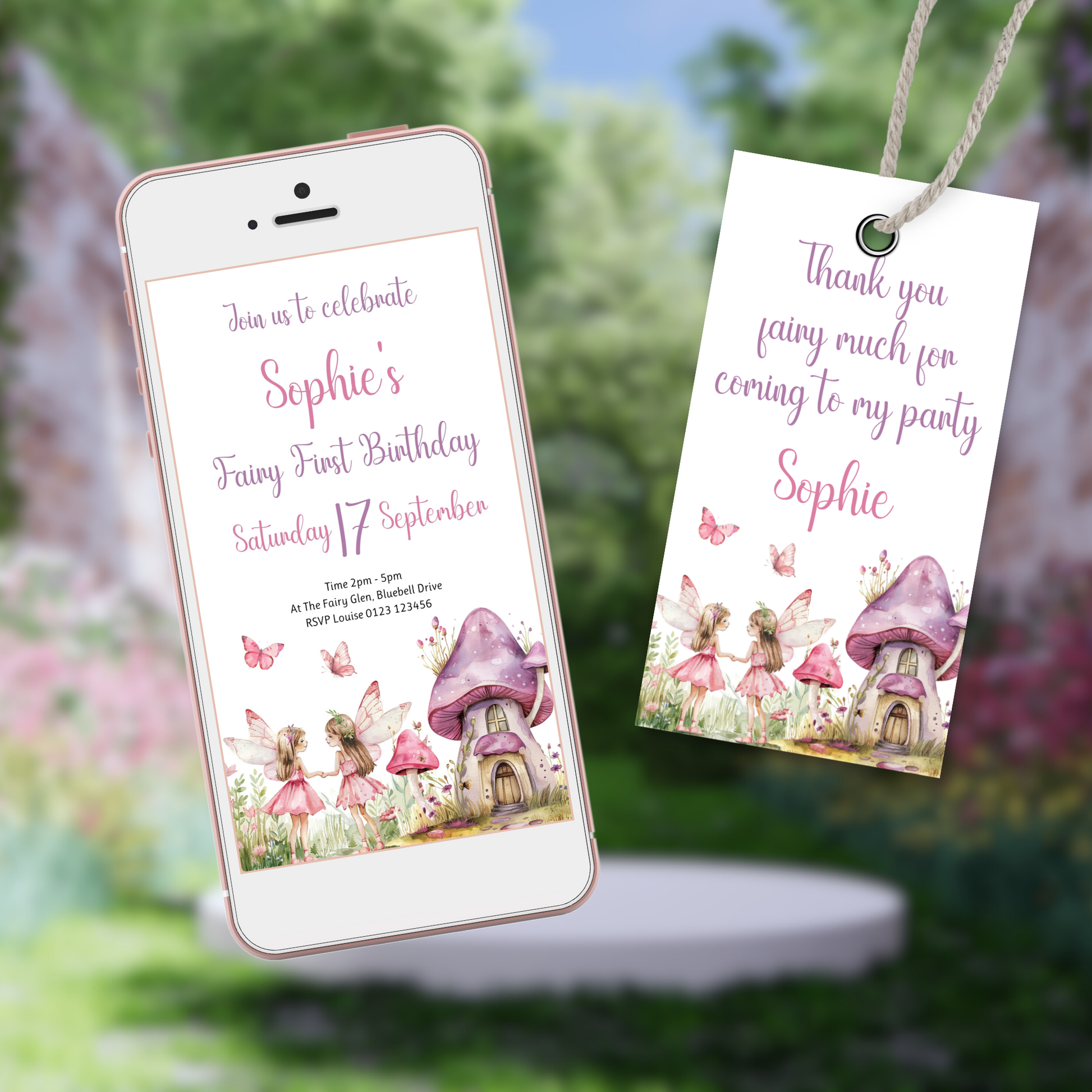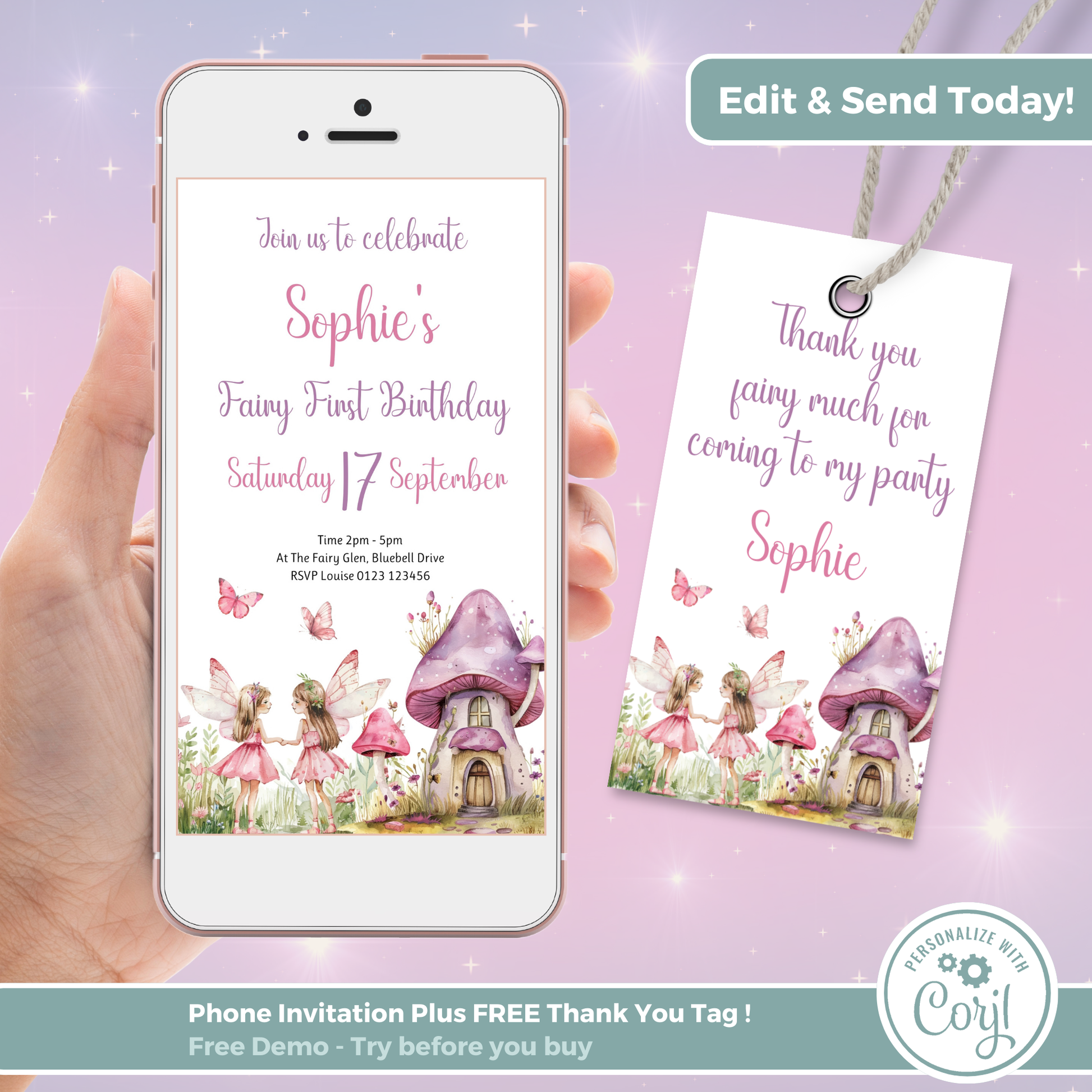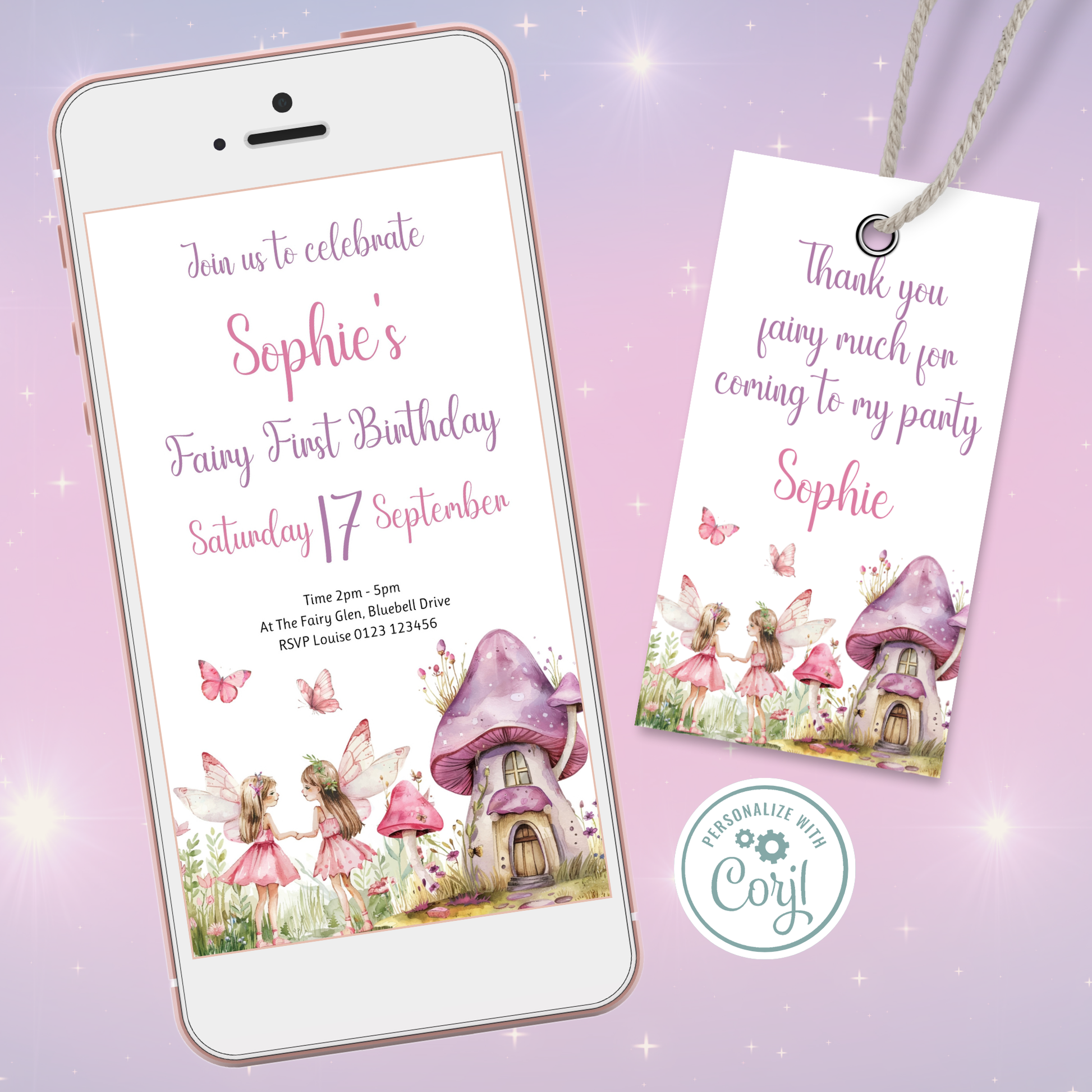 Editable Evite Birthday Invitation and FREE Thank You Tag - Fairy First