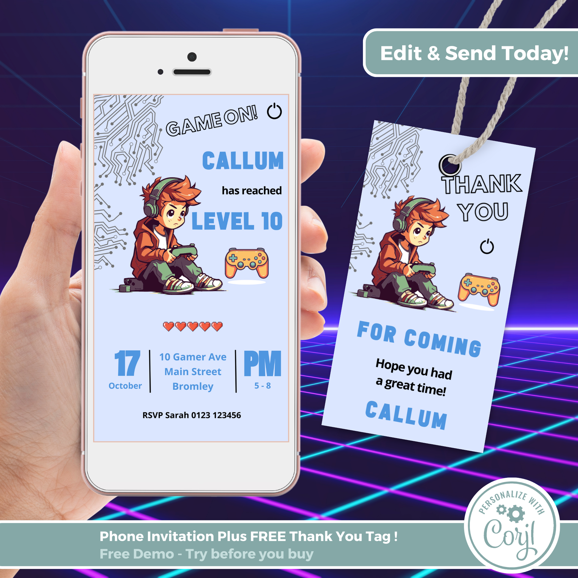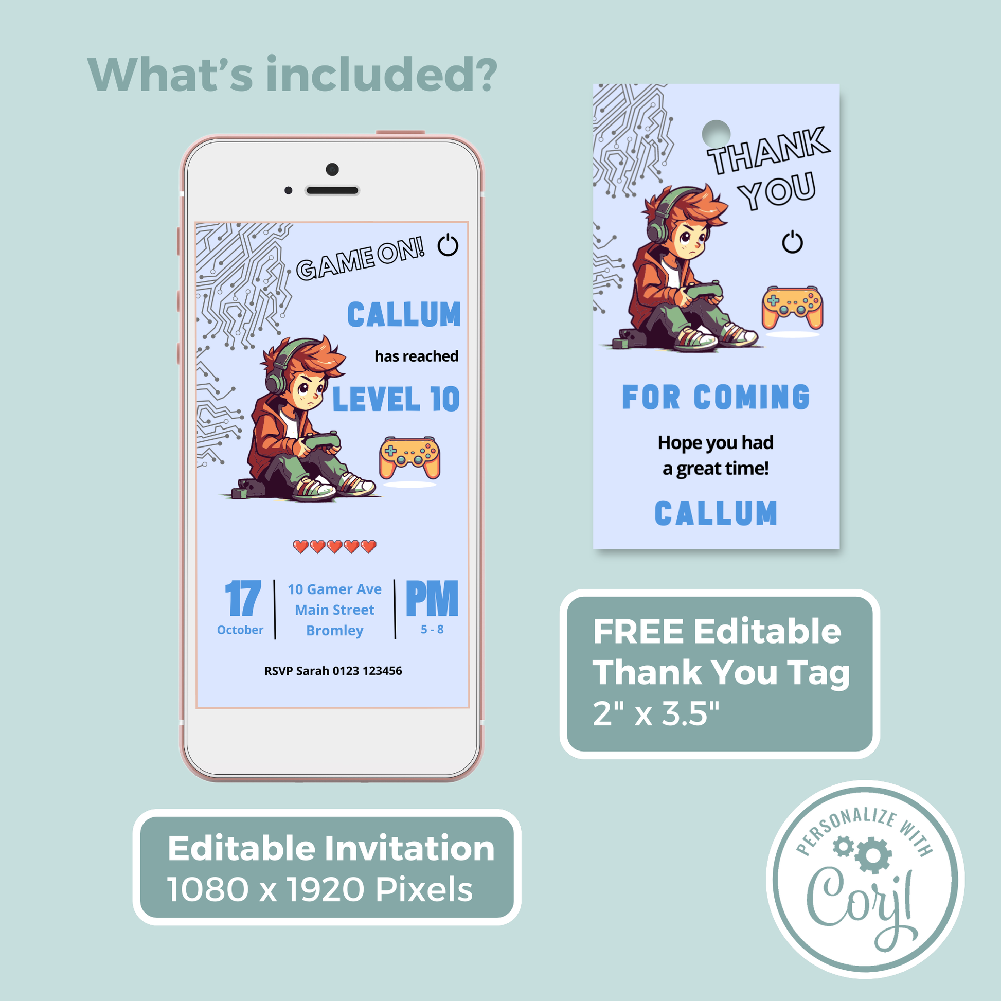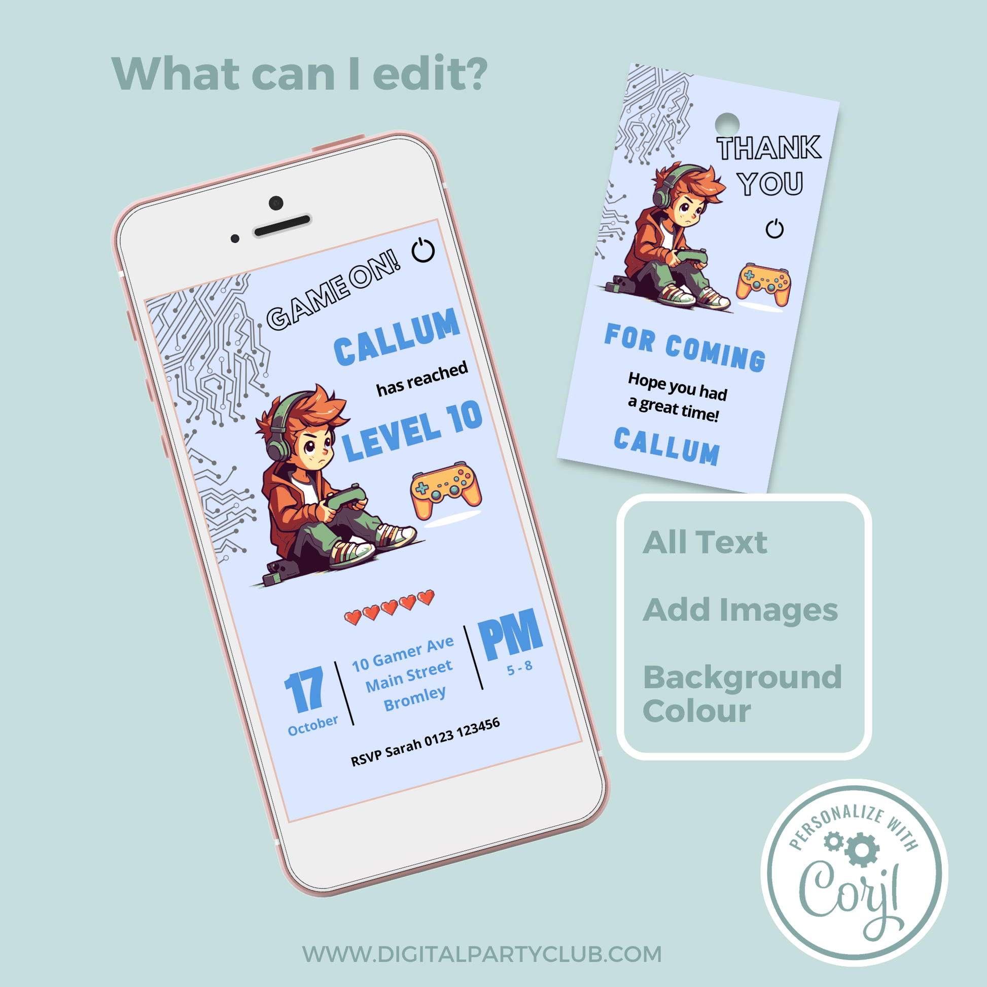Editable Evite Birthday Invitation and FREE Thank You Tag - Game On