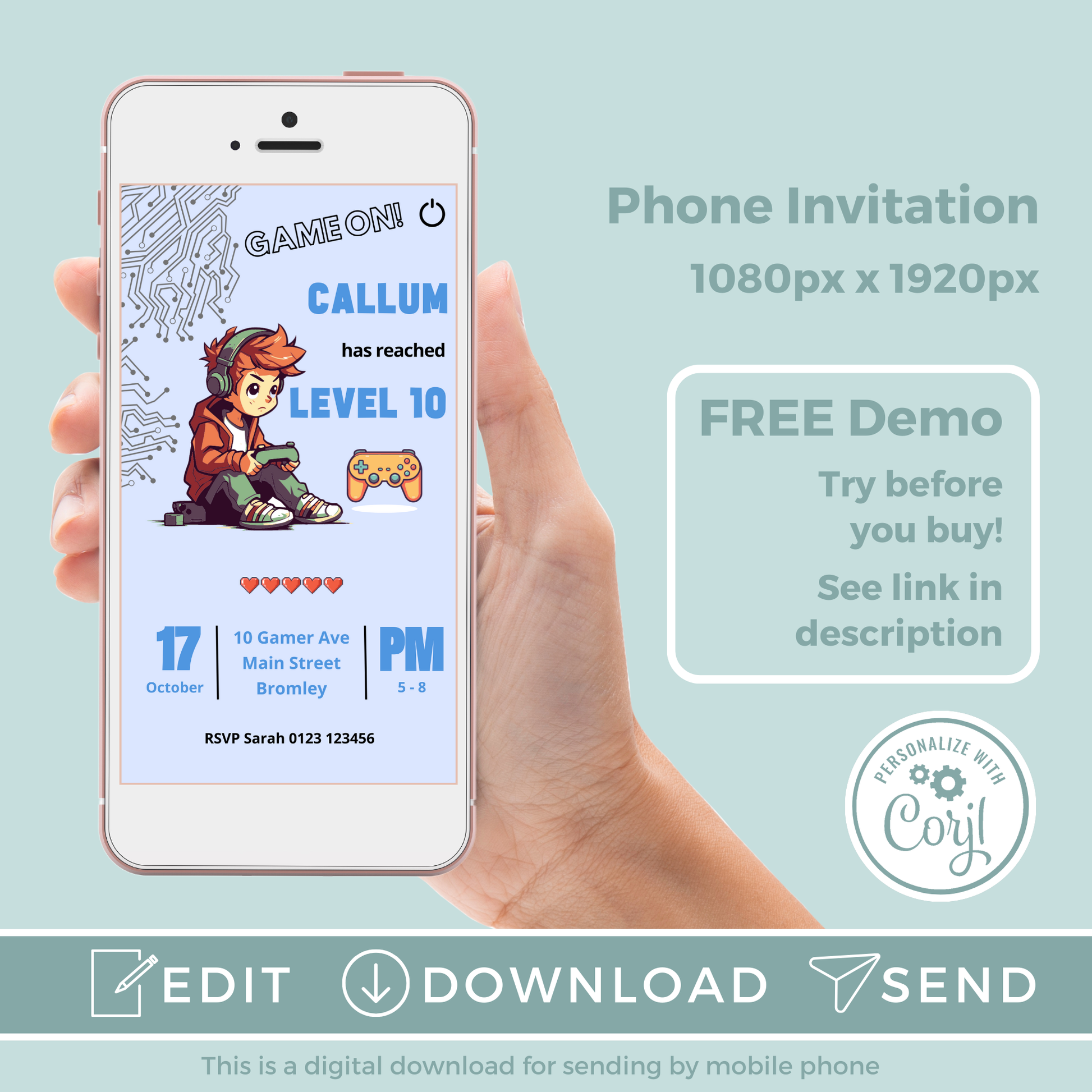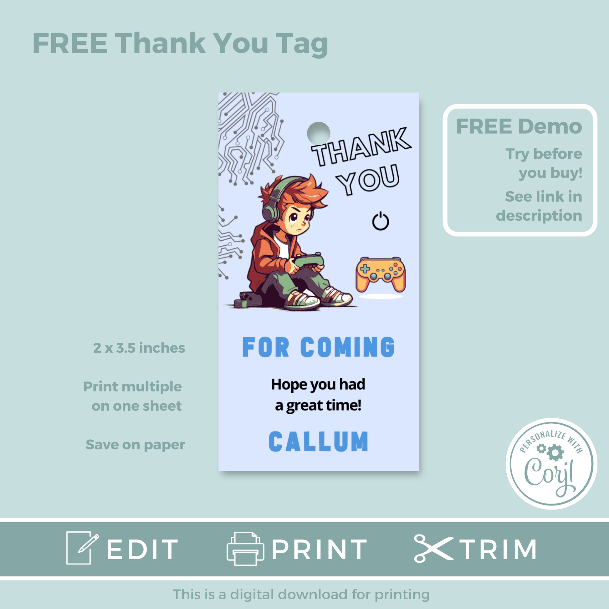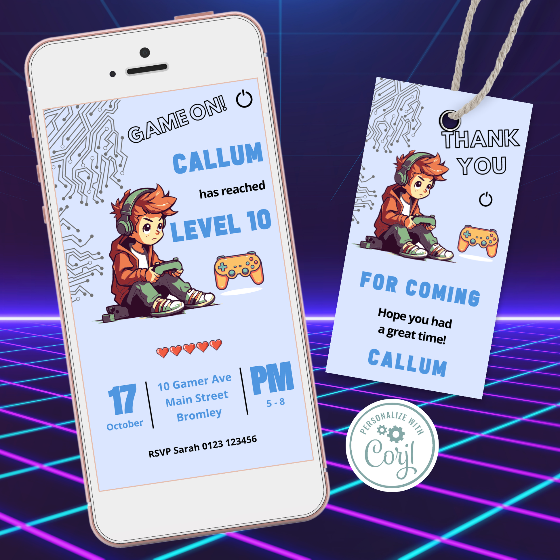 Editable Evite Birthday Invitation and FREE Thank You Tag - Game On