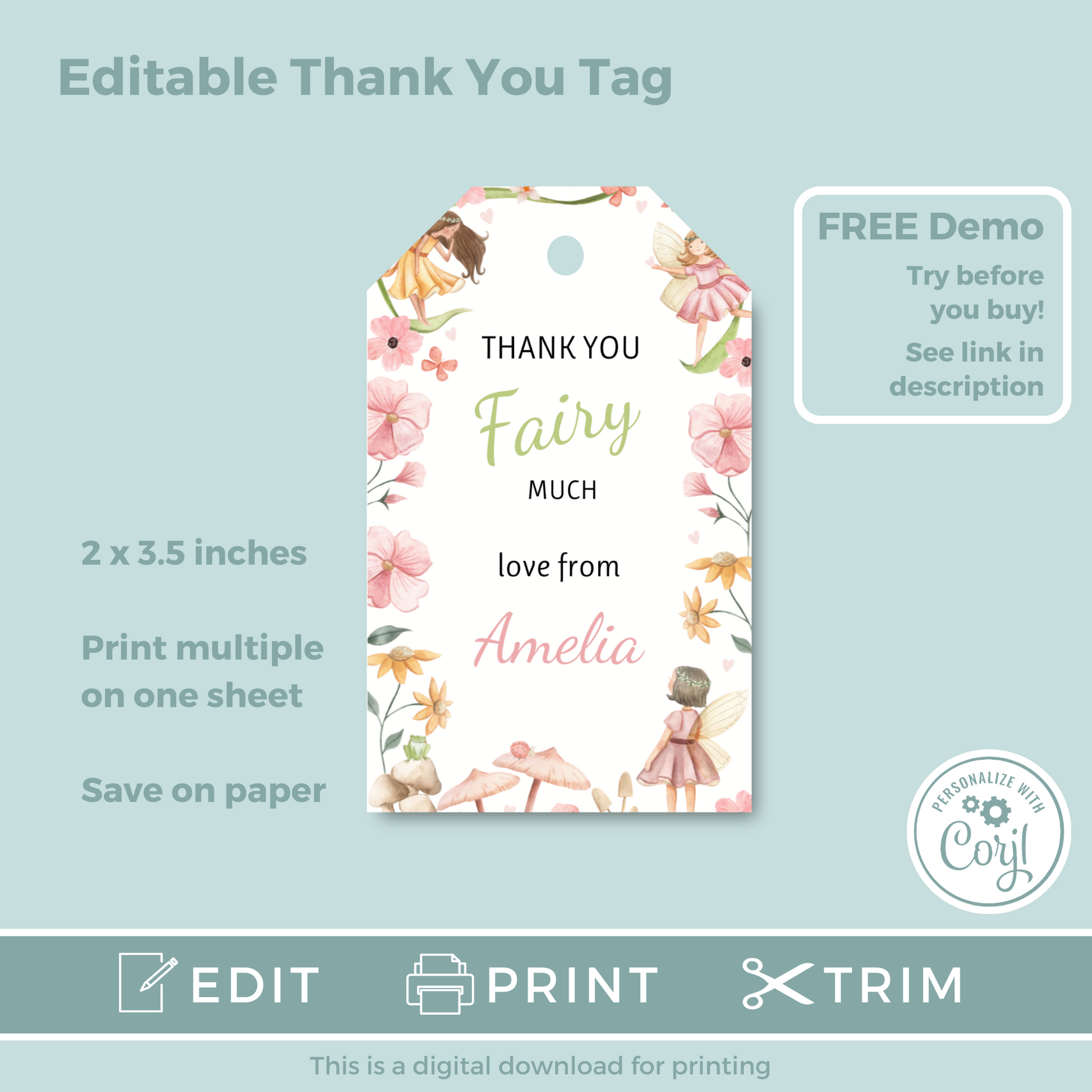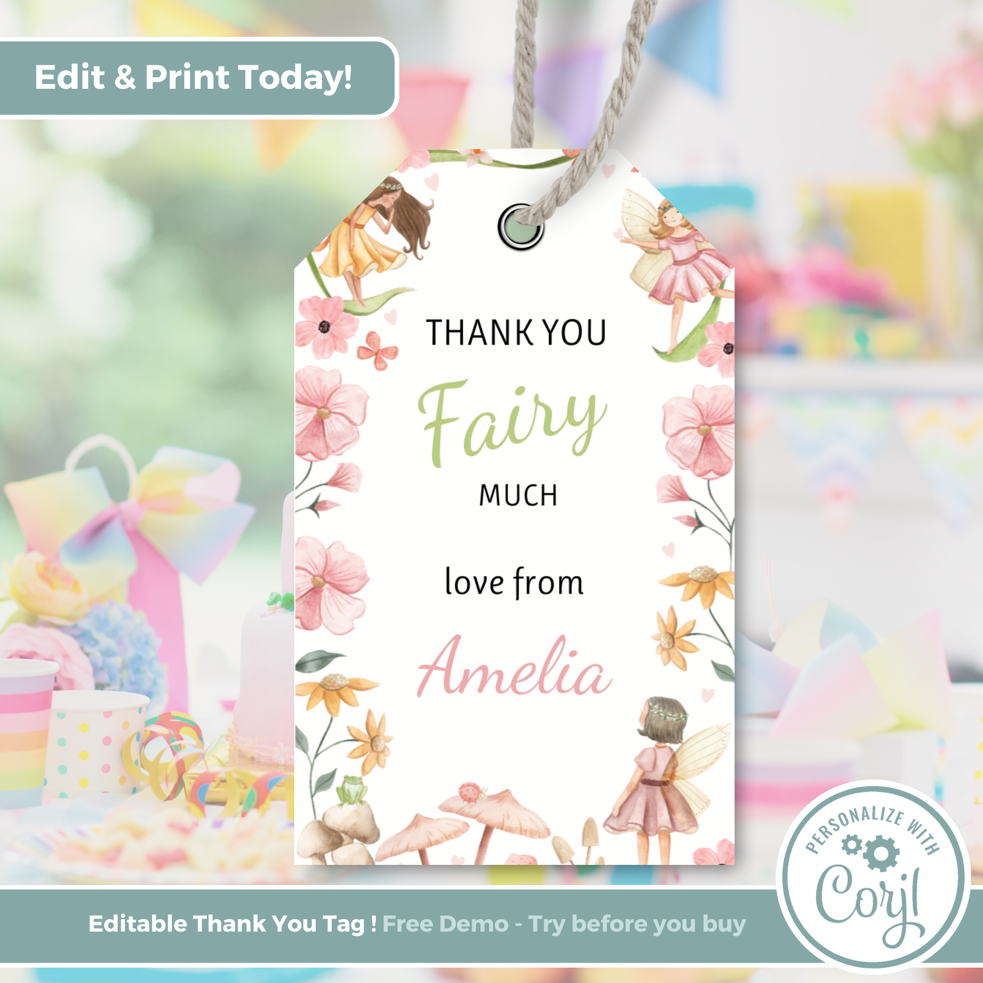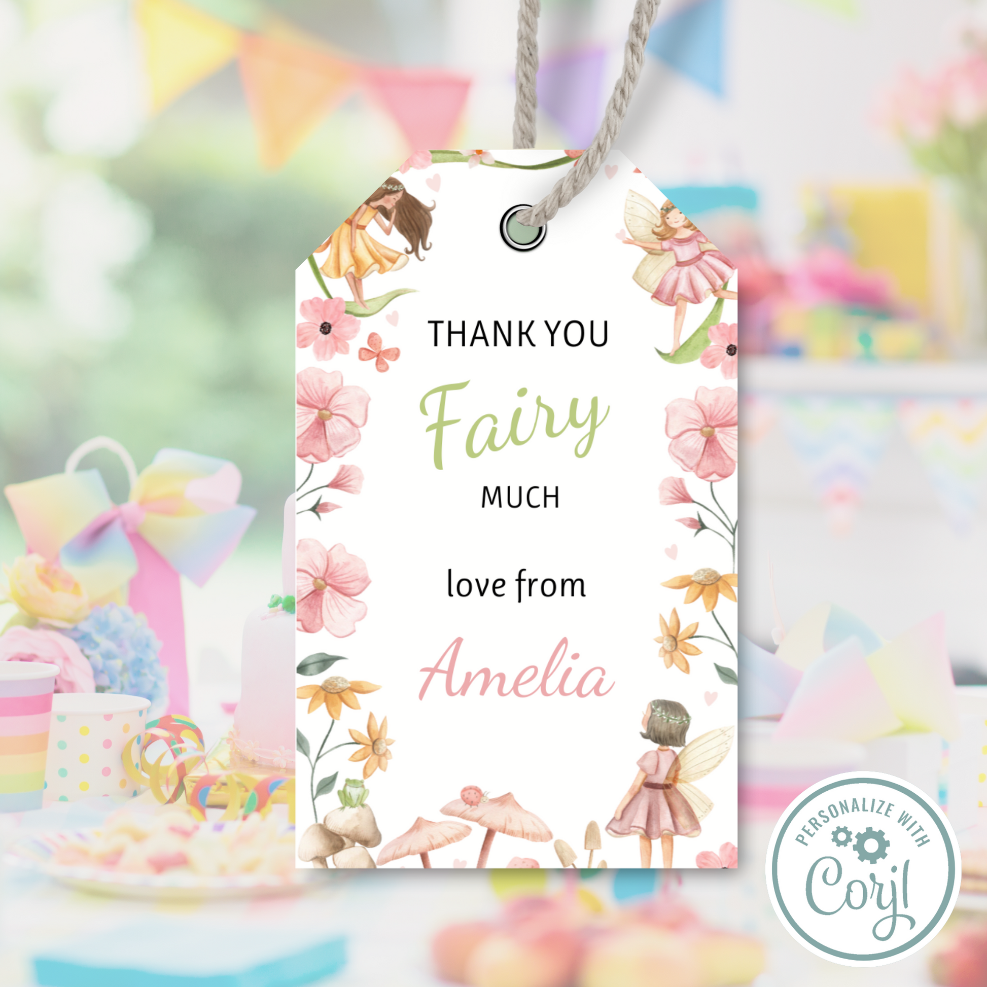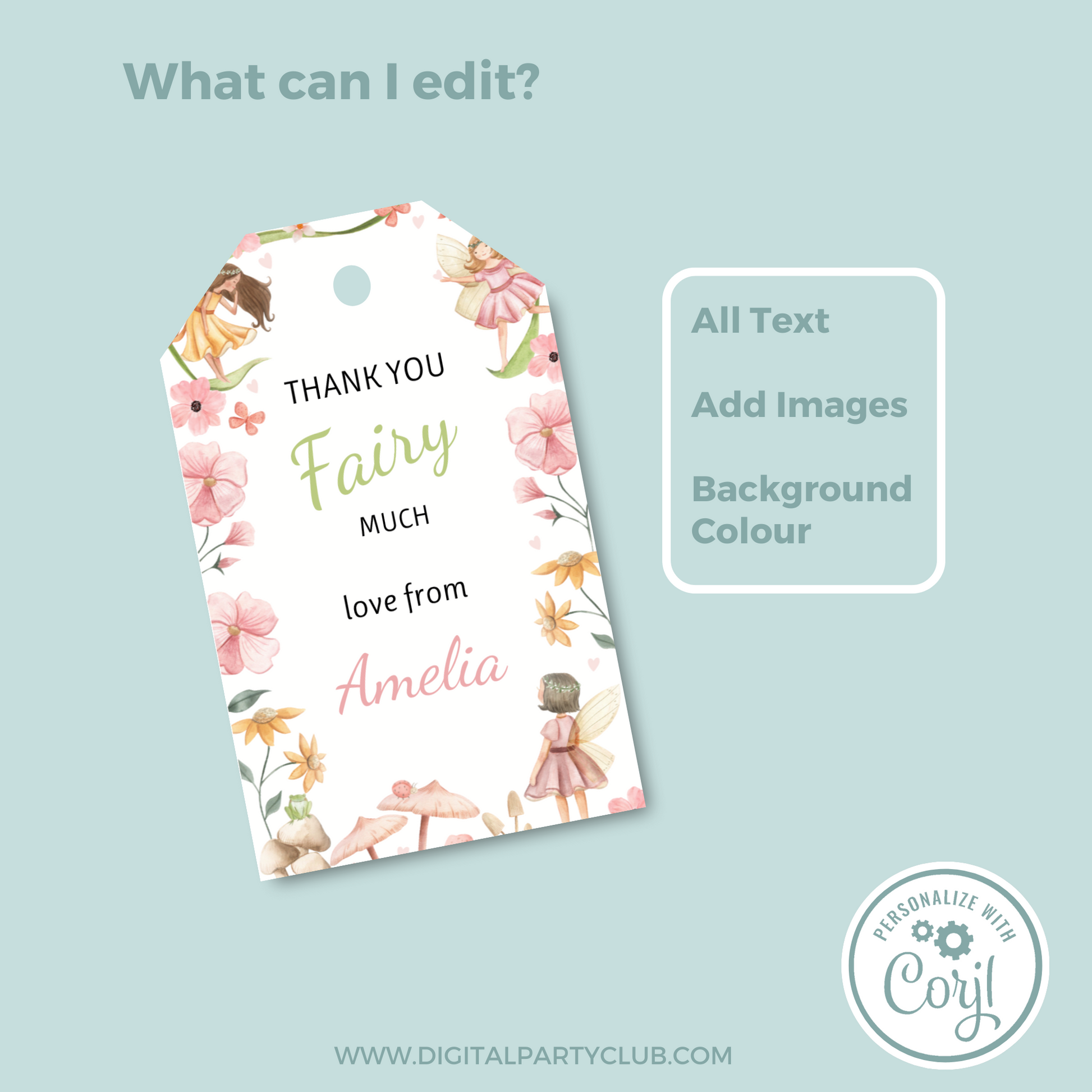 Editable Birthday Thank You Tag - Fairy