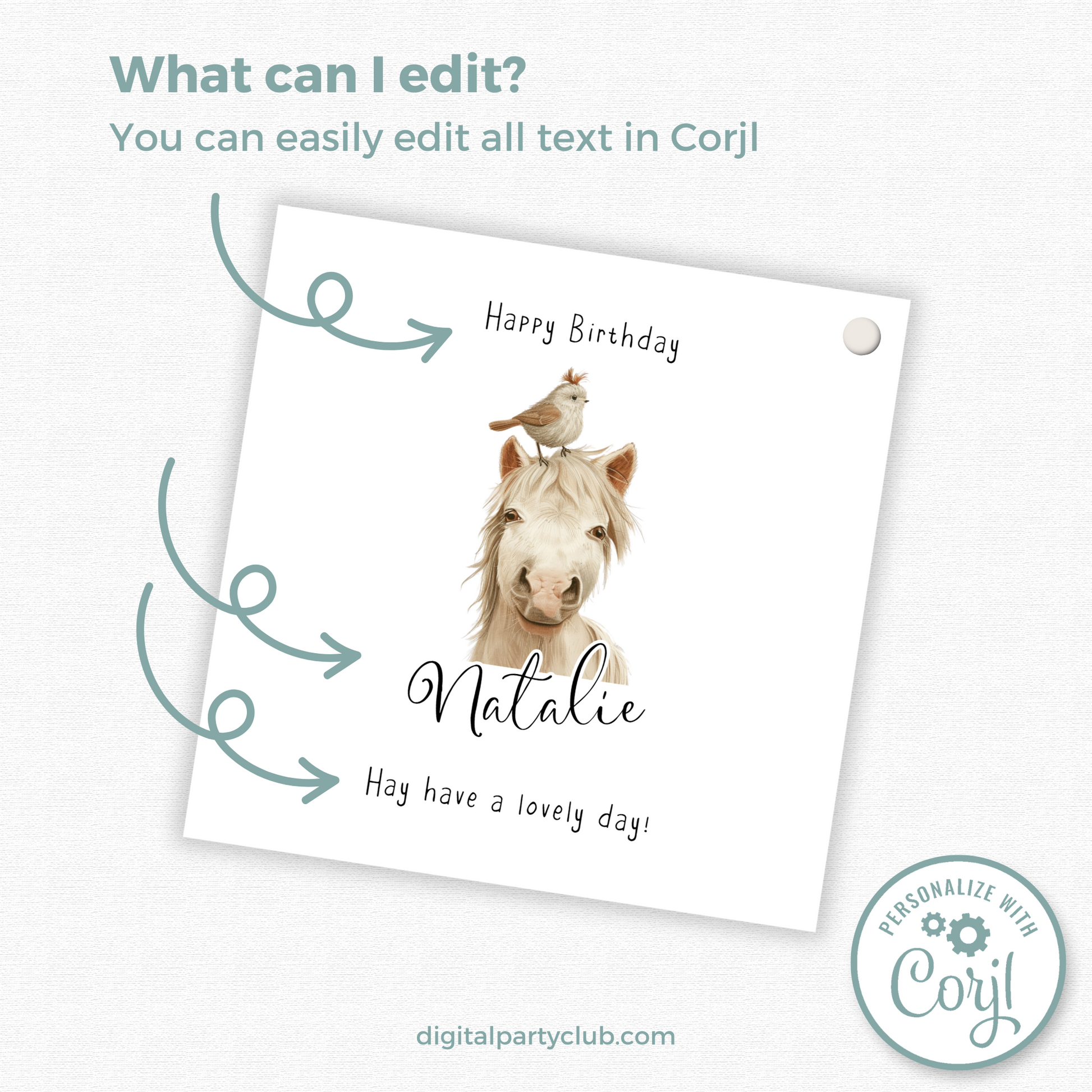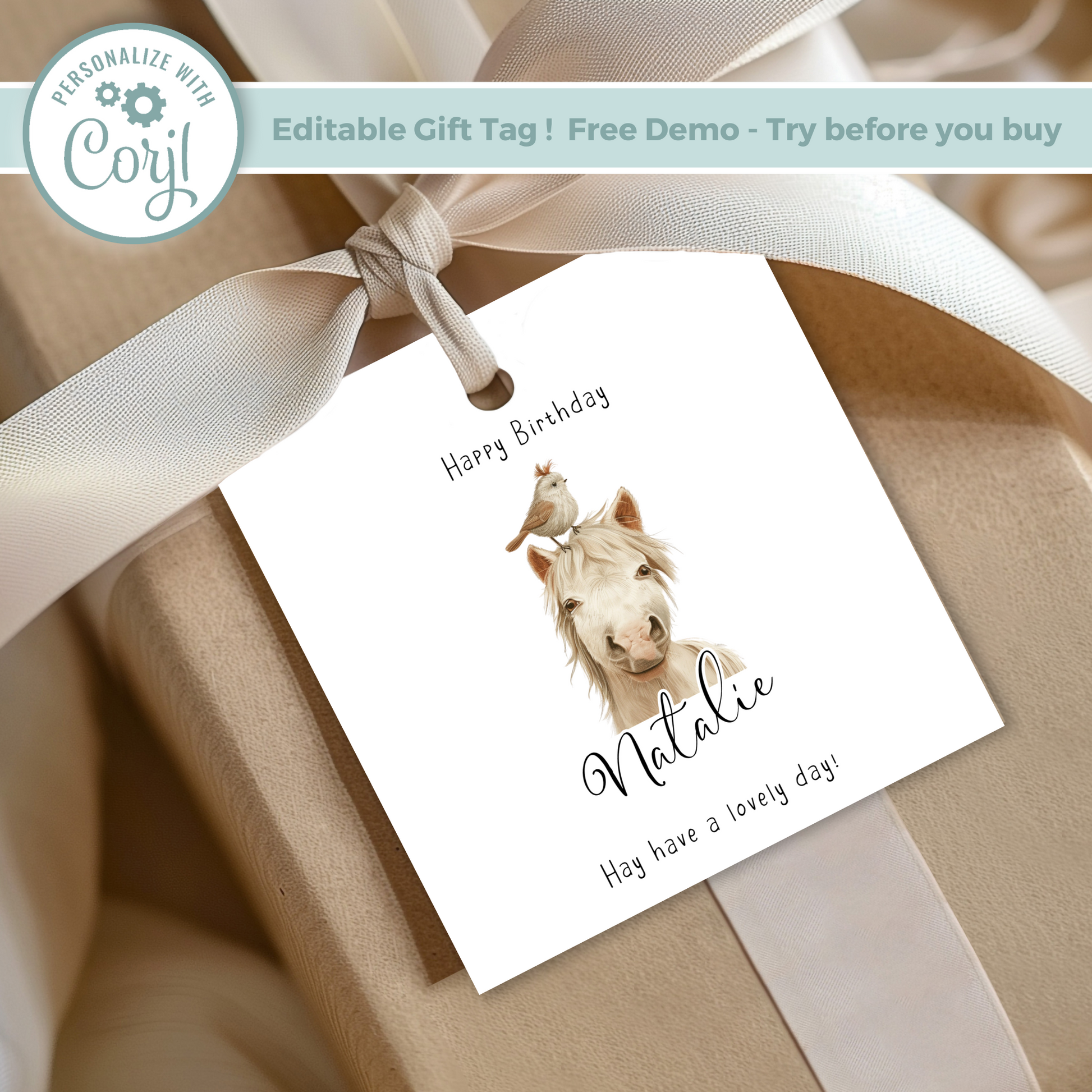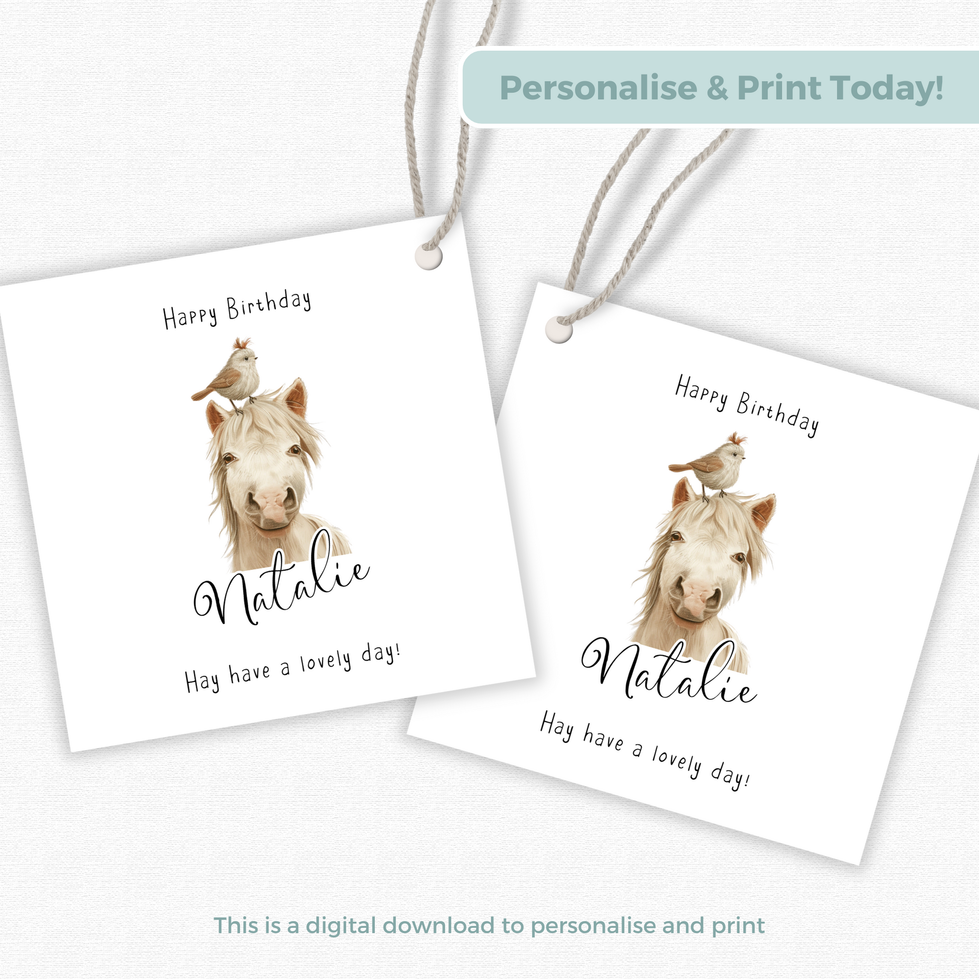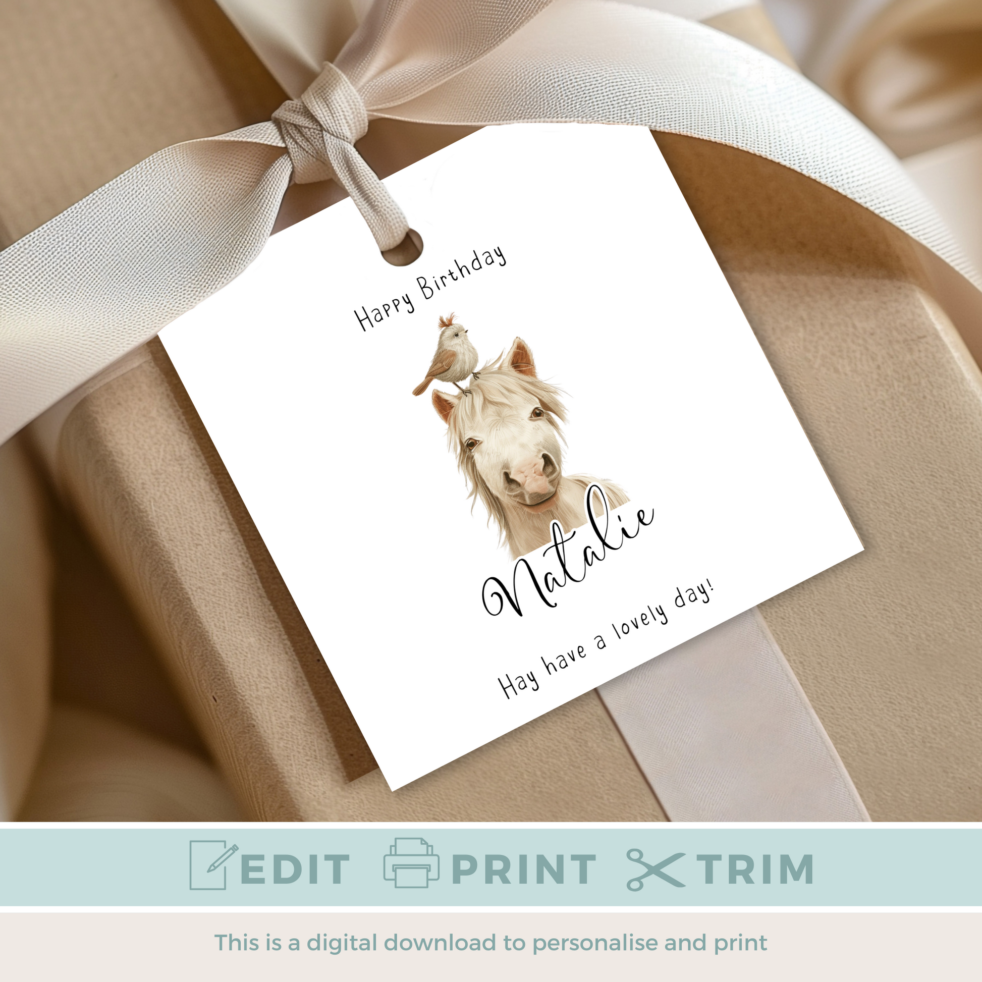 Make every gift extra special with this adorable editable horse birthday gift tag! Perfect for kids, horse lovers, or anyone who appreciates a little cuteness with their present.