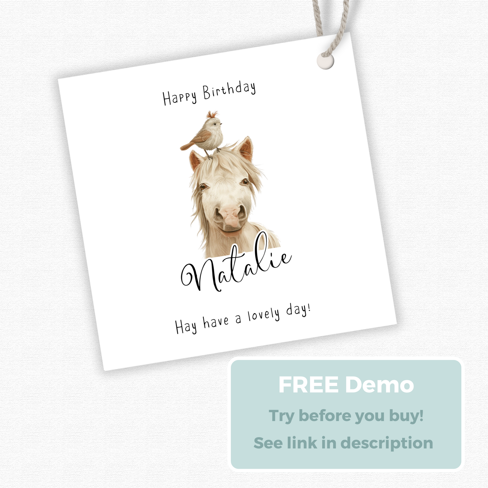 Editable Horse Birthday Gift Tag