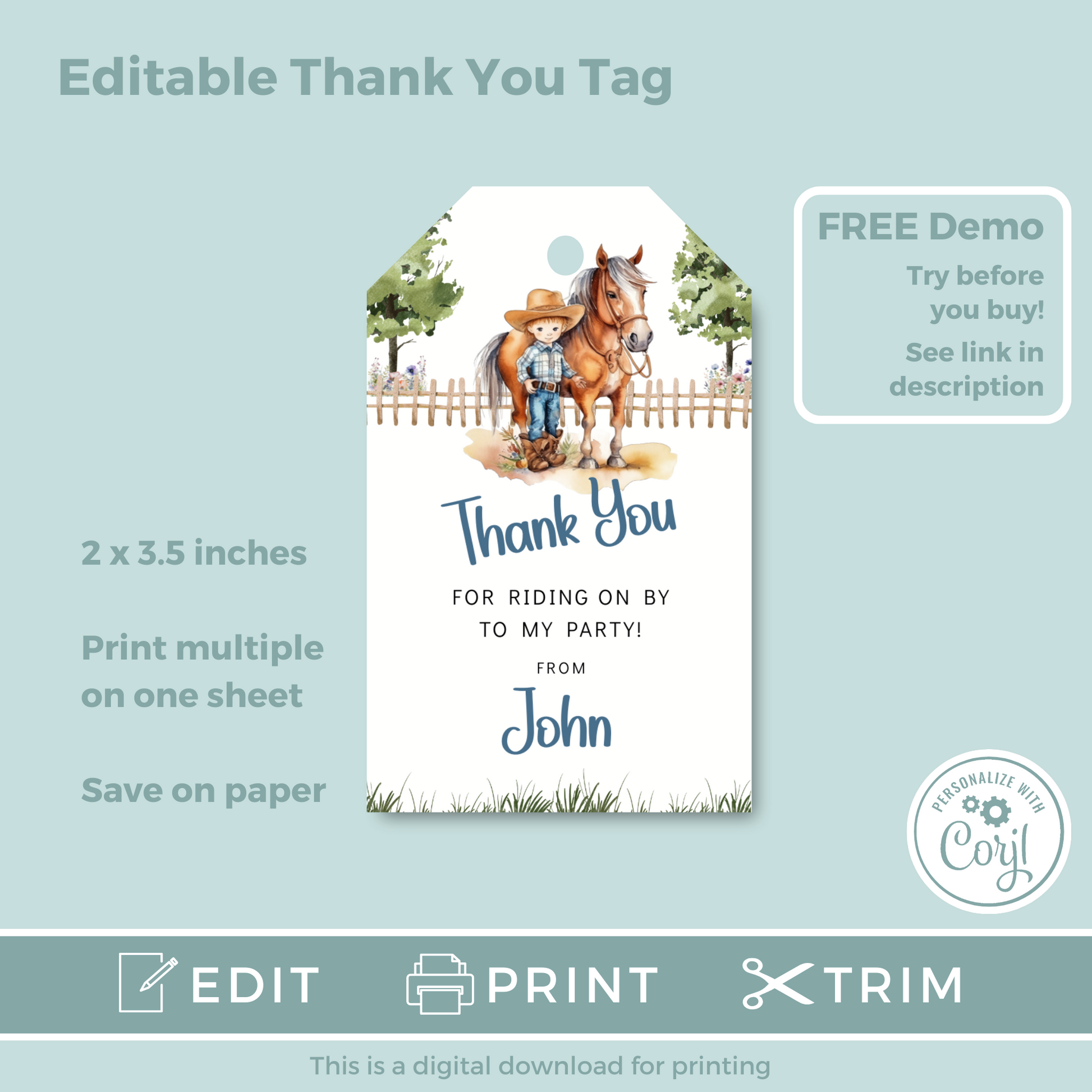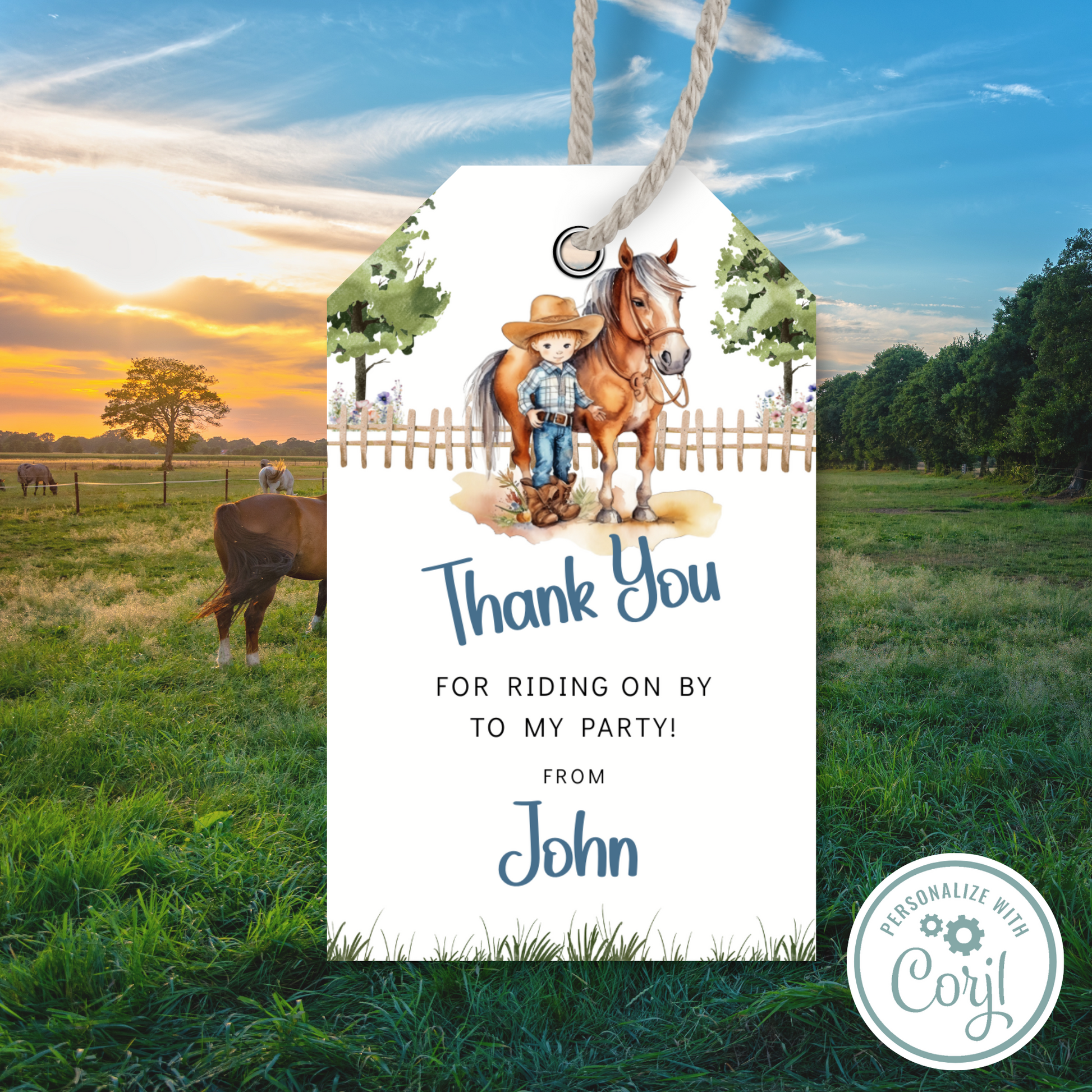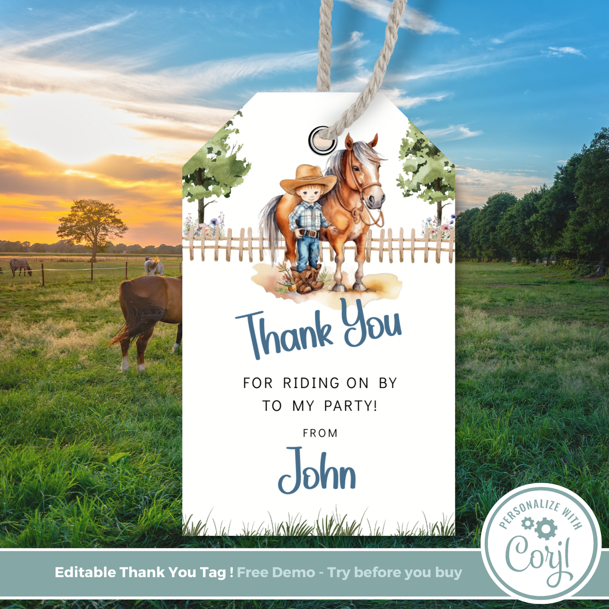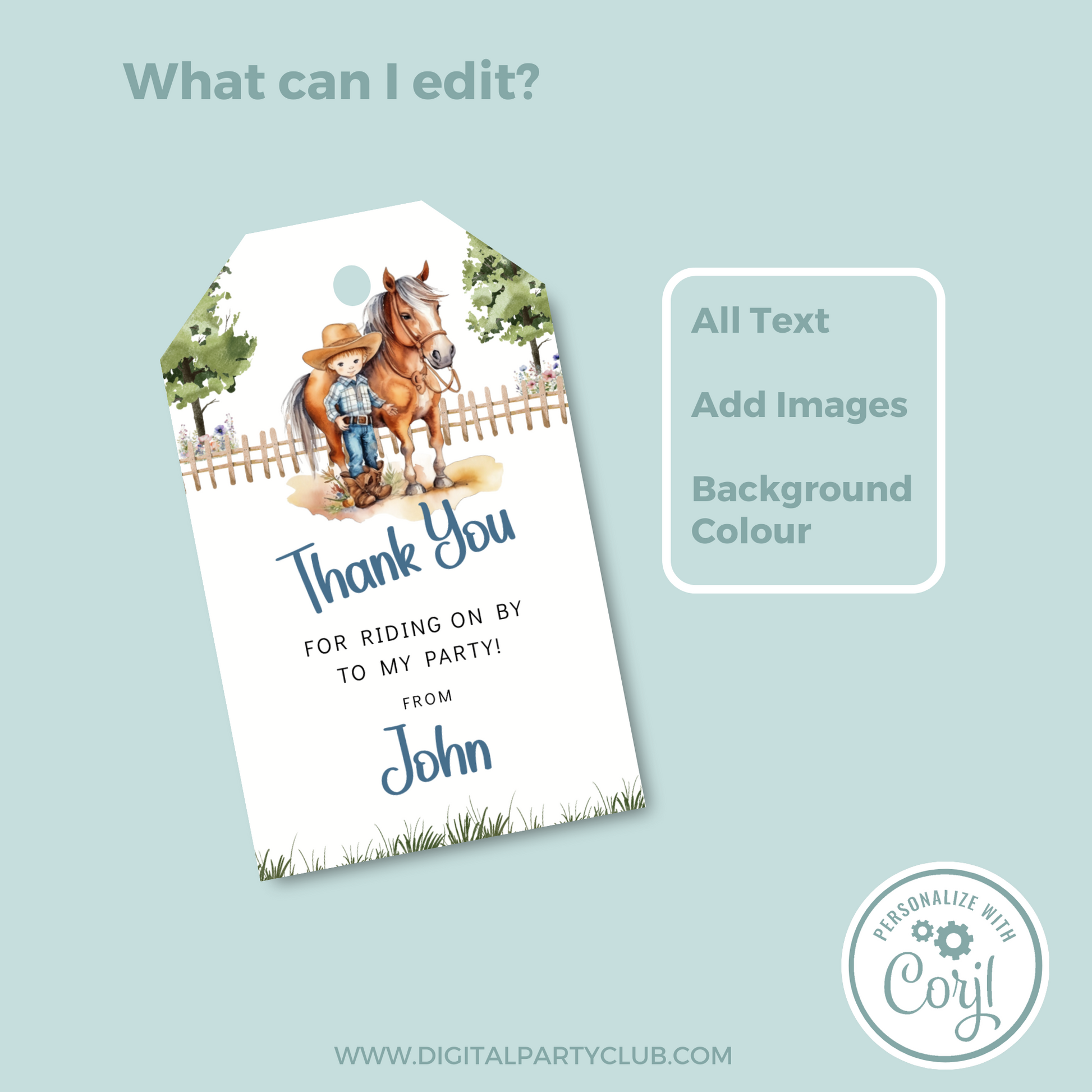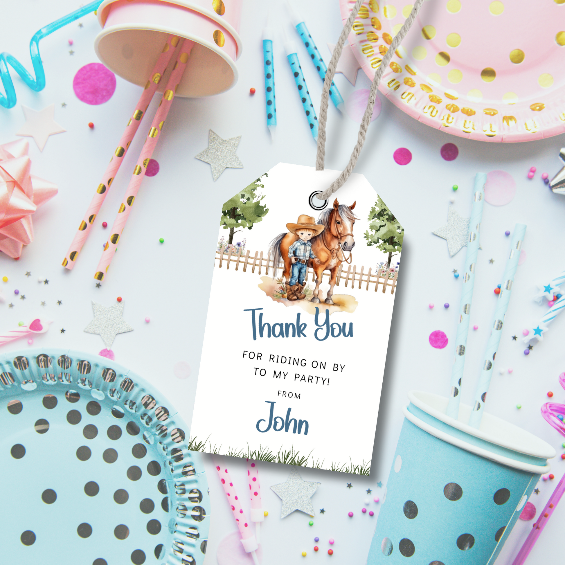 Editable Birthday Thank You Tag - Saddle Up Boy