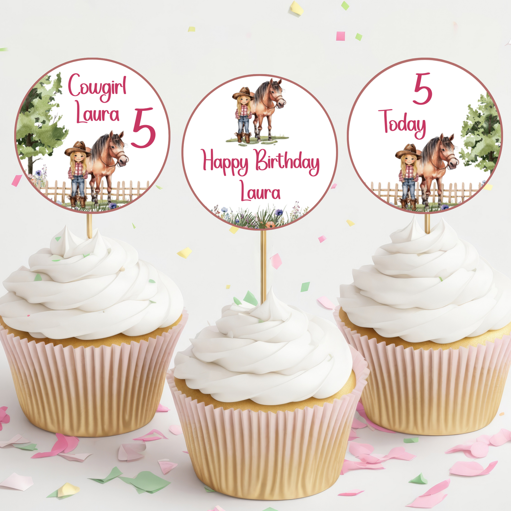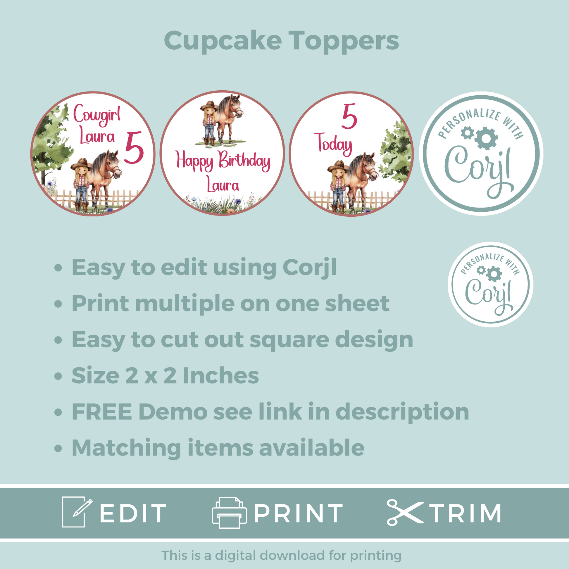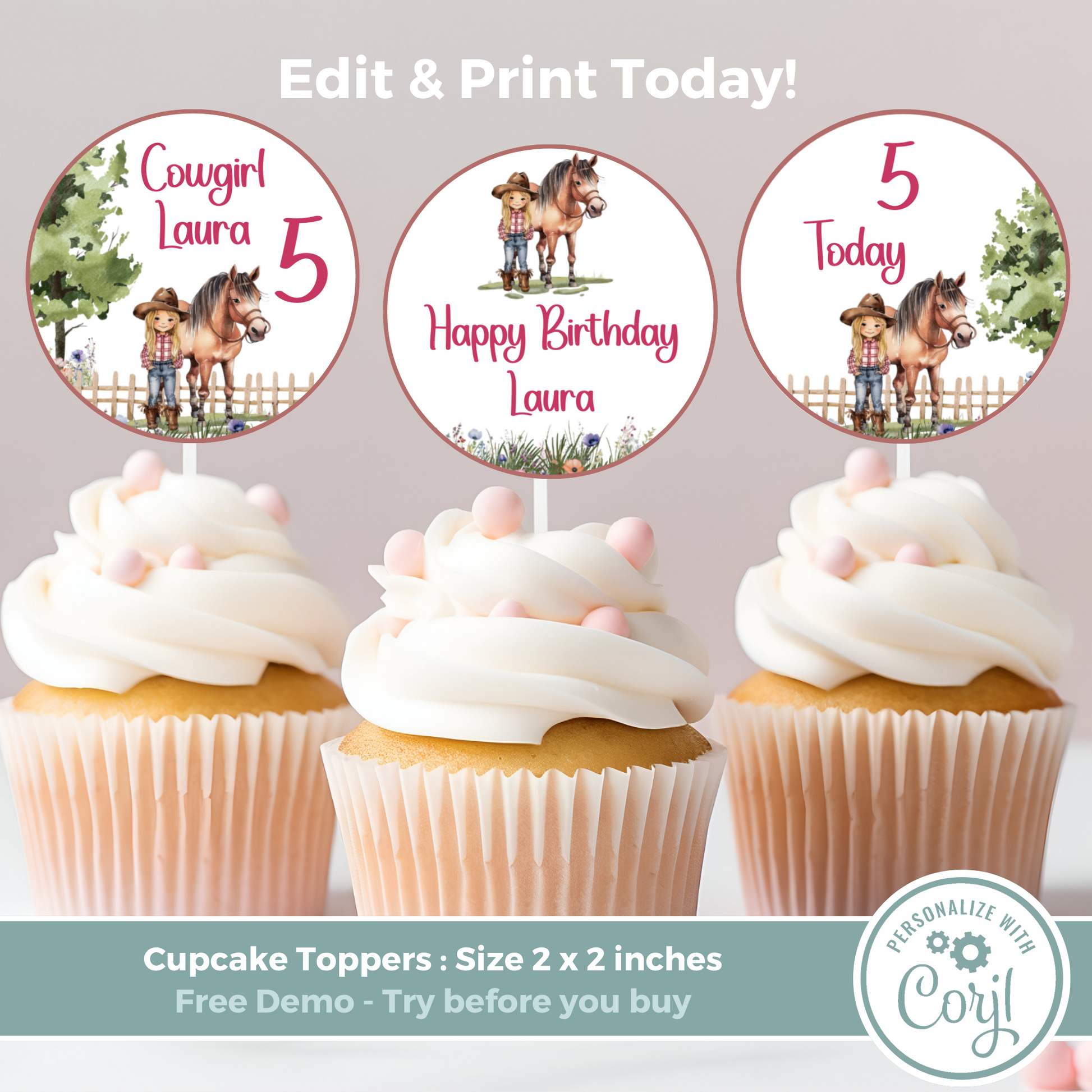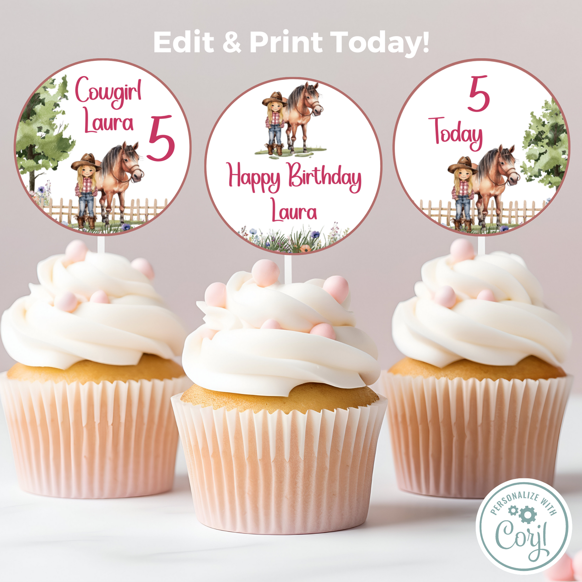 Editable Birthday Cupcake Toppers - Saddle Up Girl