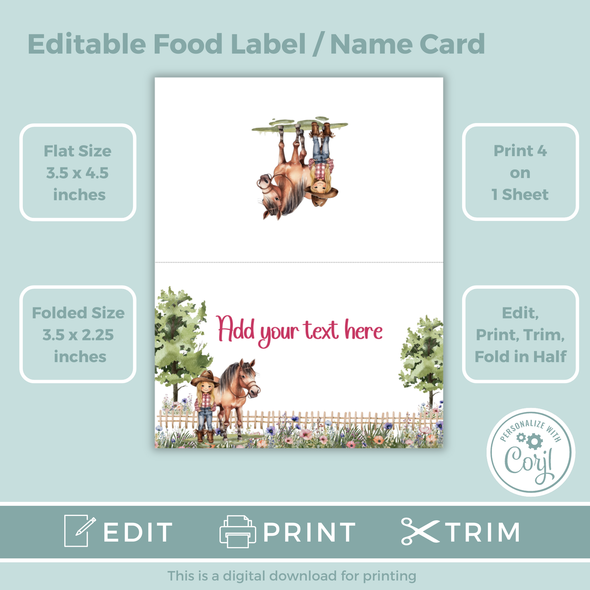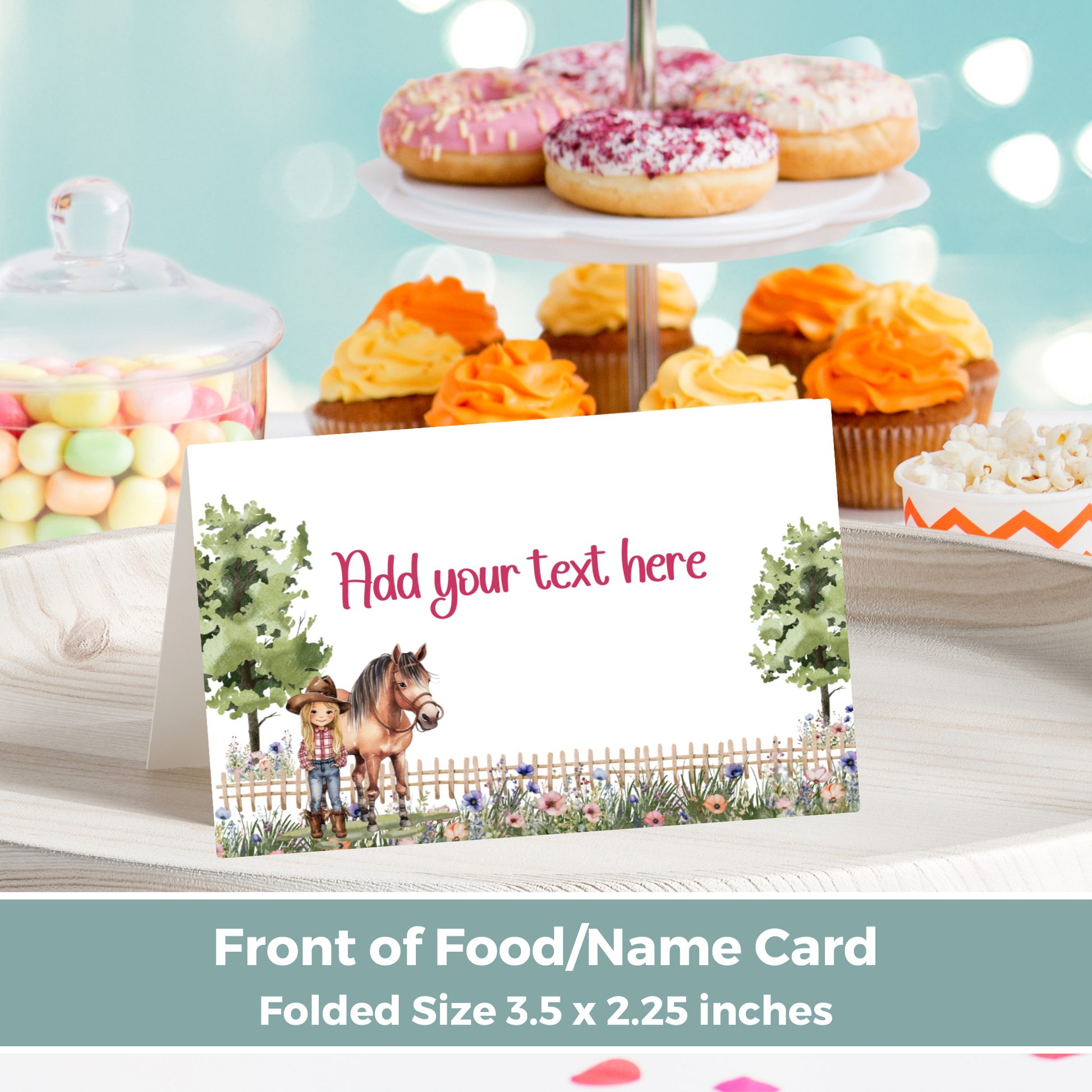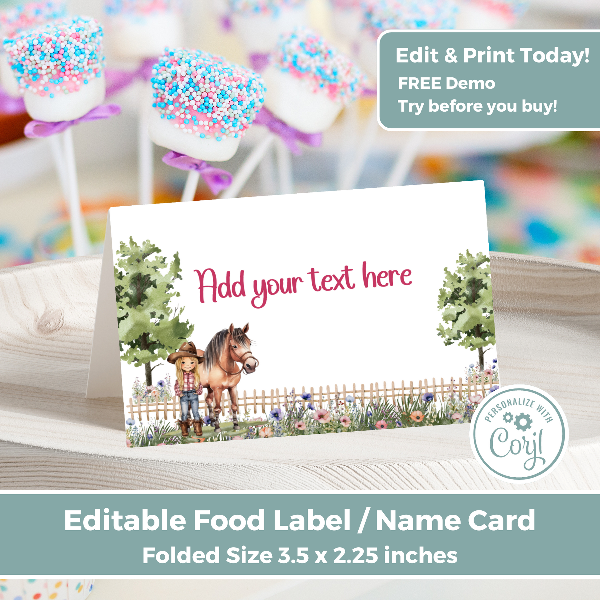 Editable Birthday Food Label / Name Card - Saddle Up Girl