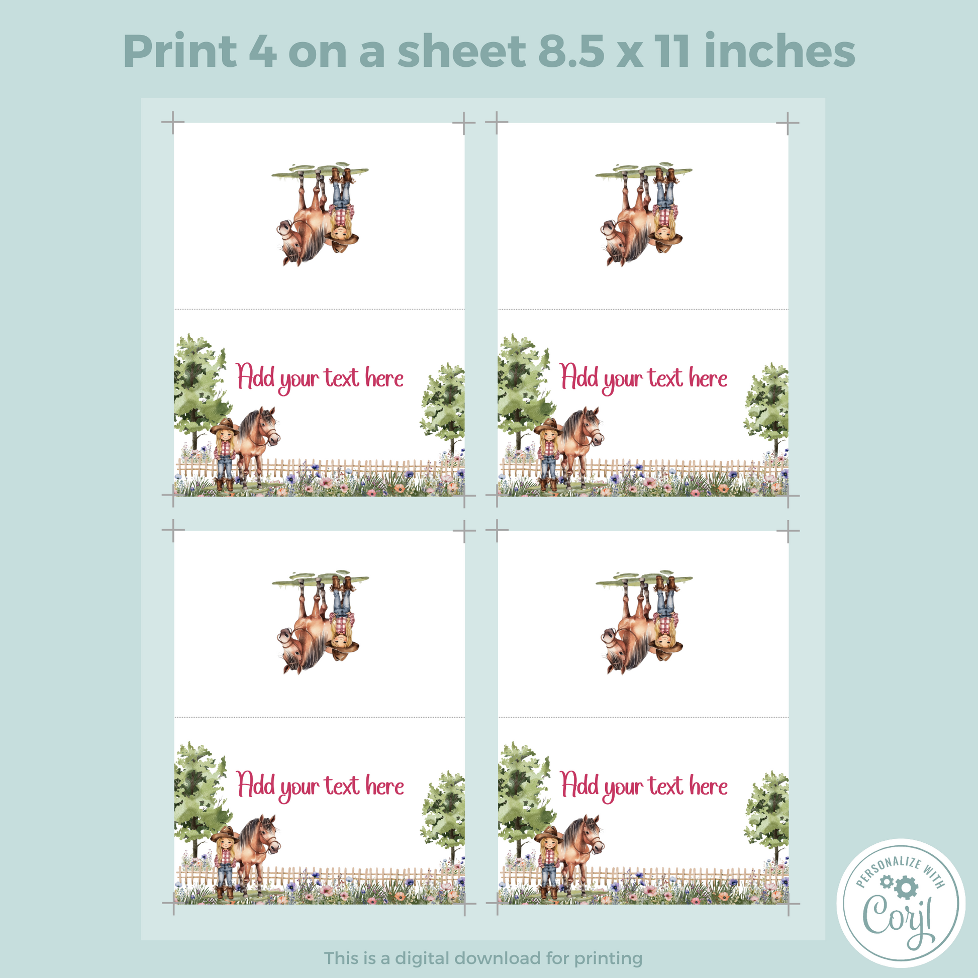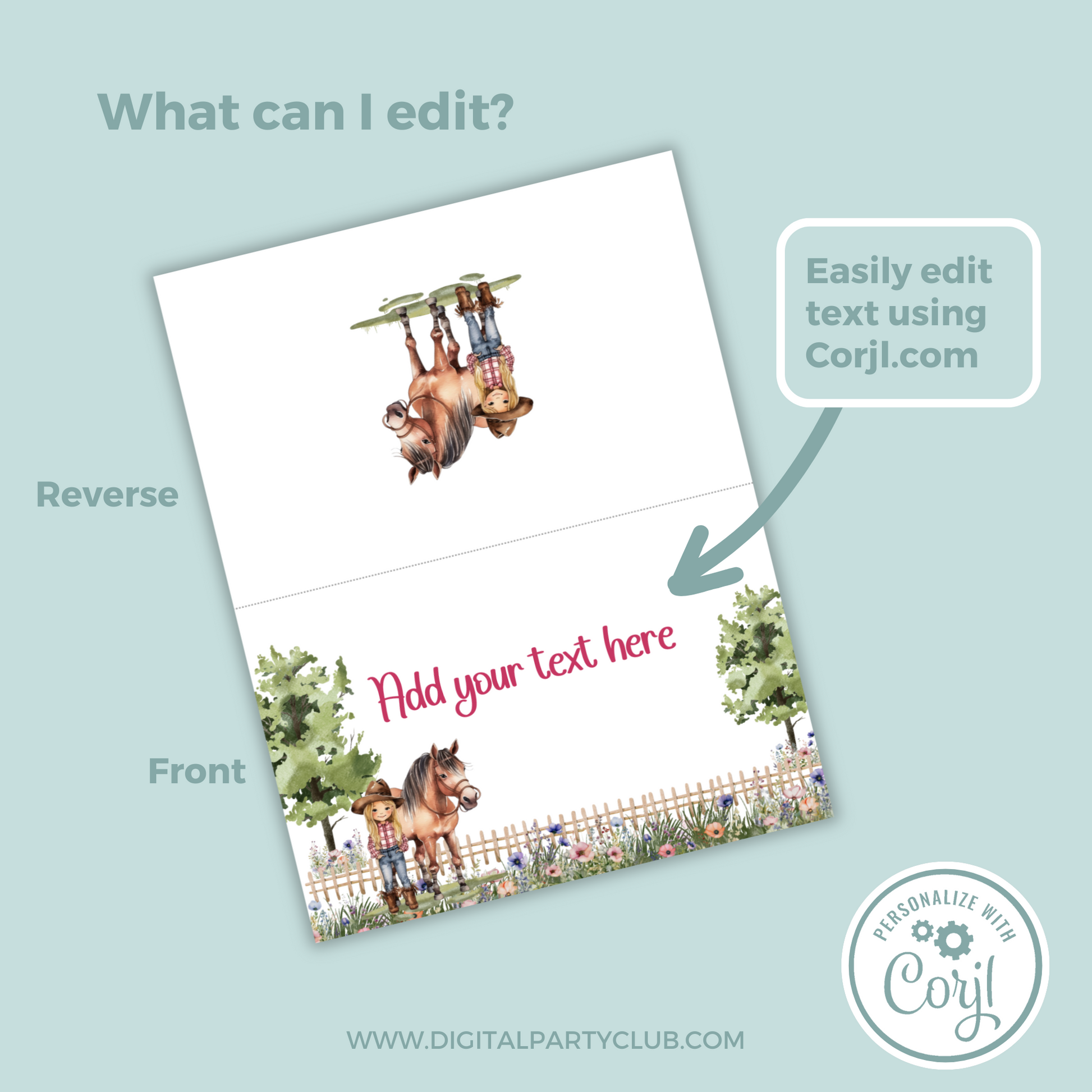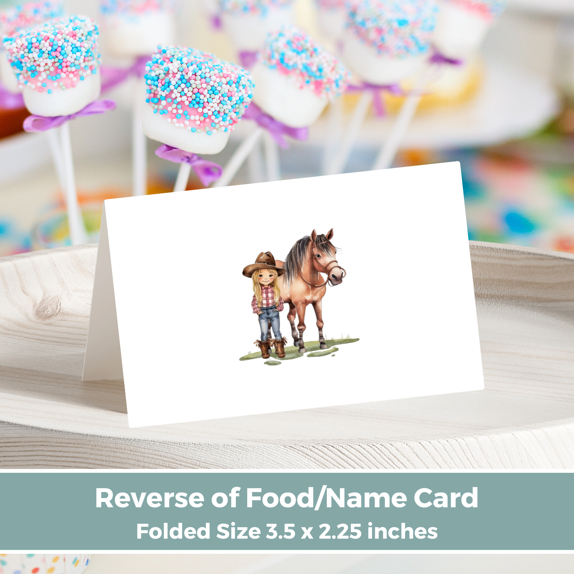 Editable Birthday Food Label / Name Card - Saddle Up Girl