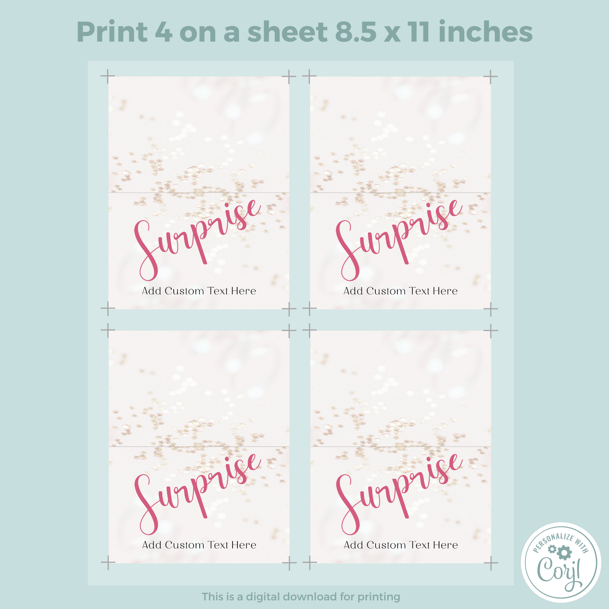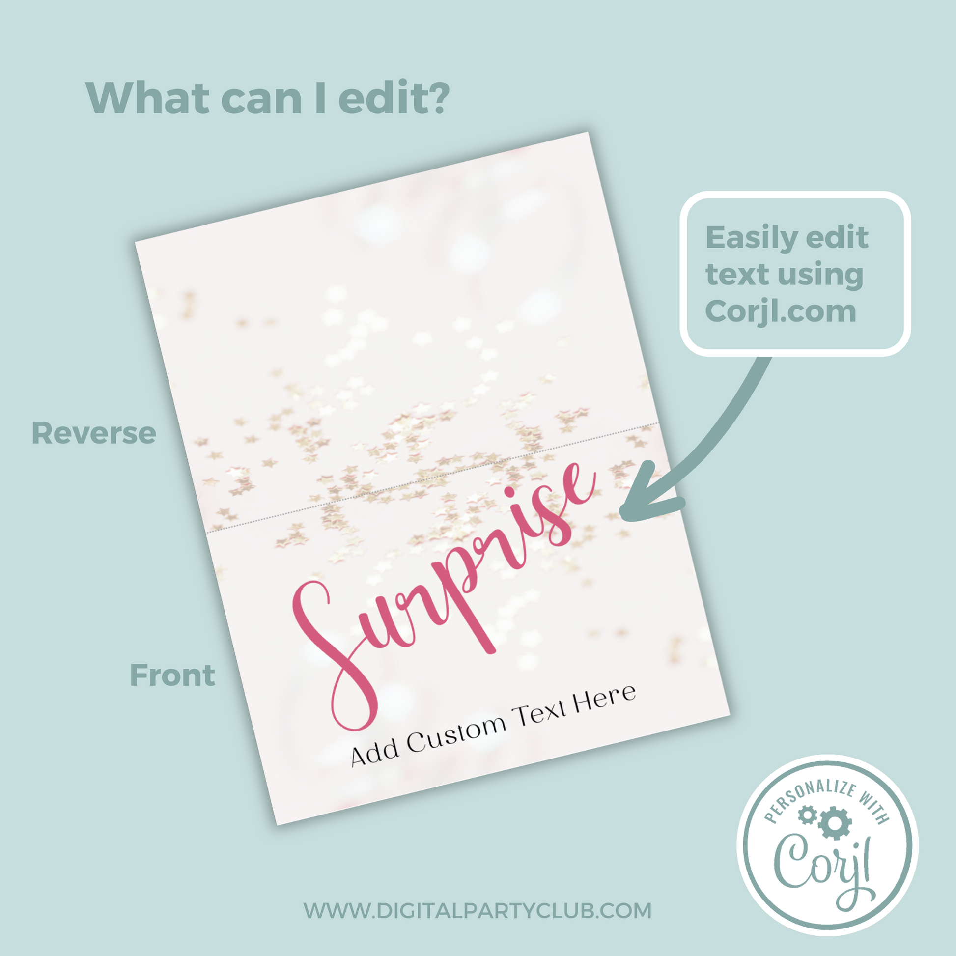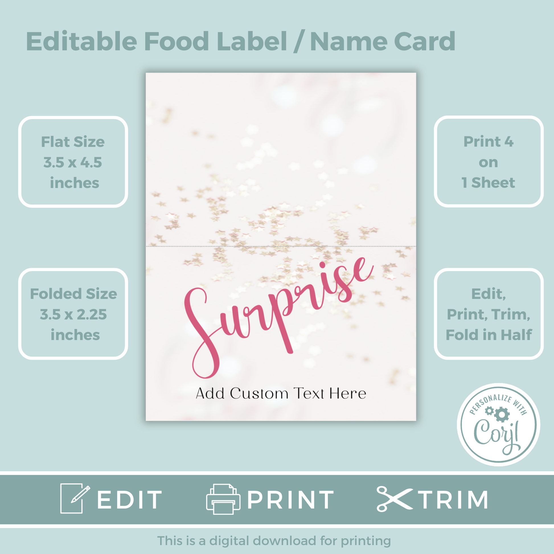 Editable Birthday Food Label / Name Card - Surprise Pink