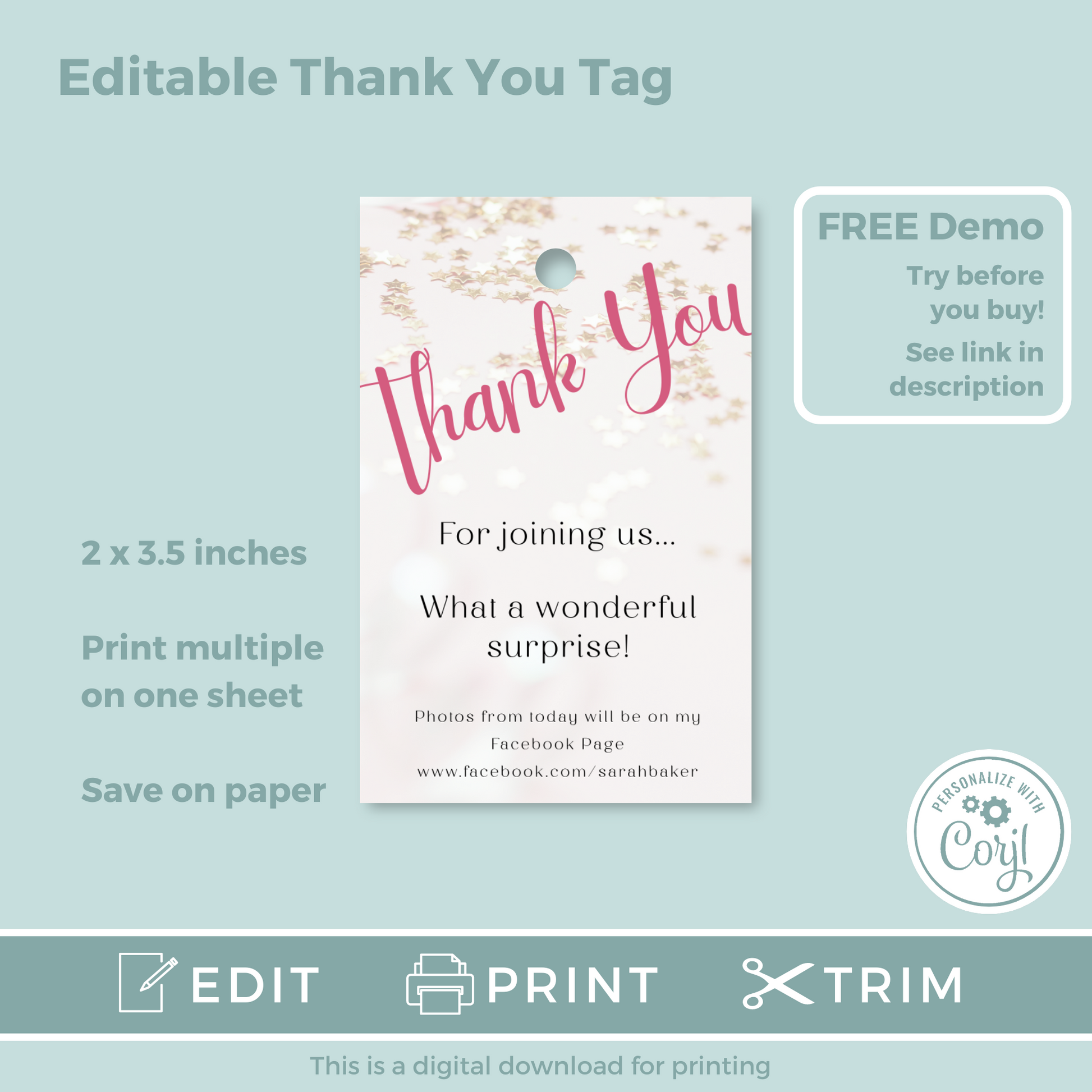 Edit, and print within minutes! This instant download is editable directly in your browser or on a mobile device using Corjl.com. No software or font downloads required, and no waiting for proofs.