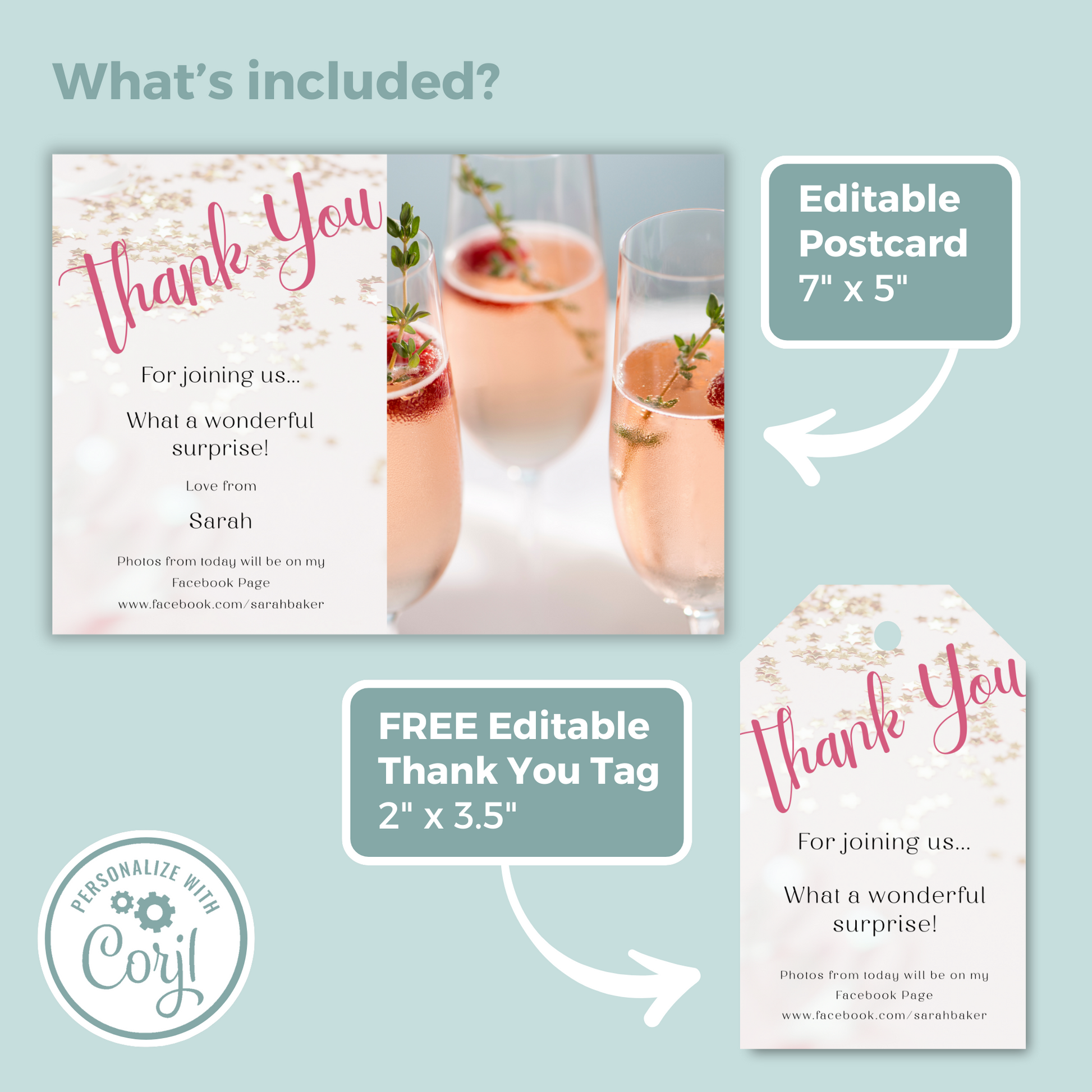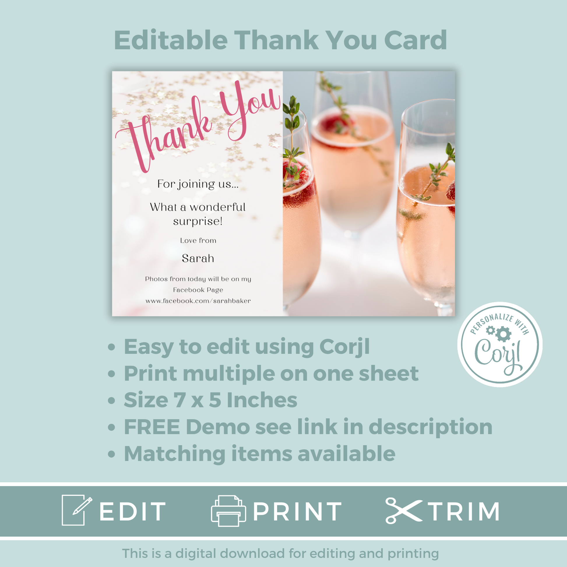 Edit, and print within minutes! This instant download is editable directly in your browser or on a mobile device using Corjl.com. No software or font downloads required, and no waiting for proofs.