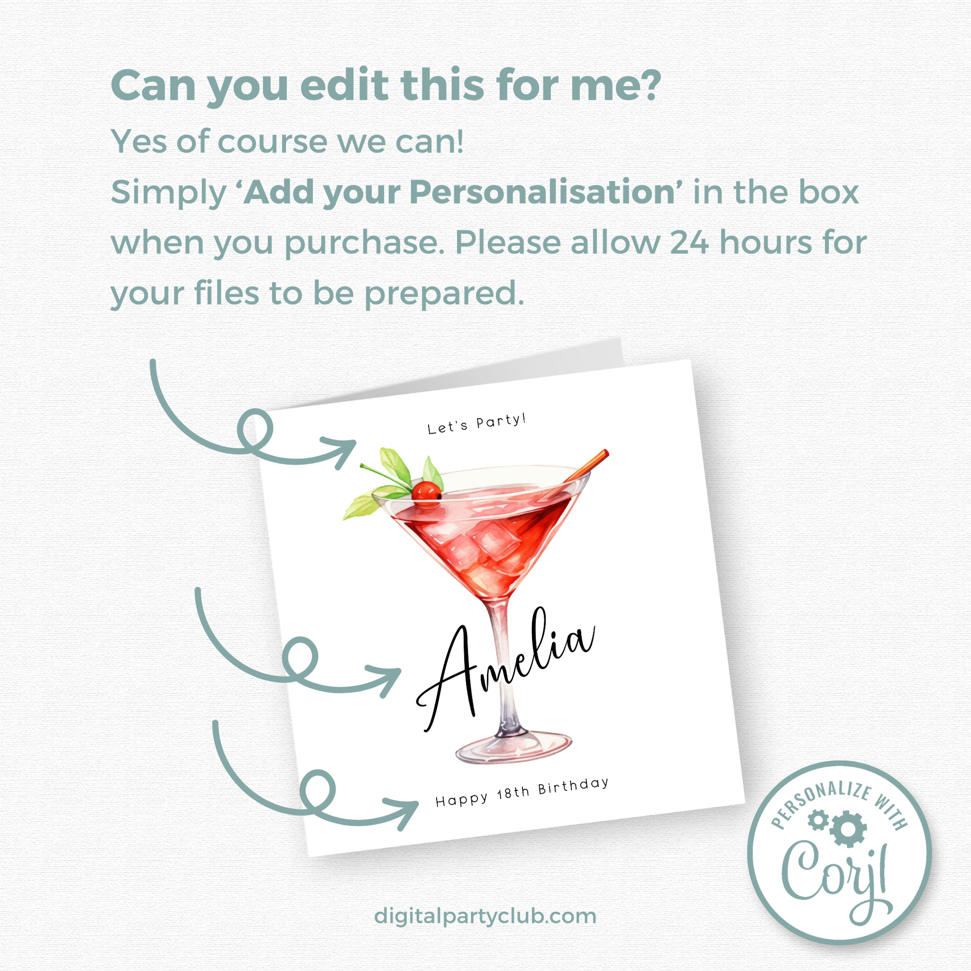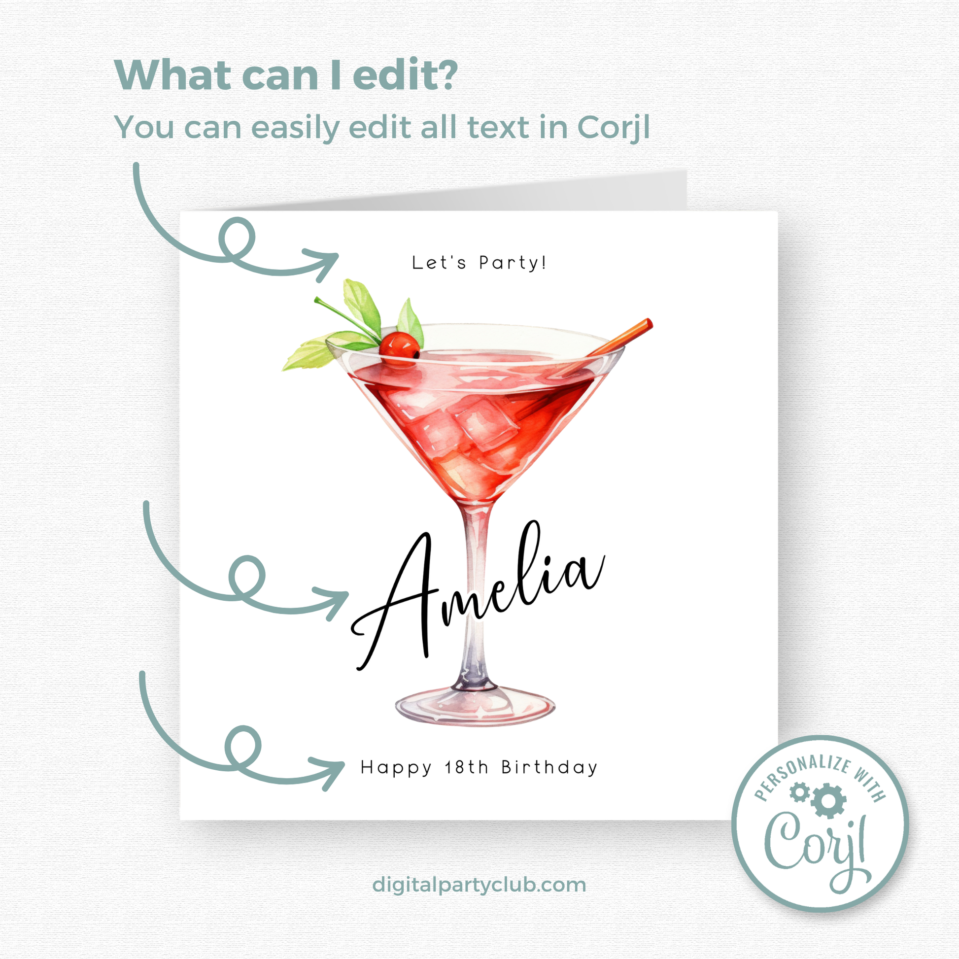 💌 Edit and print in minutes! This instant download birthday card can be edited on your web browser or on a mobile device using Corjl.com. No software or font downloads required, and no waiting for proofs.