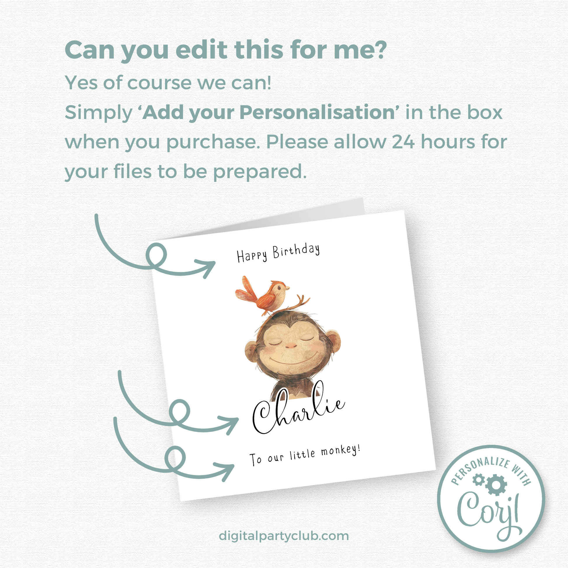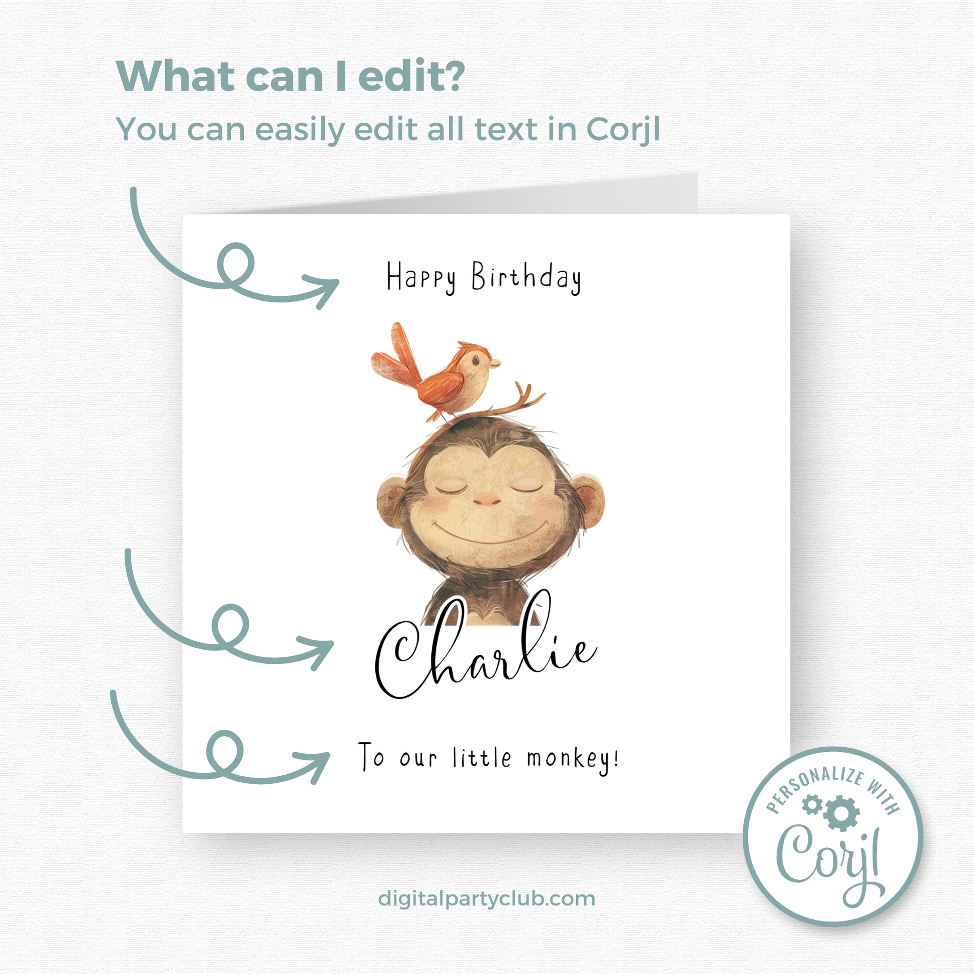 💌 Edit and print in minutes! This instant download birthday card can be edited on your web browser or on a mobile device using Corjl.com. No software or font downloads required, and no waiting for proofs.
