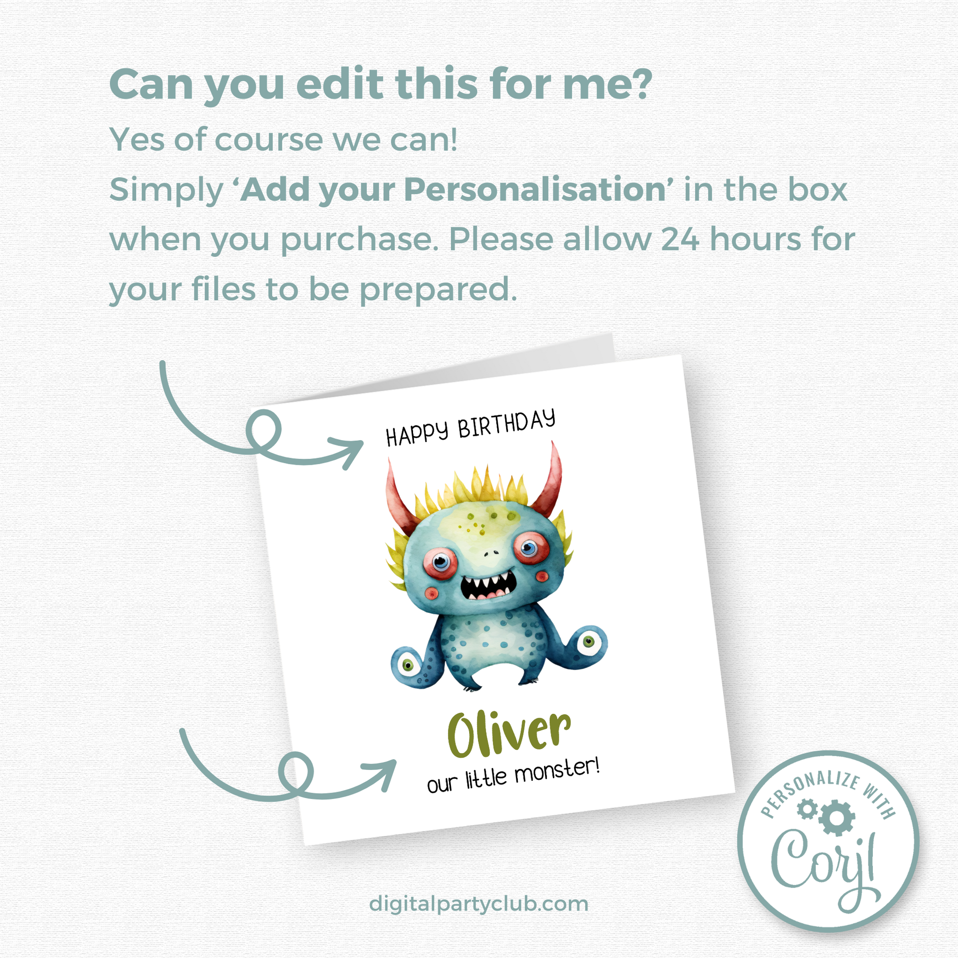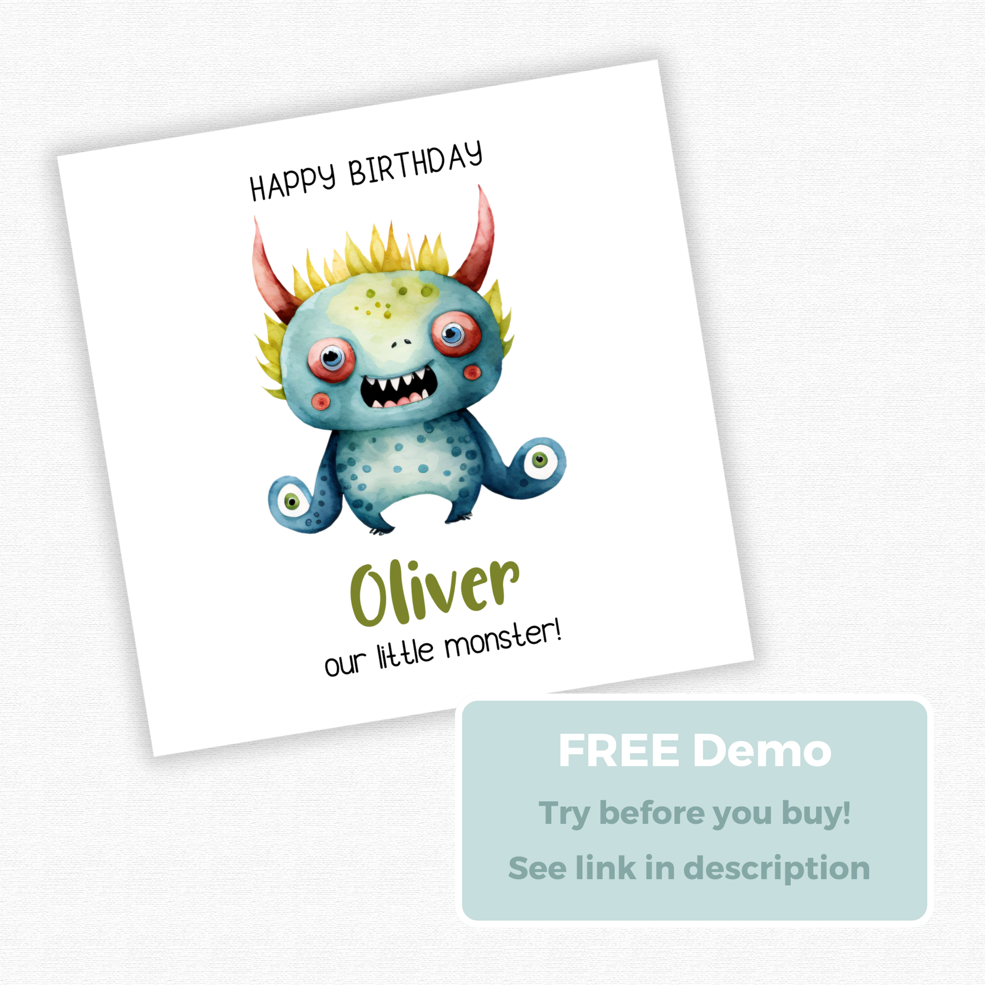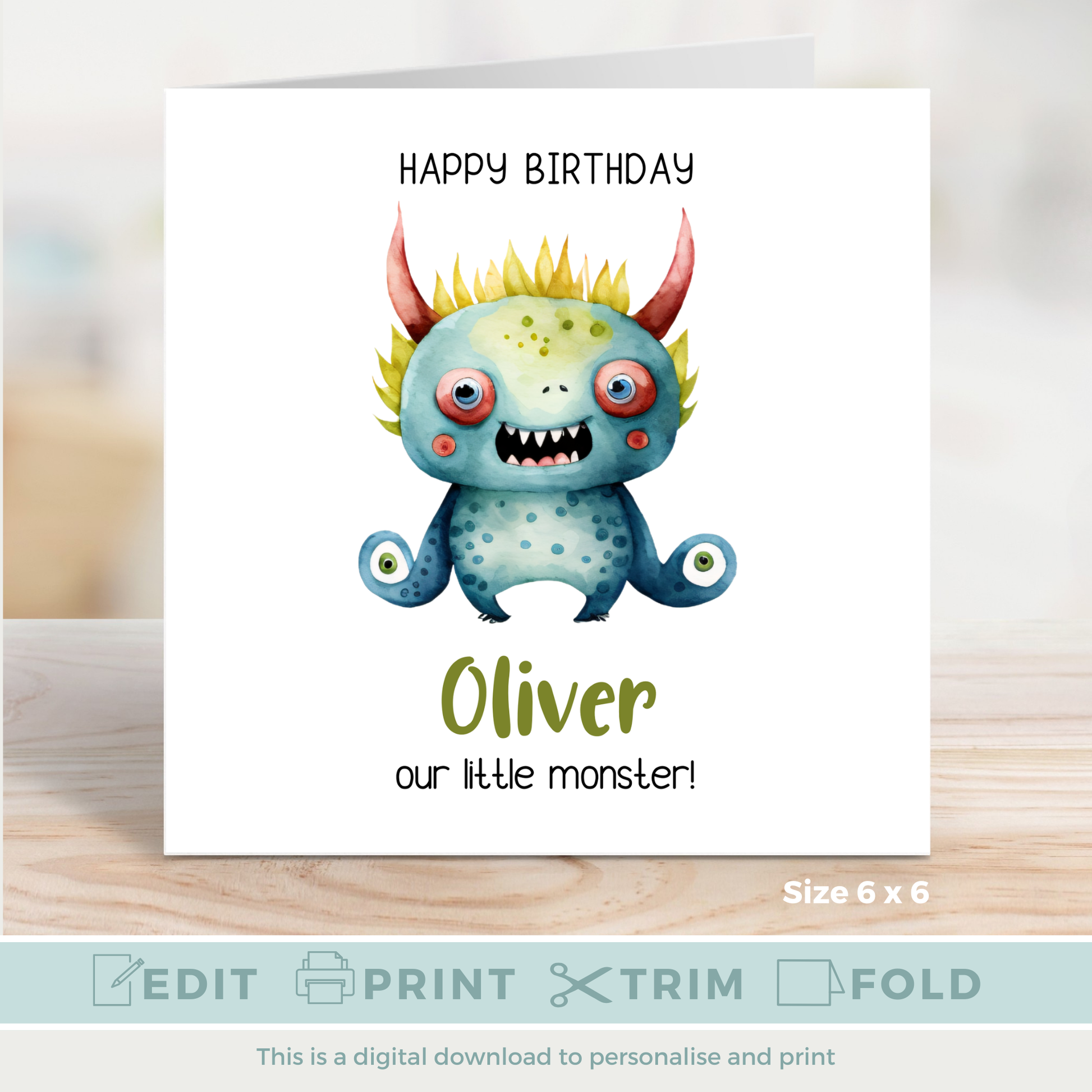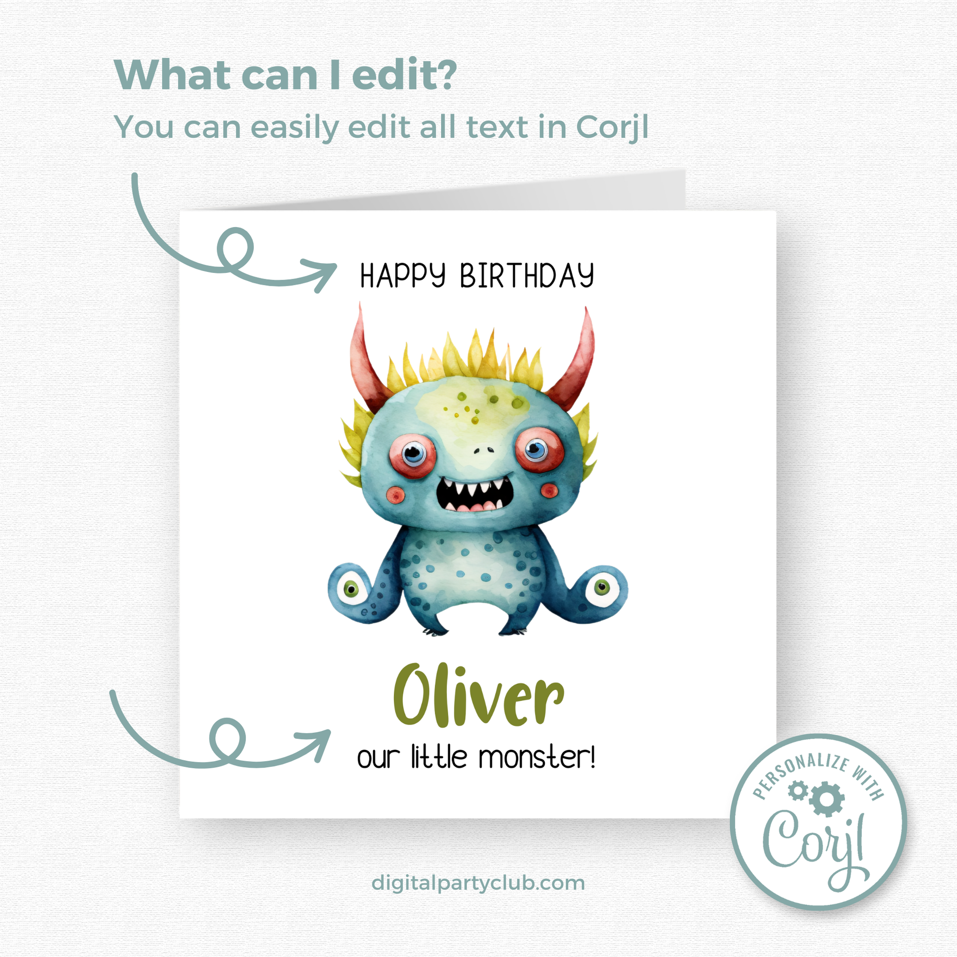 Editable Birthday Card - Monster
