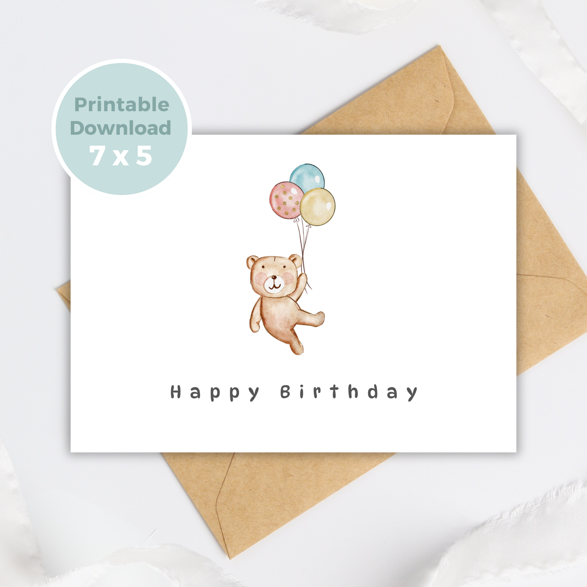 Celebrate a special day with this adorable printable birthday card featuring a cute teddy bear being lifted into the air by colourful balloons! This whimsical watercolor design is perfect for all ages, adding a touch of joy and charm to any birthday celebration. Perfect for last-minute gifts, this printable card is a thoughtful way to spread happiness and love.
